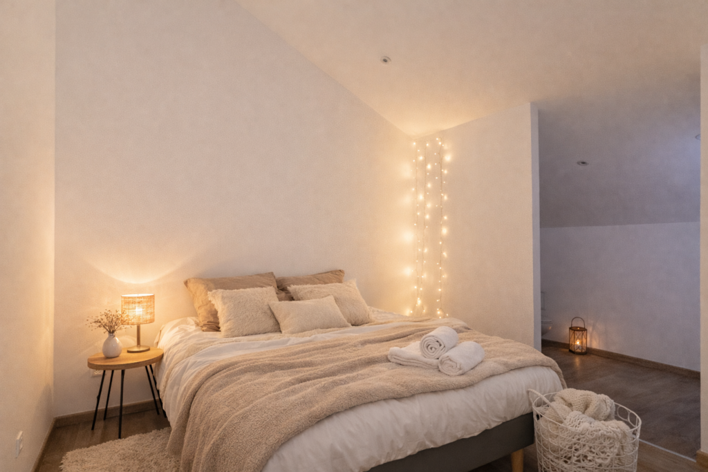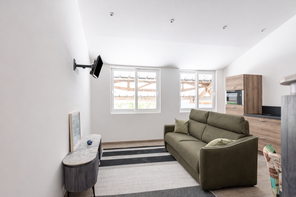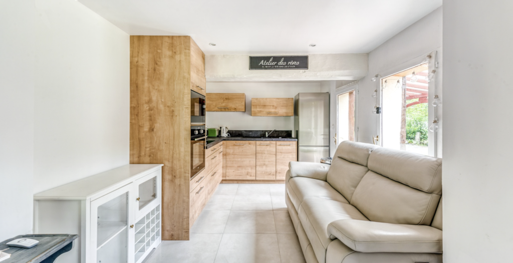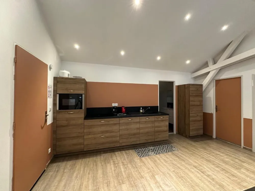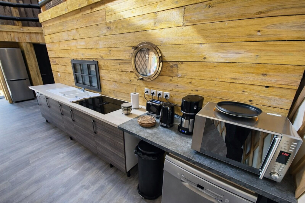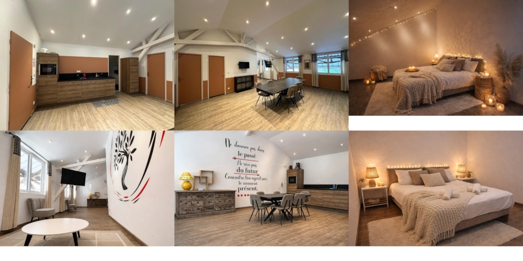 Das Haus: Im Erdgeschoss: - Großes Wohnzimmer rund um den Kamin, ausgestattet mit: Einem Essbereich mit einem Esstisch für 8 Gäste. Entspannungsbereich rund um den Billardtisch – Neue voll ausgestattete Küche: Kühlschrank, Backofen, Herd, Mikrowelle, Wasserkocher, Kaffeemaschine, Geschirrspüler … – Freundliche Lounge mit Ledersesseln und Couchtisch für wunderbare Abende mit der Familie oder Freunden. - Spielzimmer mit Tischfußball - Schlafzimmer 1: Doppelbett 140 x 190 cm - Badezimmer mit Badewanne, Waschbecken. Obergeschoss, über eine Holztreppe erreichbar: - Schlafzimmer 2: Doppelbett 140 x 190 cm - Schlafzimmer 3: Doppelbett 140 x 190 cm - Dachgeschoss-Schlafsaal mit sichtbaren Balken, ausgestattet mit zwei Einzelbetten, ideal für Kinder.