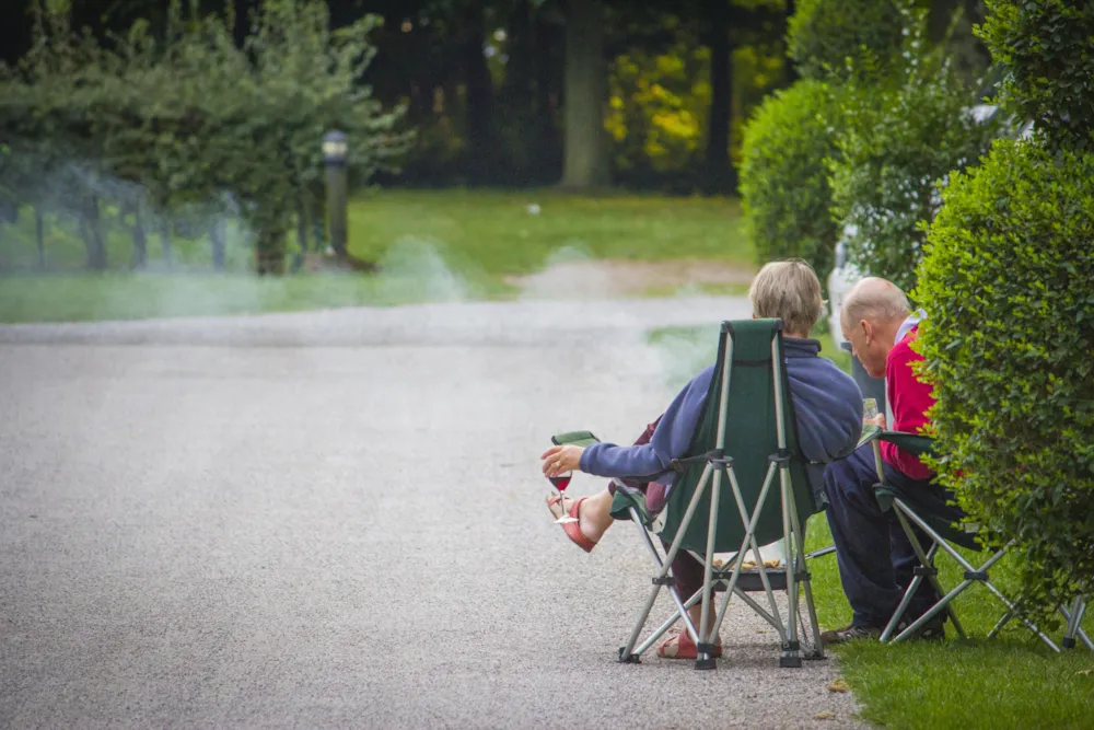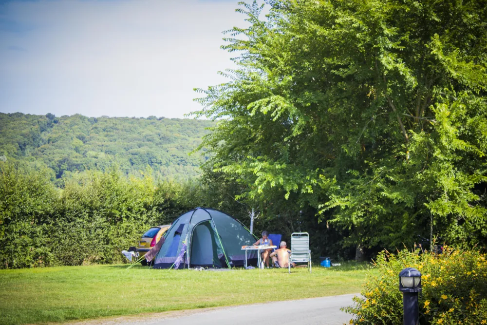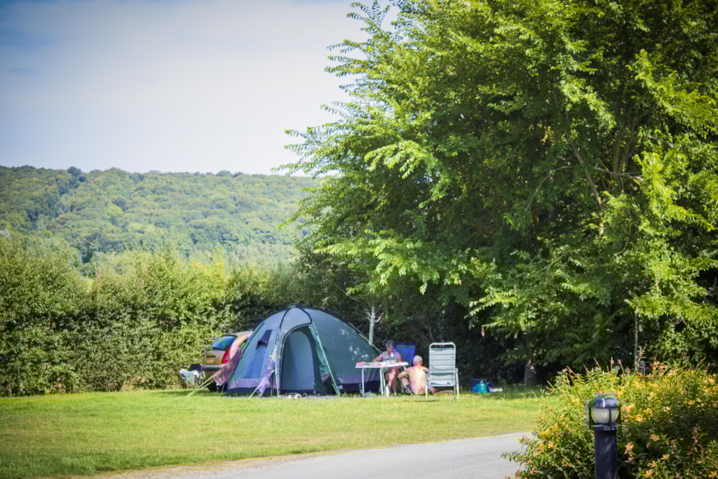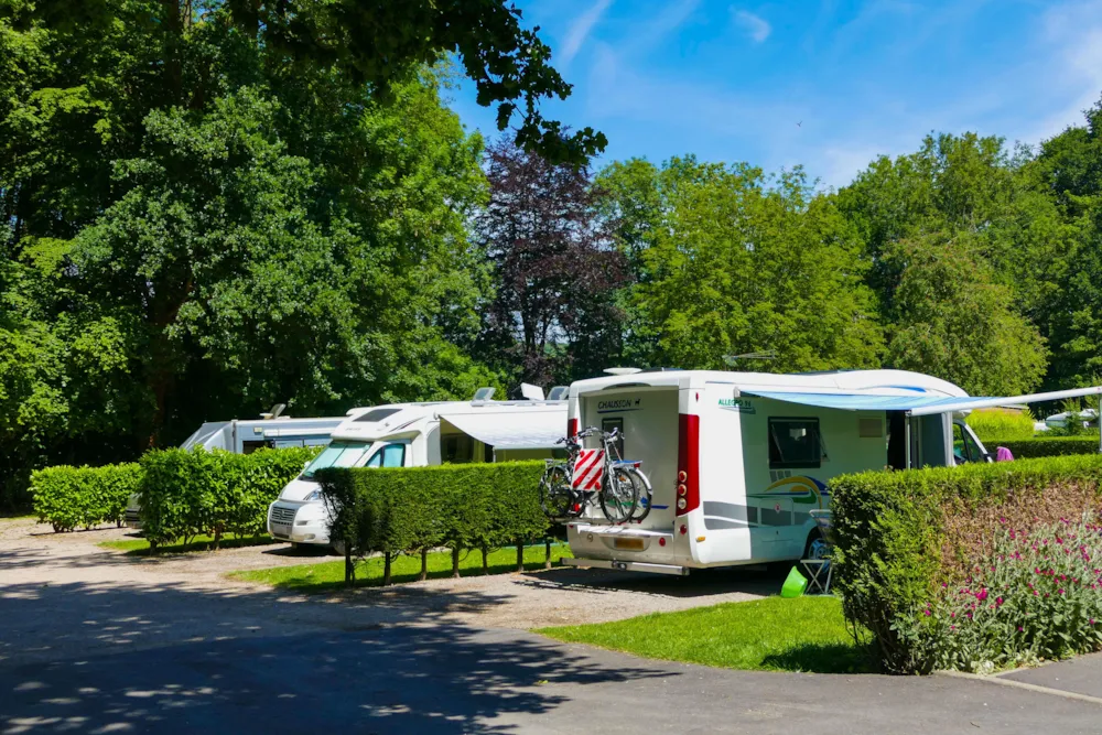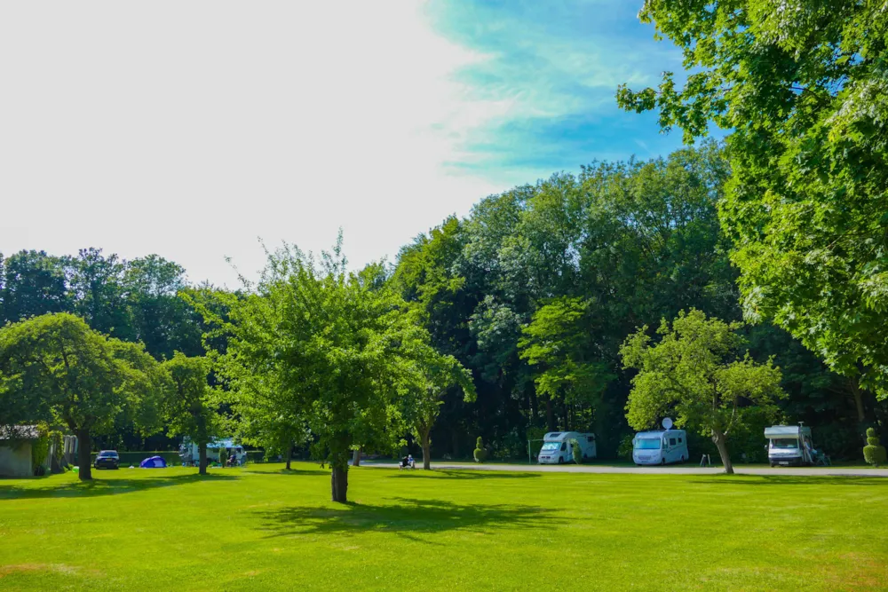 Stellplatz im Park mit Aussicht aufs Chateau.