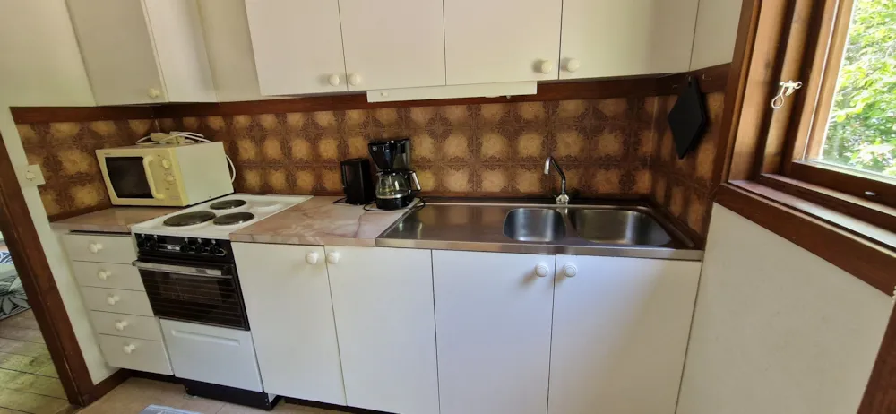 Unser Campingplatz verfügt über vier kleinere Hütten von 9 m2. Sie sind unsere billigsten Hütten. 30 Meter von den Hütten entfernt befindet sich das Servicegebäude. Hier finden Sie Duschen & Toiletten, eine Küche mit Essecke, Sauna, TV-Raum und kostenlosen Internetzugang. Der Strand ist nur 100 Meter von der Hütte entfernt.