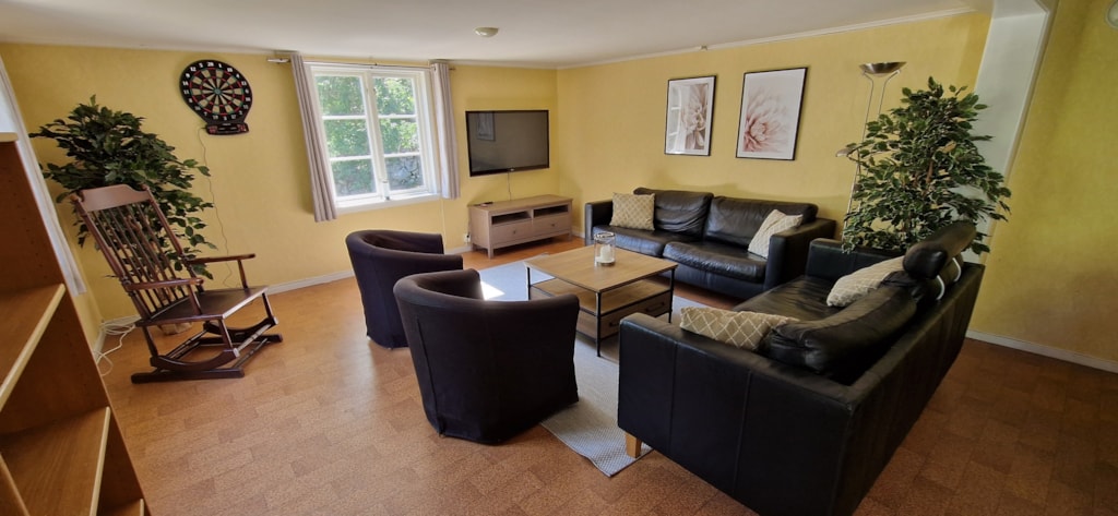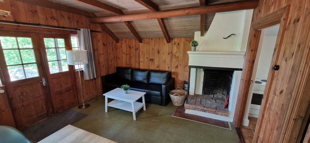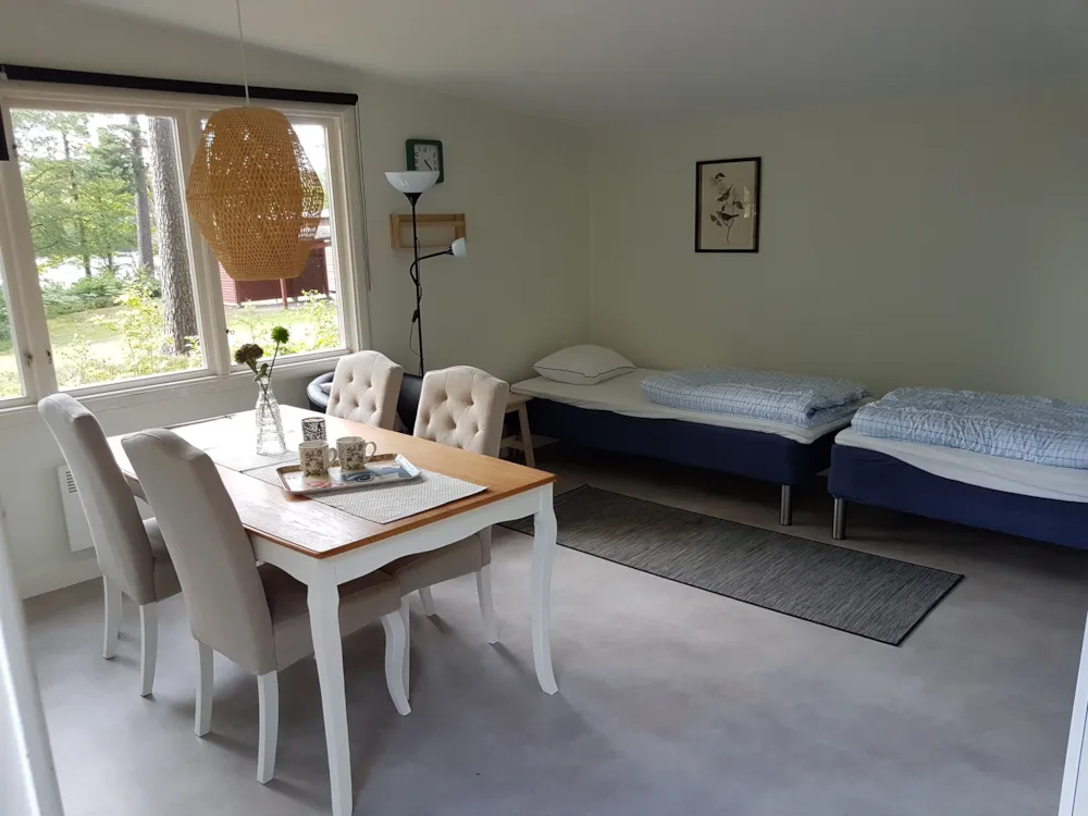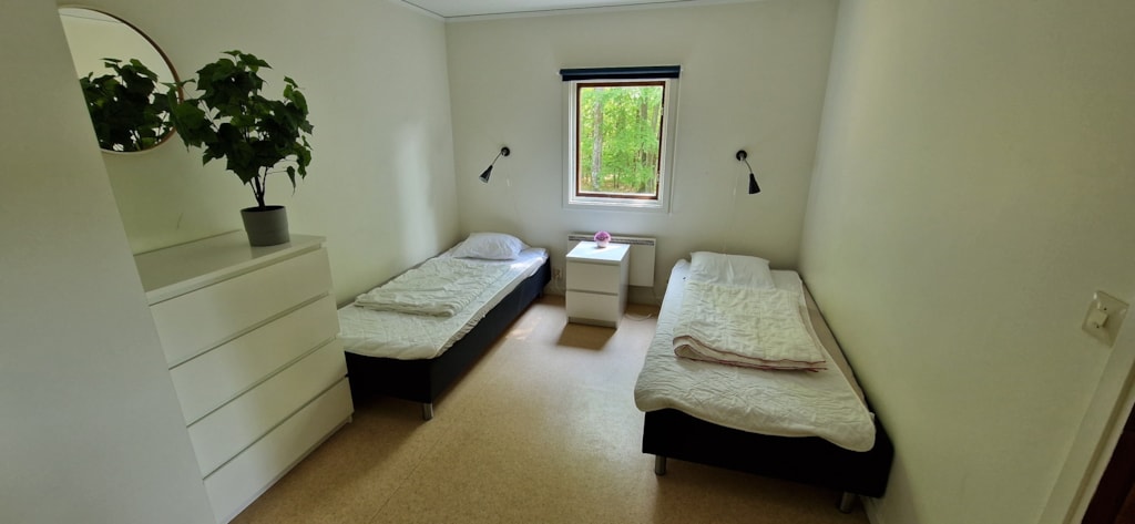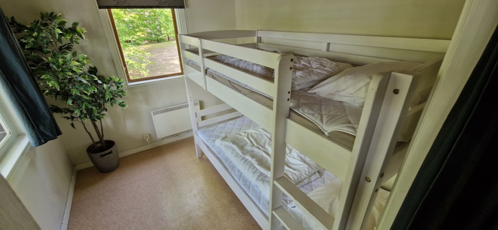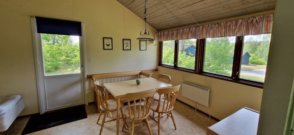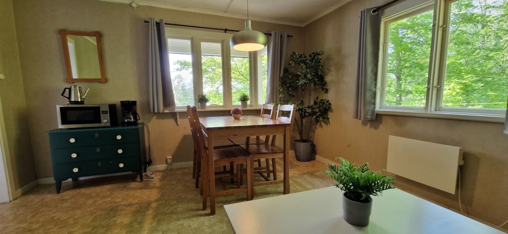Das Brukhuset ist mit 157 m² unsere größte Unterkunft und liegt am Eingang des Naturschutzgebiets Långasjönäs, nur 40 Meter von der malerischen Papiermühlenruine entfernt. Brukhuset hat ein großes Wohnzimmer mit 55" TV-Bildschirm, 3 Schlafzimmer und 8 Schlafplätze. Bettdecken und Kissen sind vorhanden. Es gibt ein Badezimmer und zwei Toiletten. Die Küche hat einen Herd und Backofen, eine Mikrowelle, und einen Kühl- und Gefrierschrank. Zugang zu Ihrem eigenen Ruderboot. Sie haben auch Ihren eigenen privaten Garten, inklusive Gartenmöbel, sowie Ihren eigenen Grillplatz, wo Sie abends grillen und ein kleines Feuer machen können. In unserem Kiosk finden Sie auch alles zum Grillen sowie Holz für das Feuer. Vergessen Sie bitte nicht, Leintücher, Bettbezüge und Handtücher selbst mitzubringen. Wenn Sie lieber Bettwäsche und/oder Handtücher mieten möchten, können Sie uns eine E-Mail oder SMS schicken. Wir schicken Ihnen dann eine neue Bestätigung. Kosten: 140 SEK pp (Bettwäsche), 40 SEK pp (Handtuch).