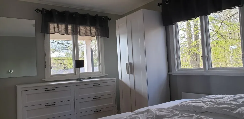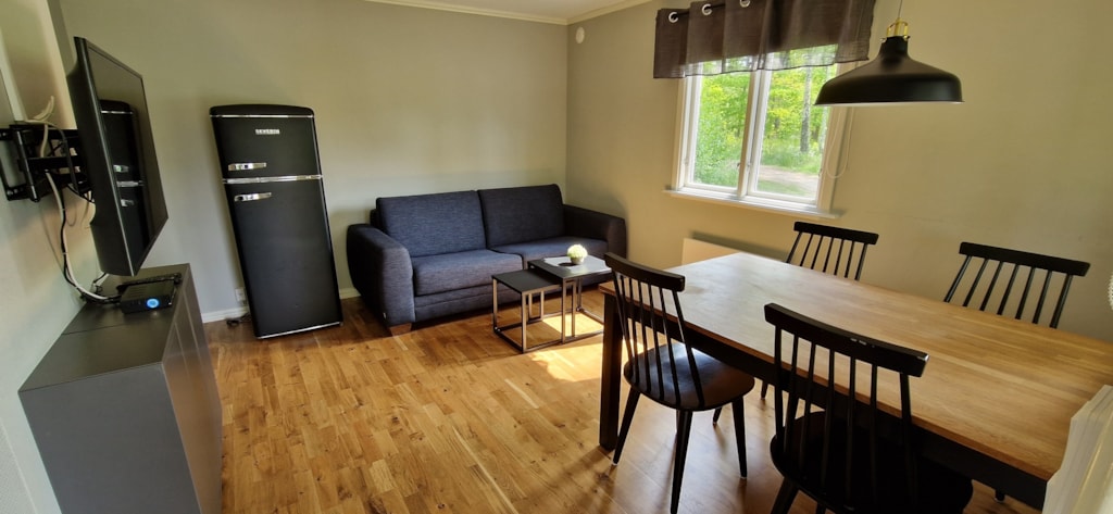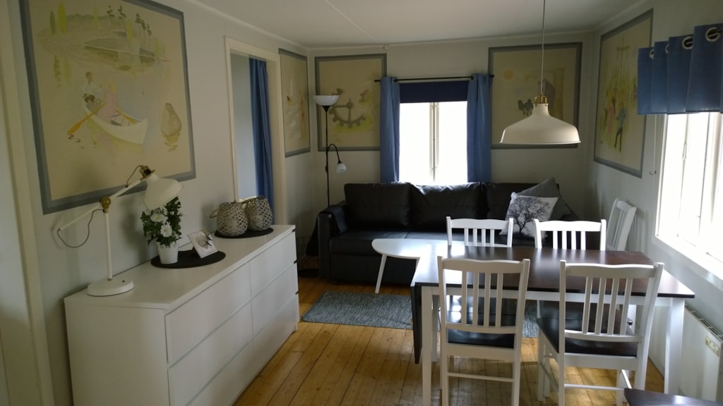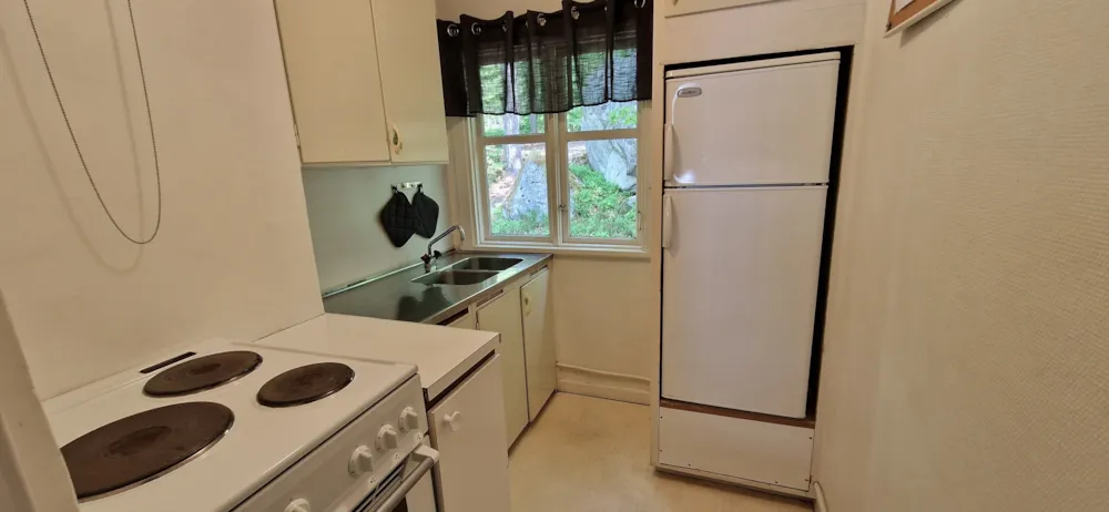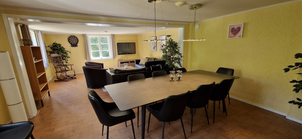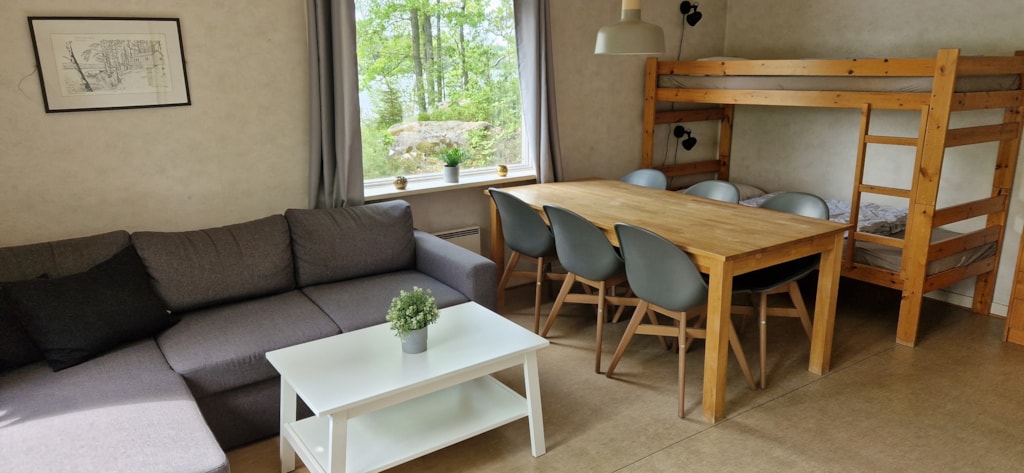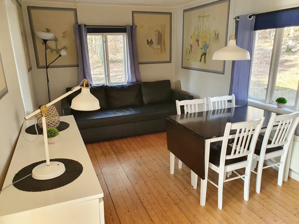 Das Brukhuset ist mit 157 m² unsere größte Unterkunft und liegt am Eingang des Naturschutzgebiets Långasjönäs, nur 40 Meter von der malerischen Papiermühlenruine entfernt. Brukhuset hat ein großes Wohnzimmer mit 55" TV-Bildschirm, 3 Schlafzimmer und 8 Schlafplätze. Bettdecken und Kissen sind vorhanden. Es gibt ein Badezimmer und zwei Toiletten. Die Küche hat einen Herd und Backofen, eine Mikrowelle, und einen Kühl- und Gefrierschrank. Zugang zu Ihrem eigenen Ruderboot. Sie haben auch Ihren eigenen privaten Garten, inklusive Gartenmöbel, sowie Ihren eigenen Grillplatz, wo Sie abends grillen und ein kleines Feuer machen können. In unserem Kiosk finden Sie auch alles zum Grillen sowie Holz für das Feuer. Vergessen Sie bitte nicht, Leintücher, Bettbezüge und Handtücher selbst mitzubringen. Wenn Sie lieber Bettwäsche und/oder Handtücher mieten möchten, können Sie uns eine E-Mail oder SMS schicken. Wir schicken Ihnen dann eine neue Bestätigung. Kosten: 140 SEK pp (Bettwäsche), 40 SEK pp (Handtuch).