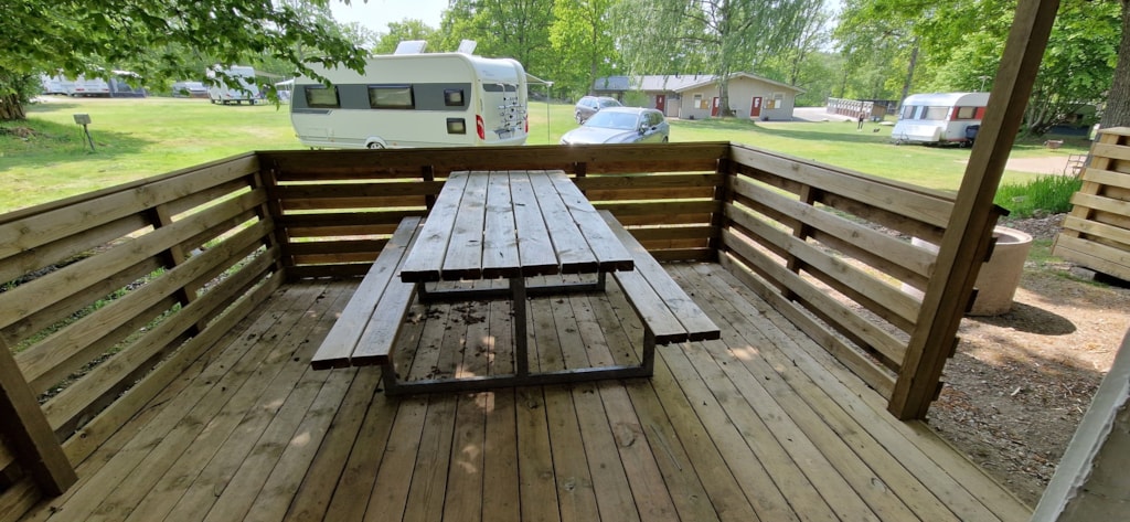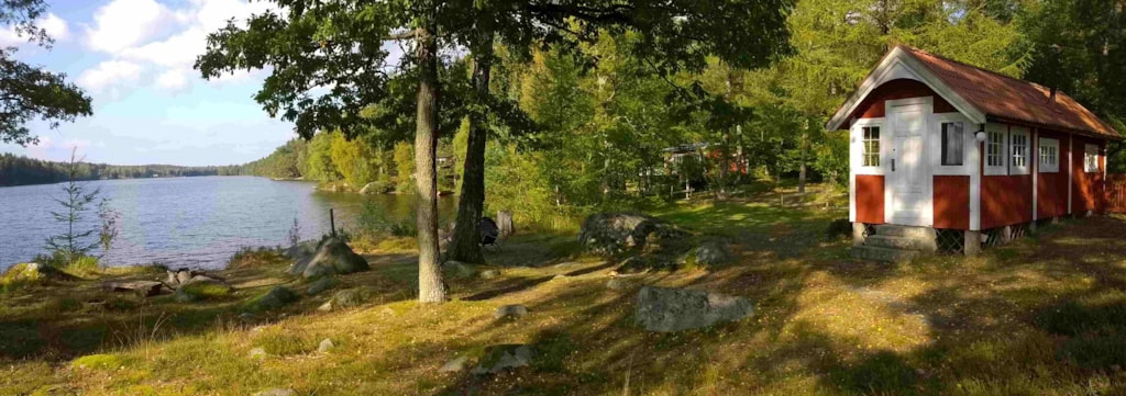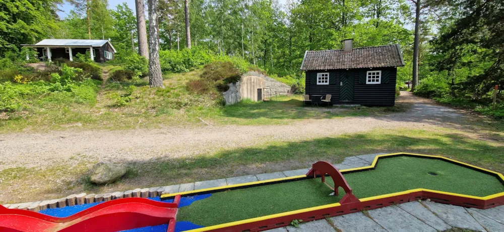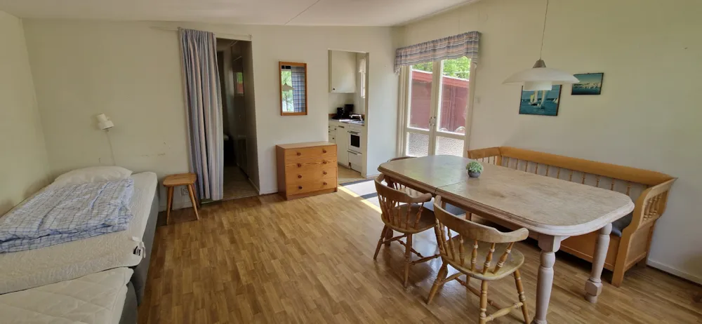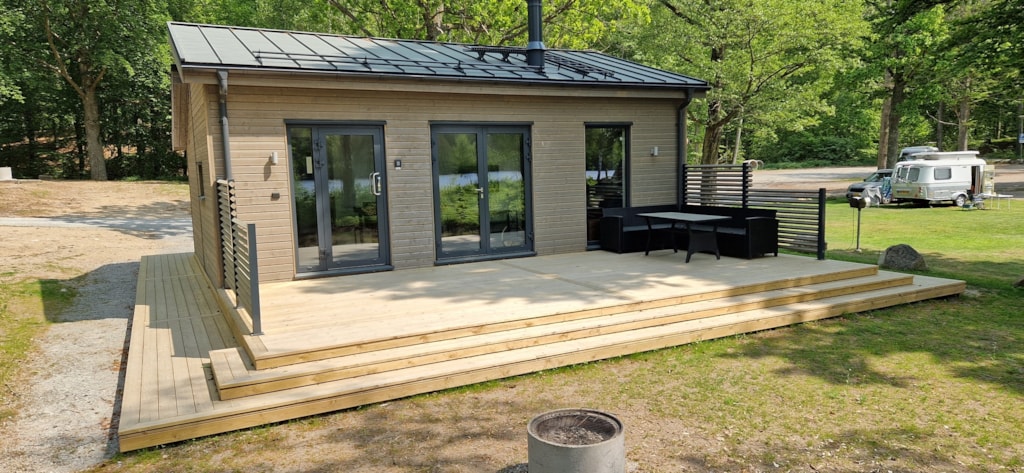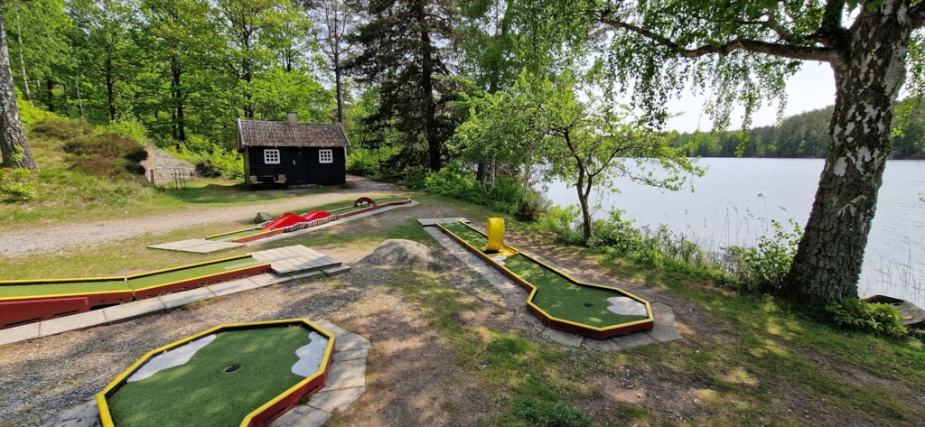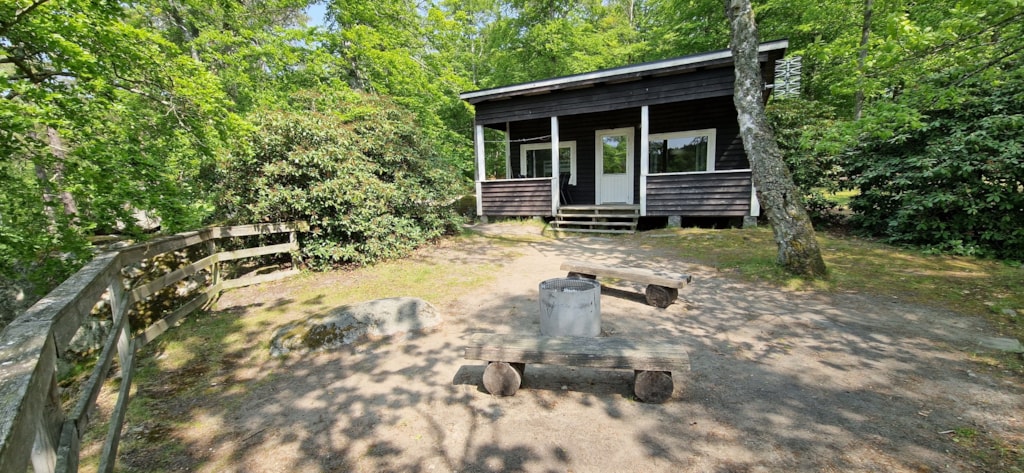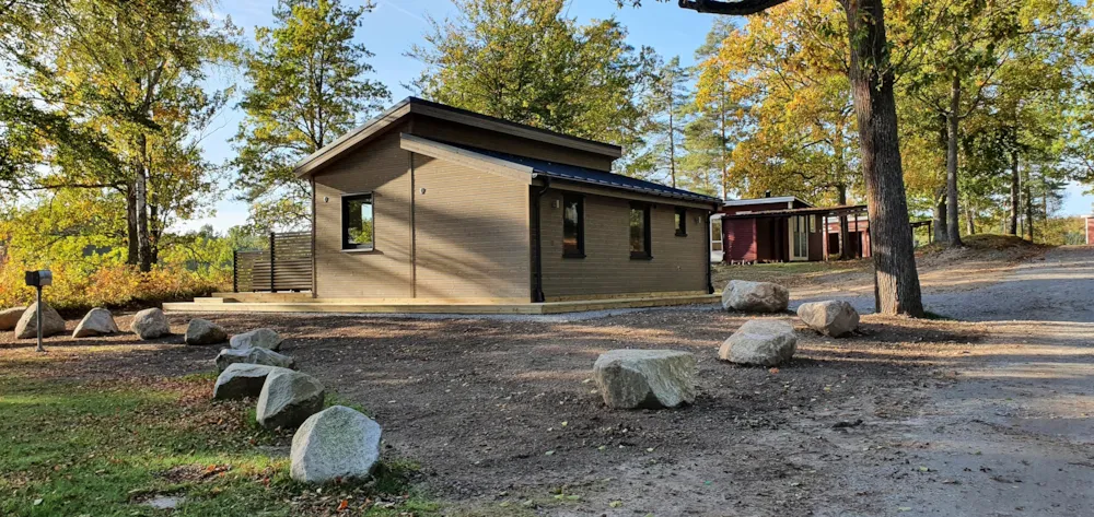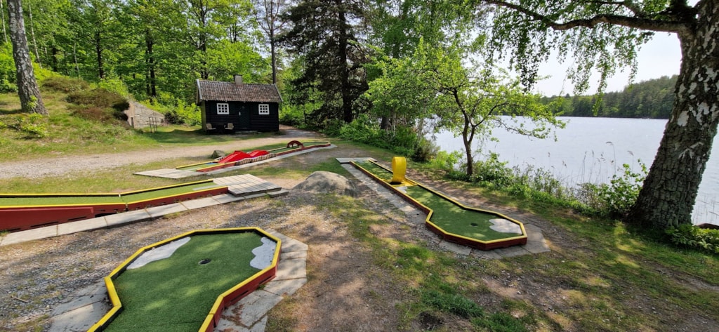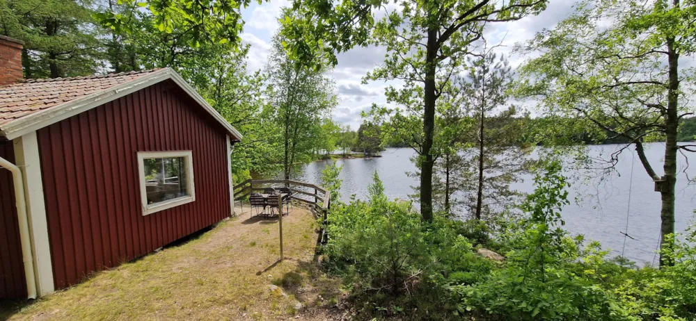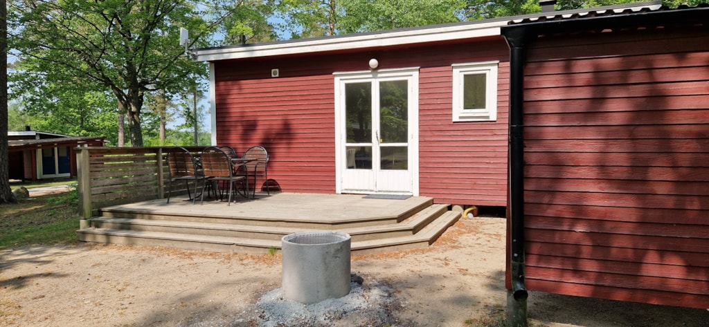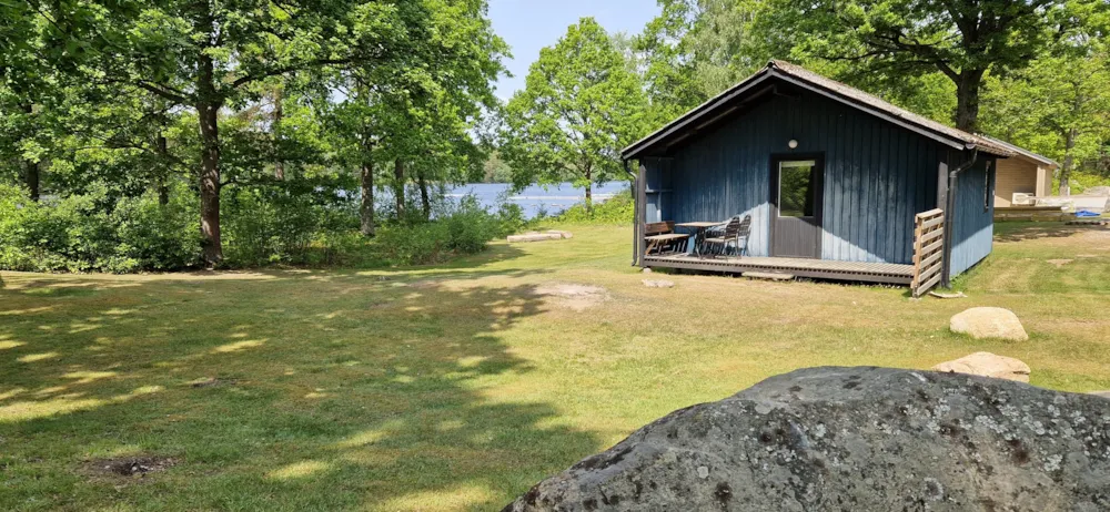 Hütte von 12 m² mit schöner Aussicht über den See Långasjön und die Minigolfanlage. In der Nähe der Rezeption. Der Strand ist nur 100 Meter von der Hütte entfernt.