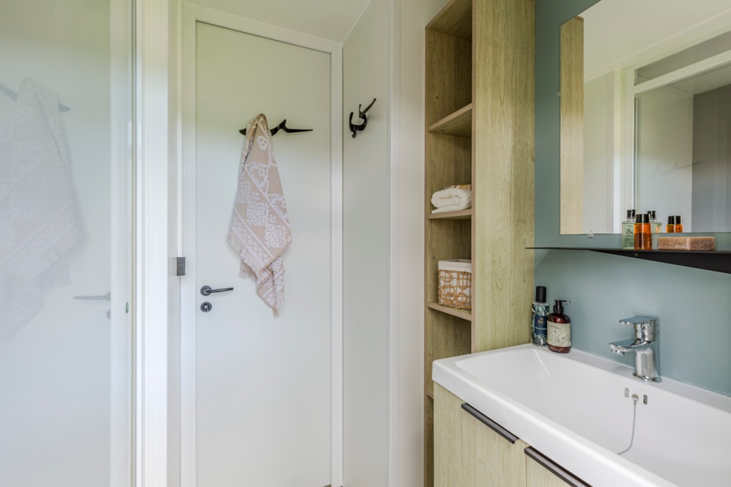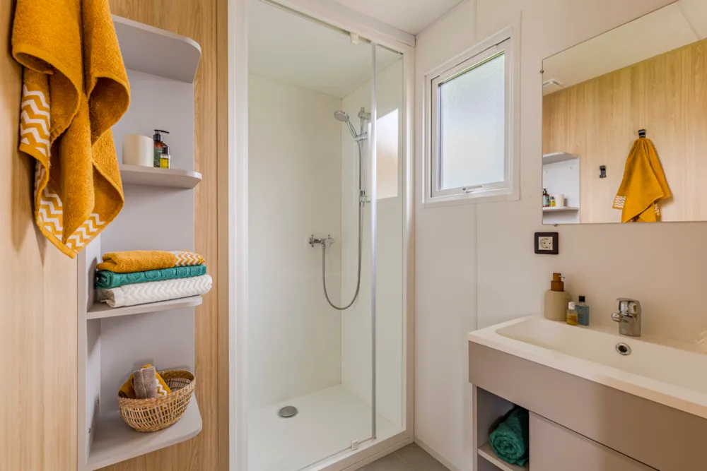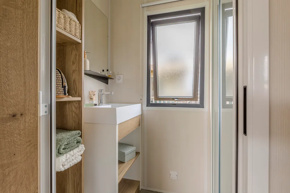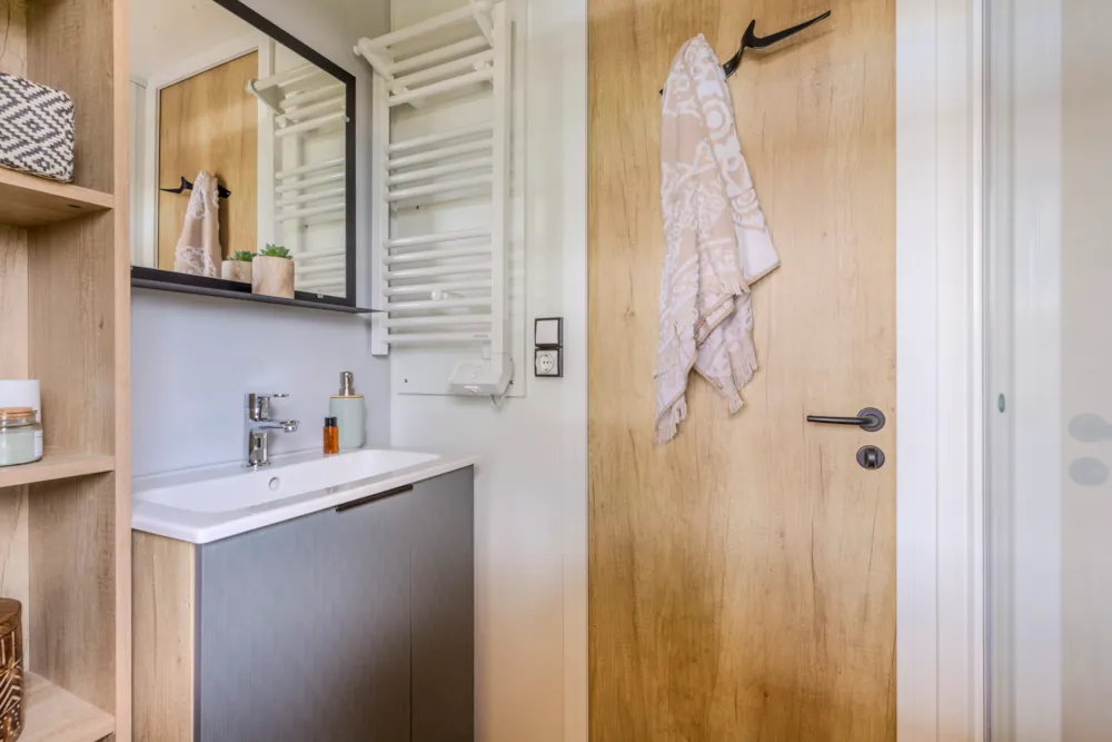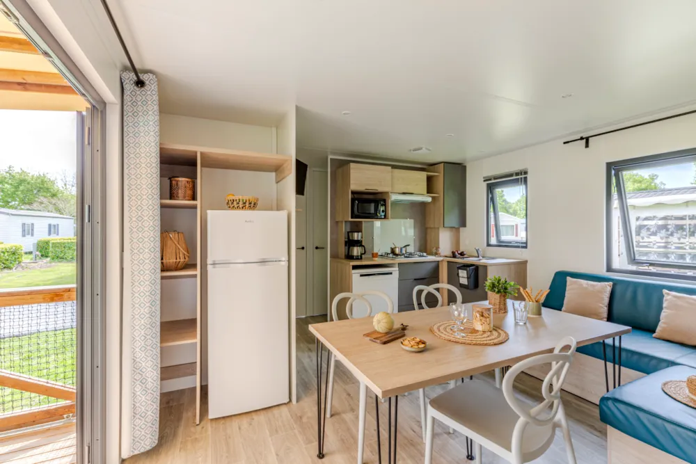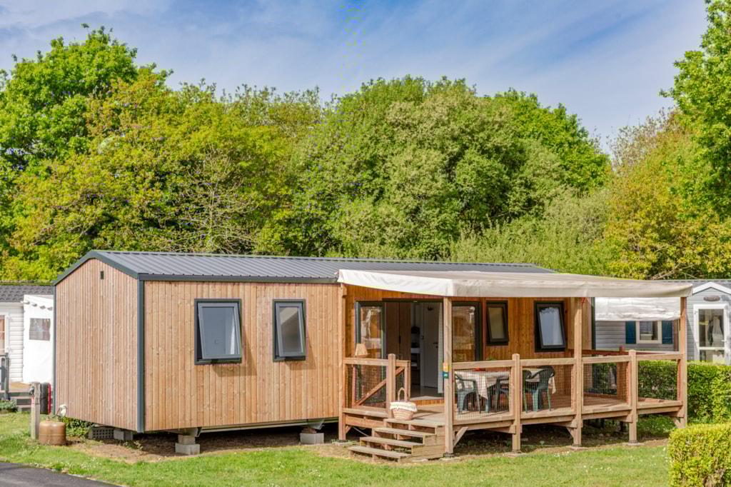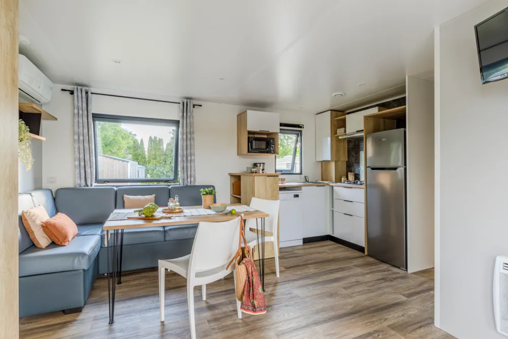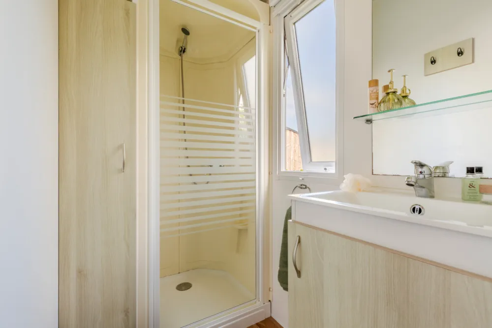 Das Dach ist zur Hausseite hin offen - es regnet an der Wand durch - unsere Schuhe und sonstigen Sachen sind alle nass geworden. Wir hatten das Mobilehome mit Überdachung gebucht, damit wir auch Dinge auf der Terrasse lagern und abstellen können.