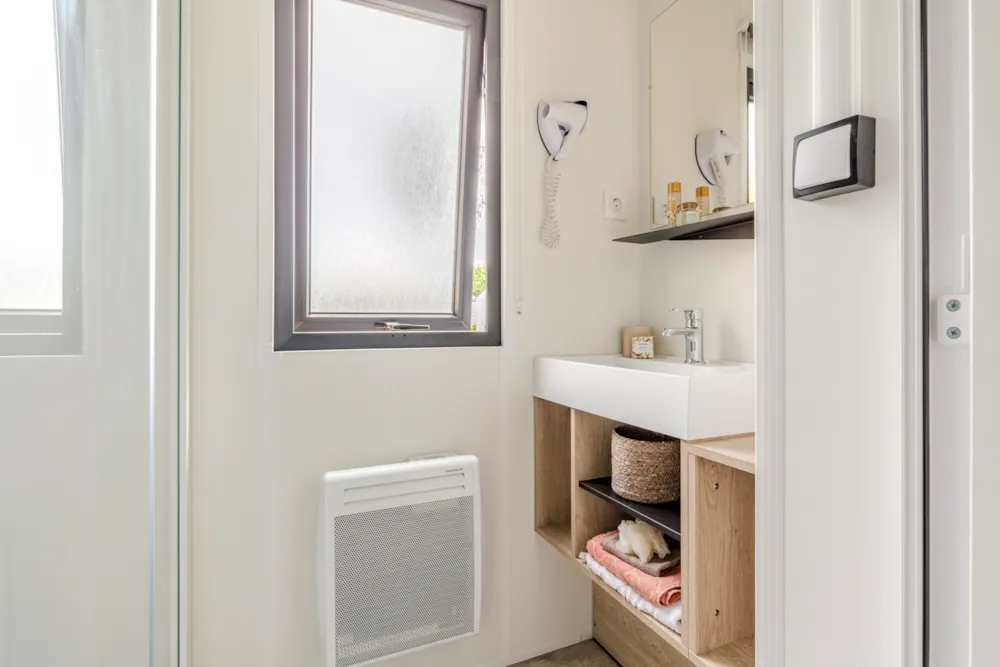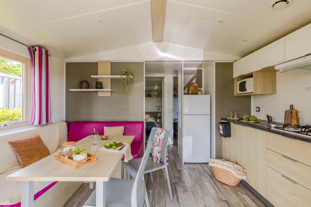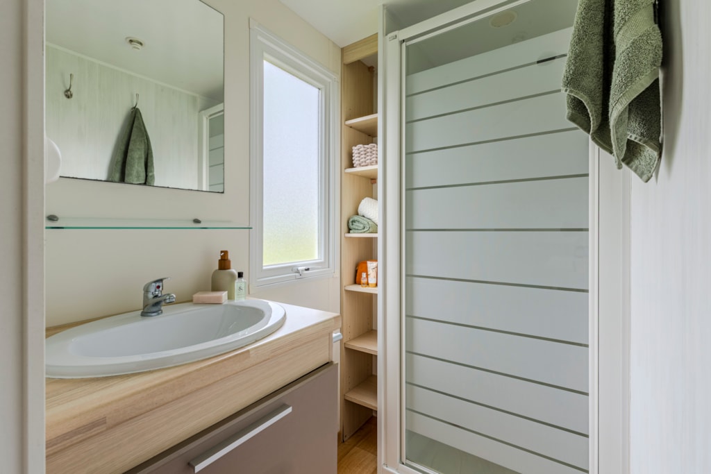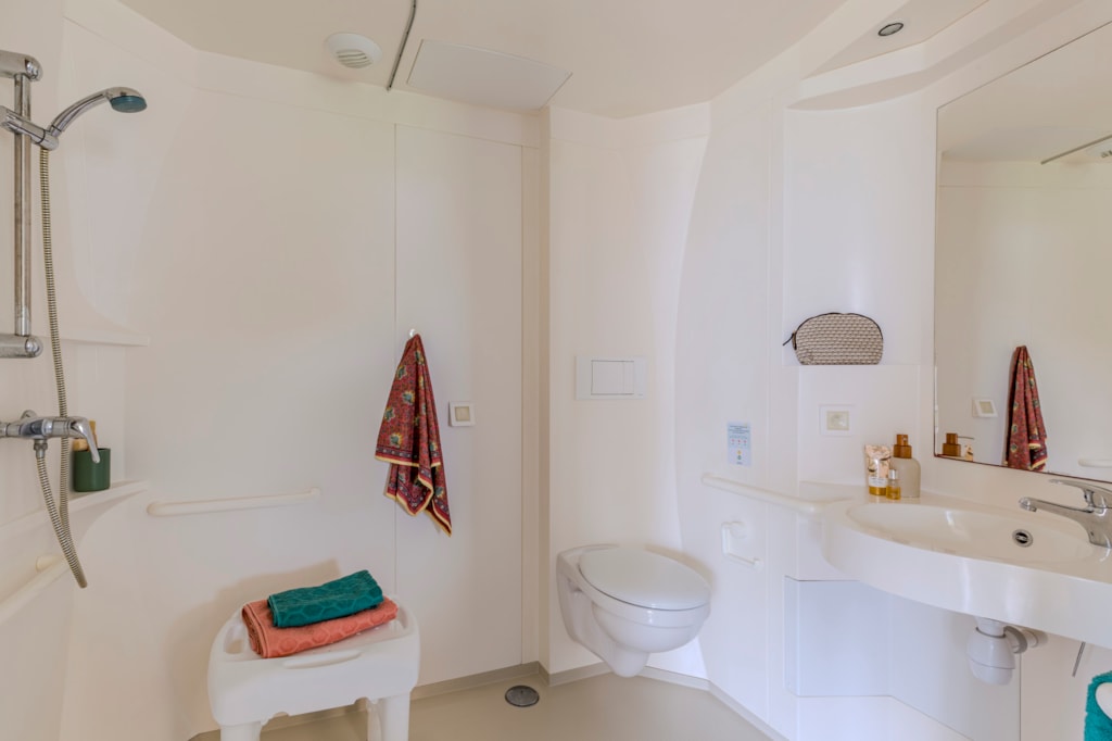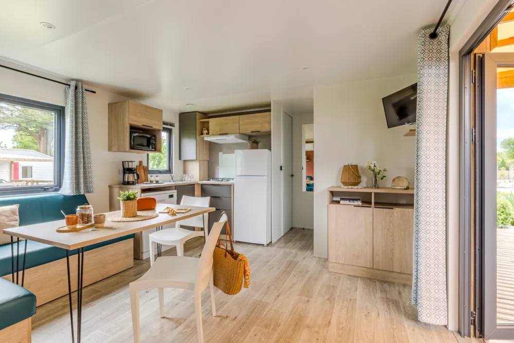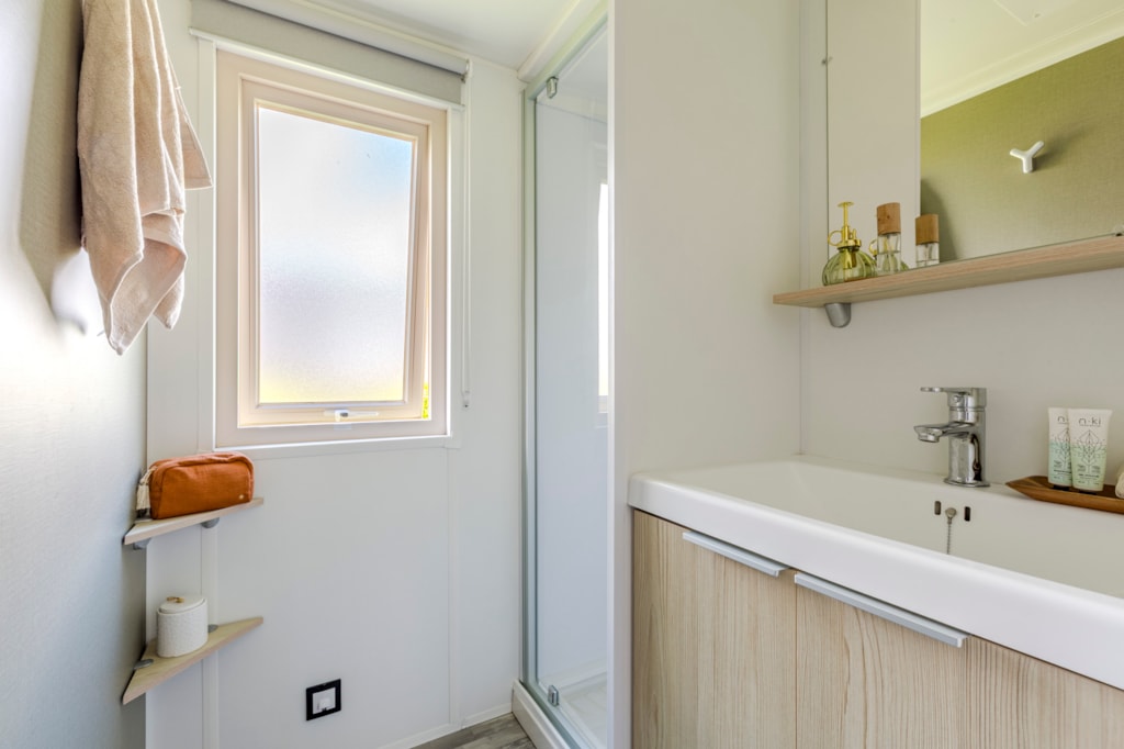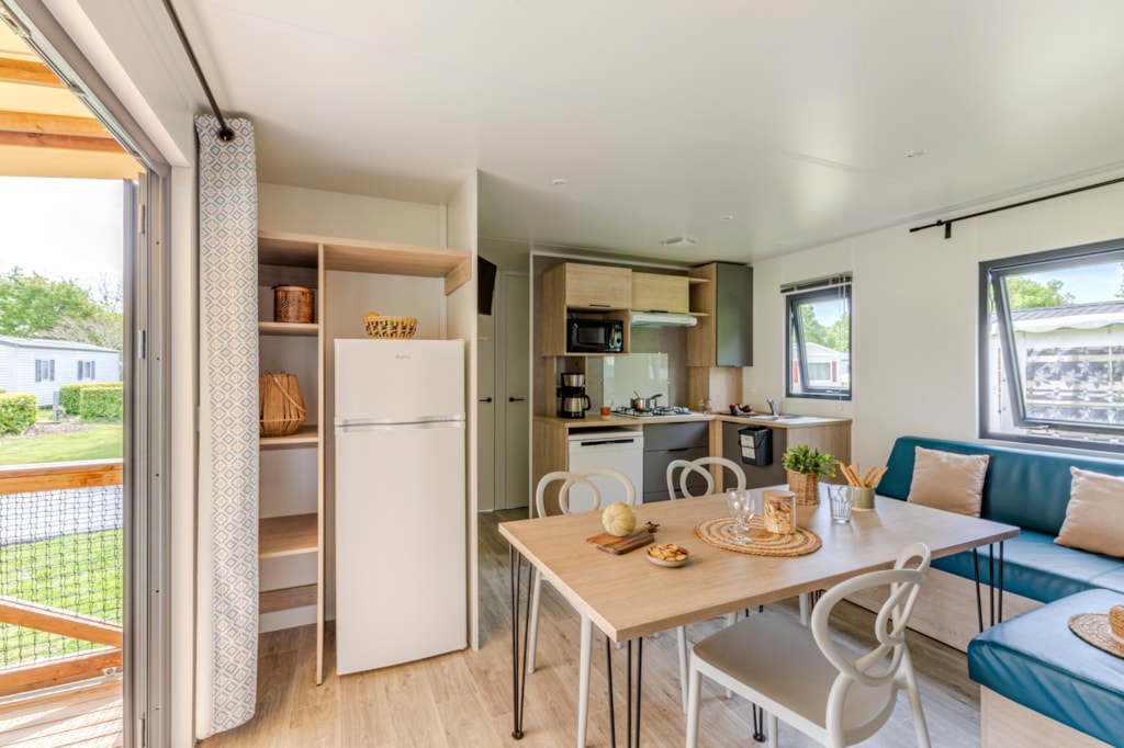Das Dach ist zur Hausseite hin offen - es regnet an der Wand durch - unsere Schuhe und sonstigen Sachen sind alle nass geworden. Wir hatten das Mobilehome mit Überdachung gebucht, damit wir auch Dinge auf der Terrasse lagern und abstellen können.