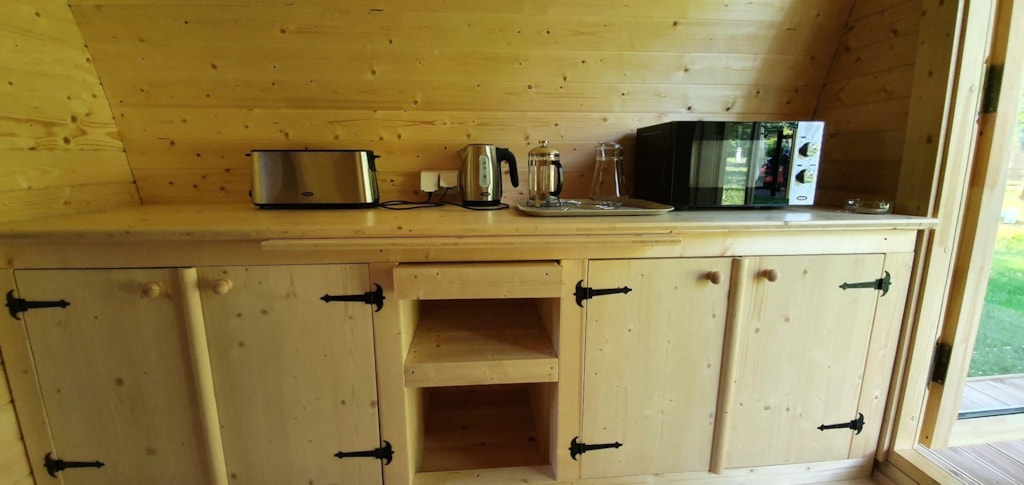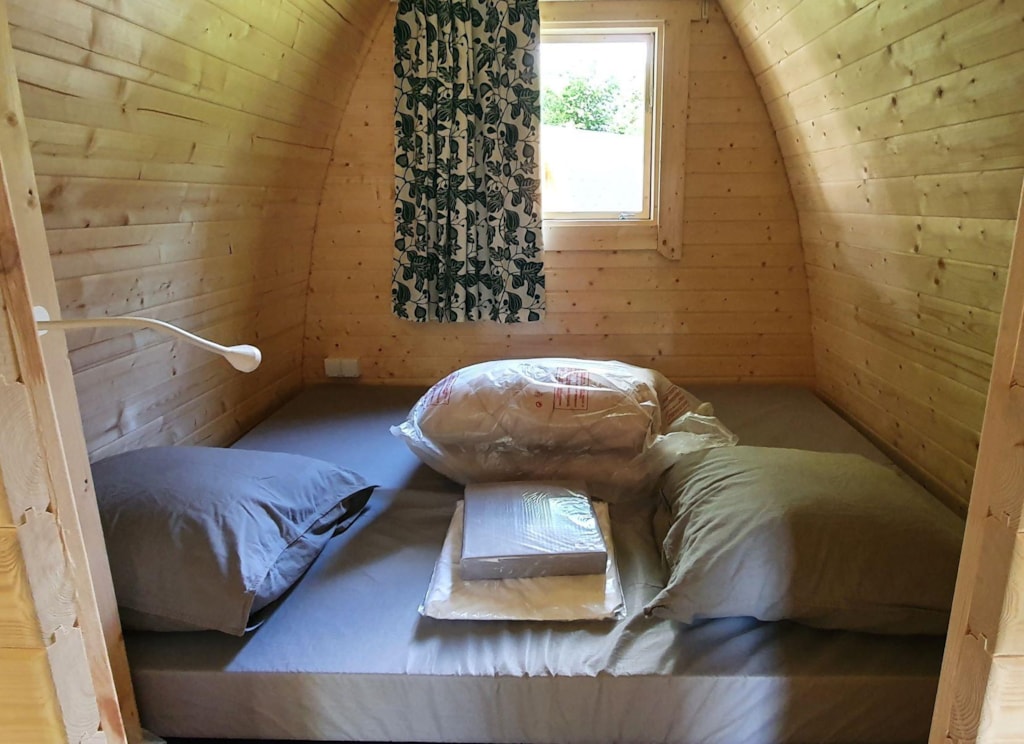 Ein hübsches, sehr gemütliches kleines Chalet mit 2 Einzelbetten. Ideal für Radtourer, die den Komfort eines richtigen Bettes wünschen. Mit Heizung und Steckdosen zum Aufladen von Fahrrädern.
