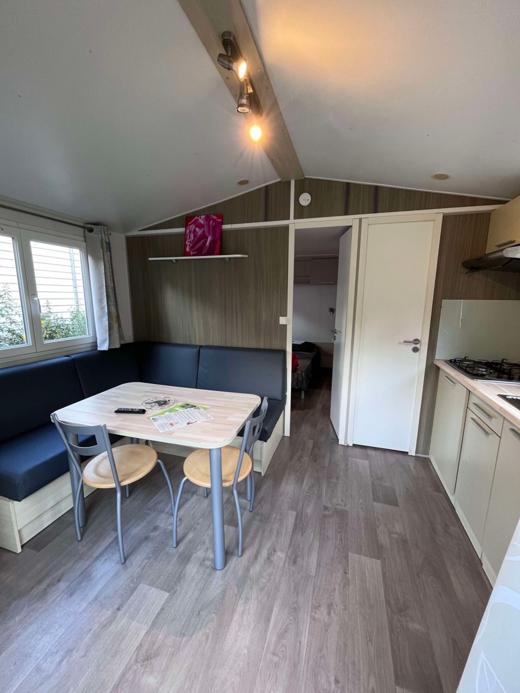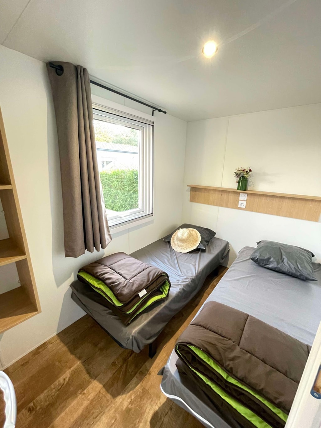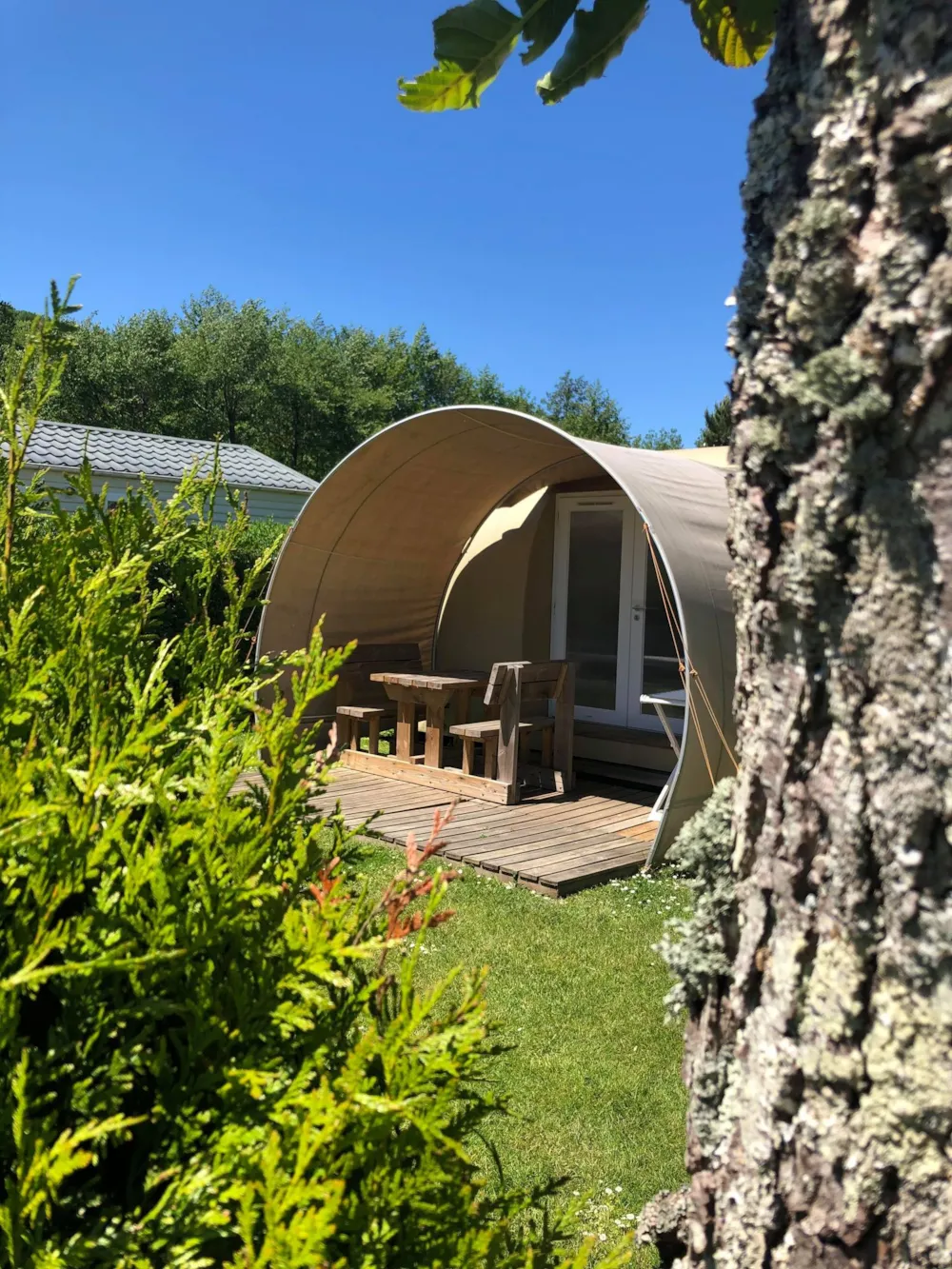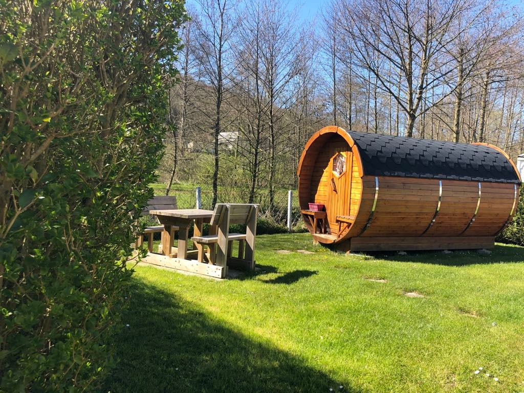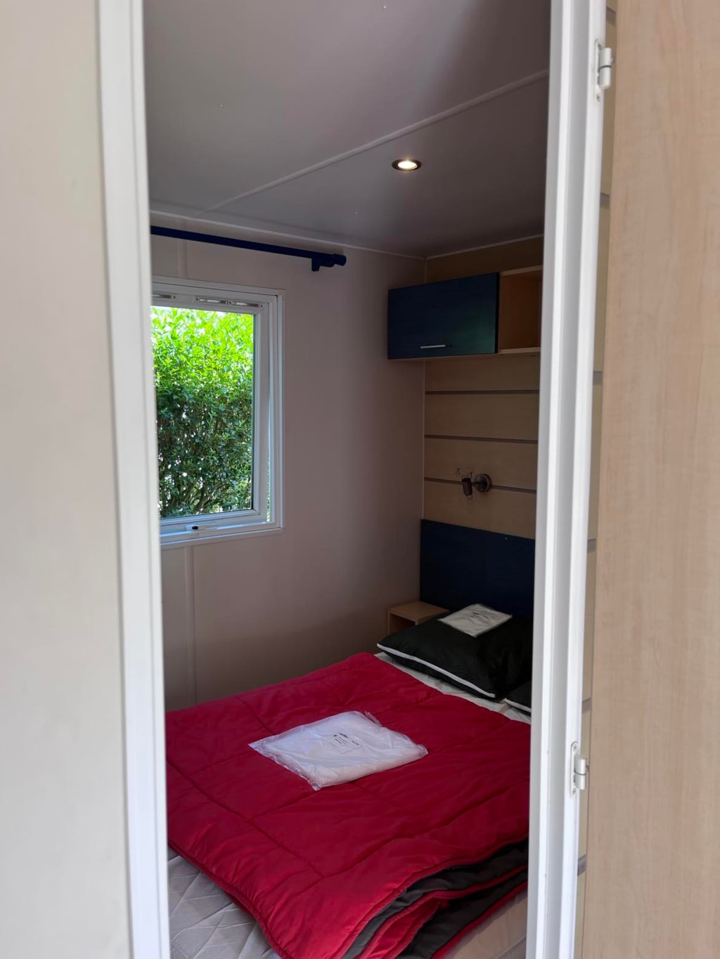 Tonneau ist französisch für Fass. Das Interieur aus Holz. Es gibt keine Wasserversorgung: Sie haben Zugang zu den sanitären Einrichtungen des Campingplatzes. Im Hintergrund ein 140 * 190 Doppelbett, eine Bettdecke, eine Decke und Kissen sowie eine zu installierende 90-cm-Matratze. Stellen Sie sich das wie ein Zelt vor. Mit Strom und ohne Fernseher