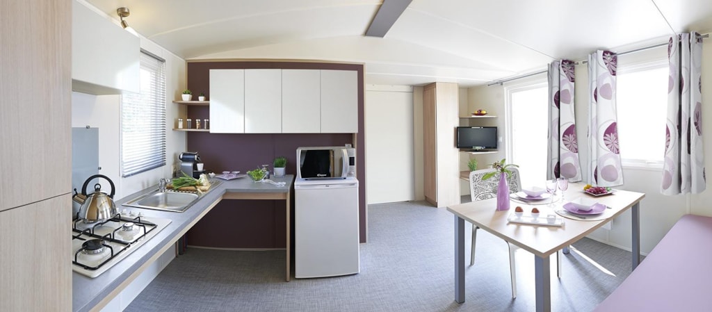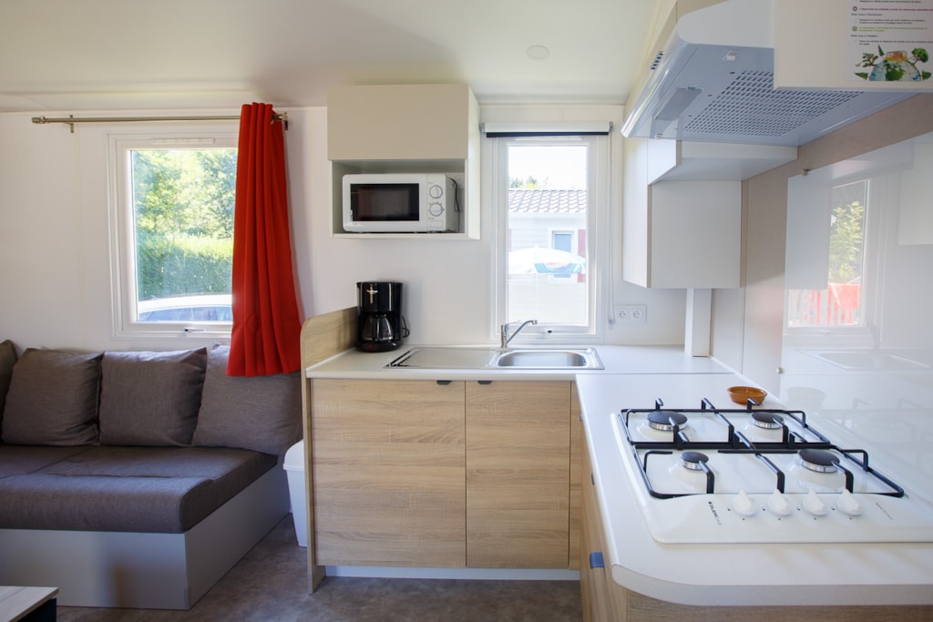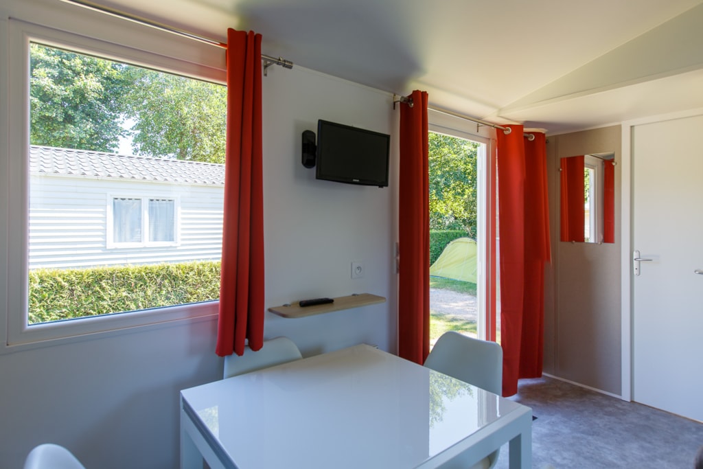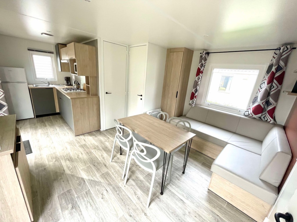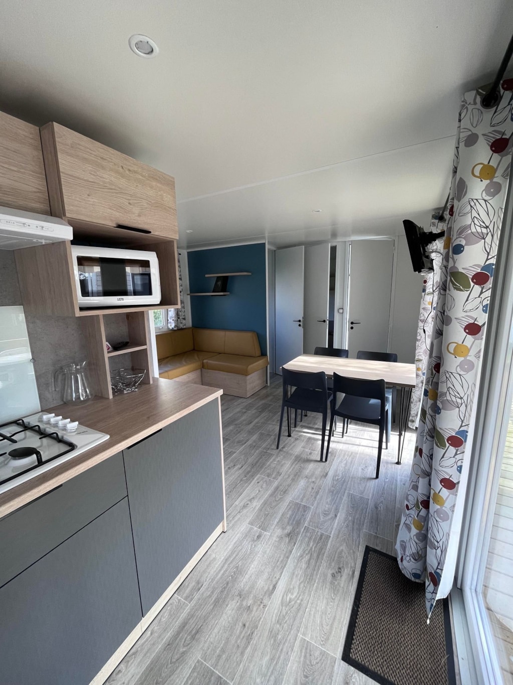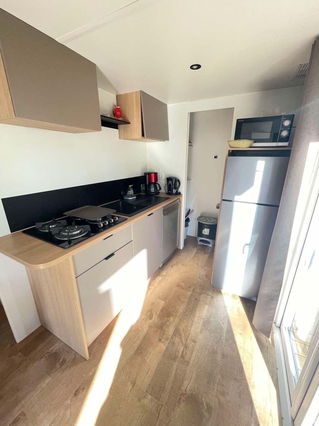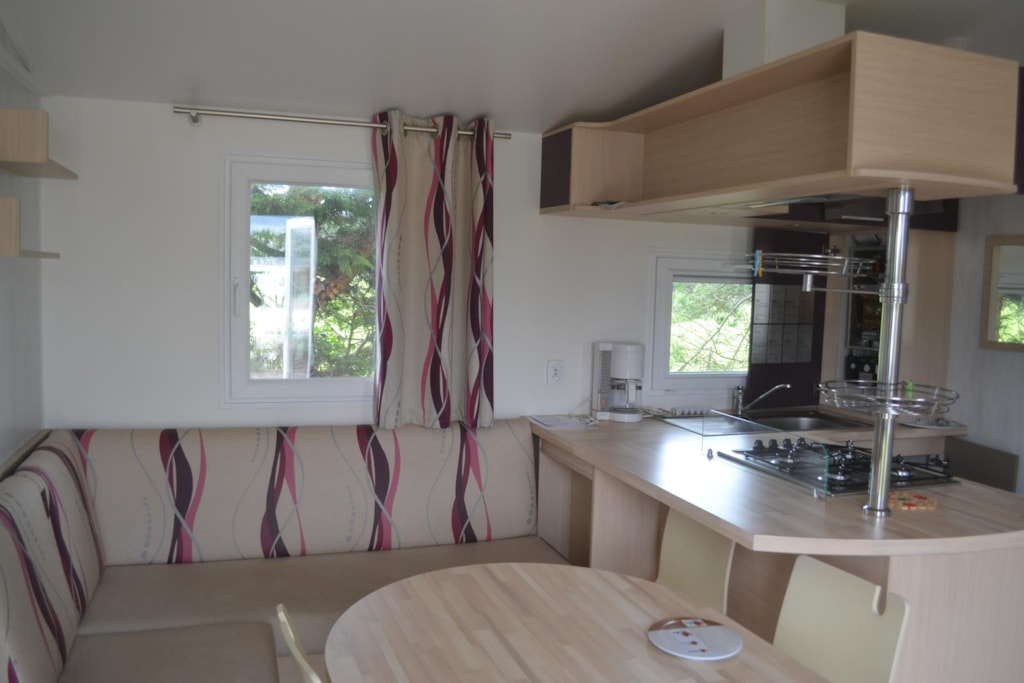Tonneau ist französisch für Fass. Das Interieur aus Holz. Es gibt keine Wasserversorgung: Sie haben Zugang zu den sanitären Einrichtungen des Campingplatzes. Im Hintergrund ein 140 * 190 Doppelbett, eine Bettdecke, eine Decke und Kissen sowie eine zu installierende 90-cm-Matratze. Stellen Sie sich das wie ein Zelt vor. Mit Strom und ohne Fernseher