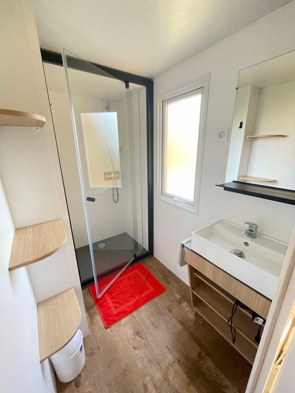 Die Duschen sind so heiß, dass man sich eigentlich nicht duschen kann, denn es lässt sich nichts regulieren. Es ist sehr viel Autoverkehr auf dem Platz, was unangenehm ist, weil langsam fahren offenbar keine französische Tugend zu sein scheint!