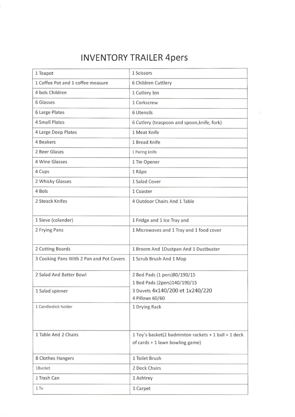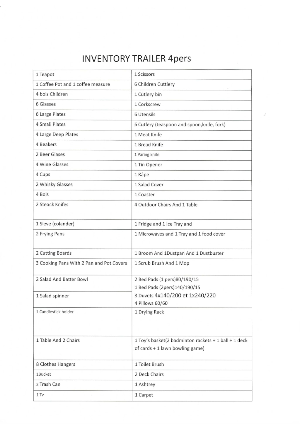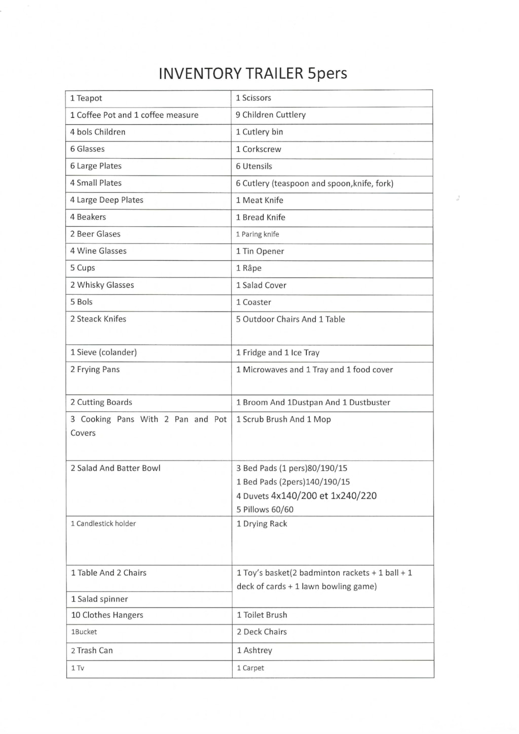 - Bettzeug gemäss Personenzahl