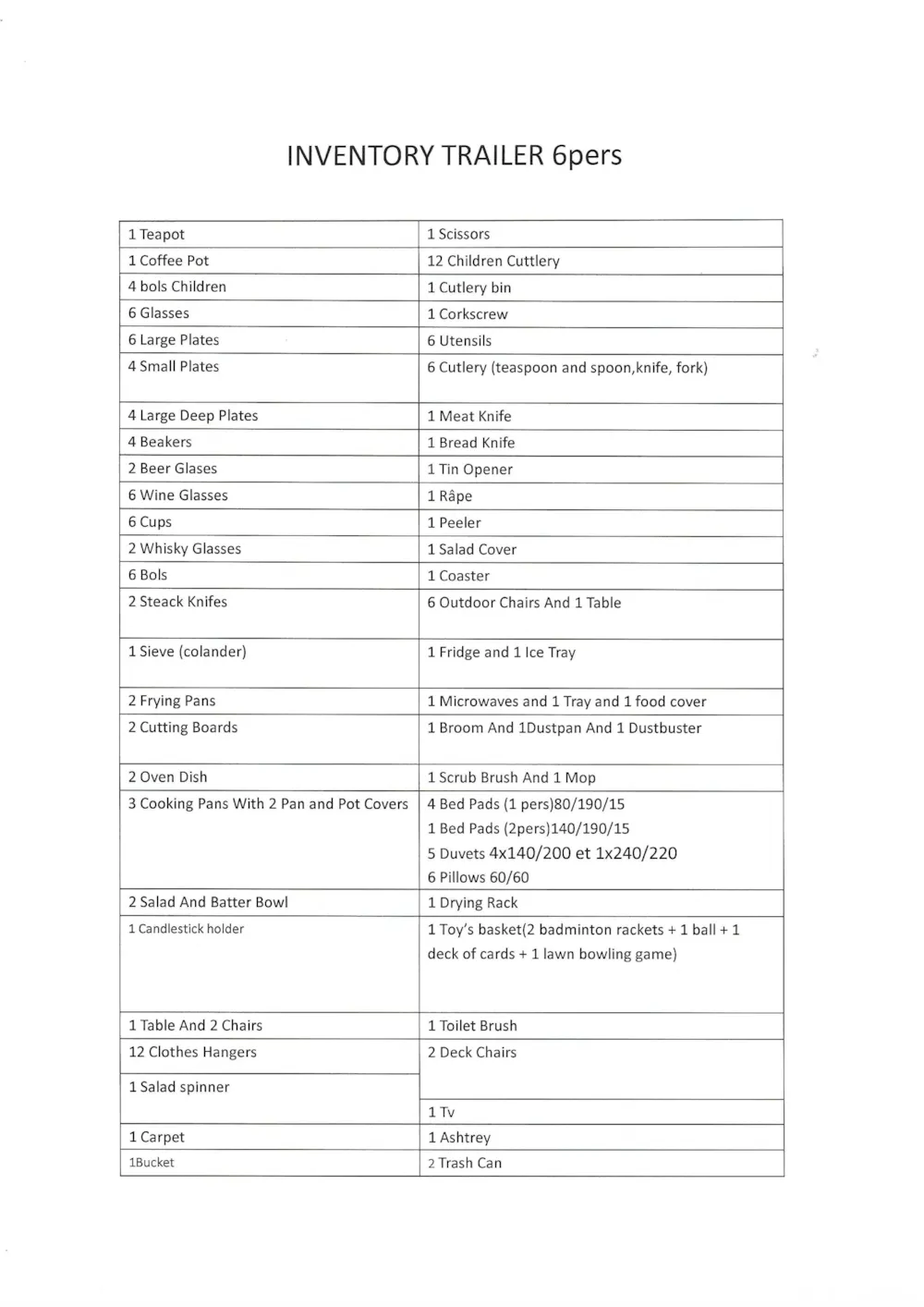 - Geschirr gemäss Personenzahl