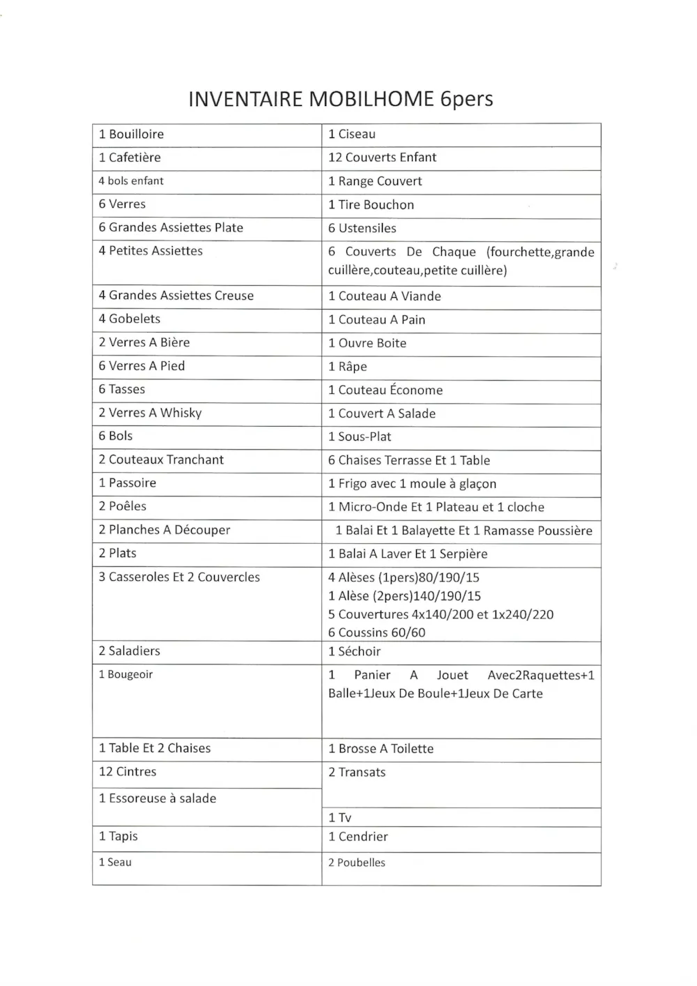 - Weingläser : 6