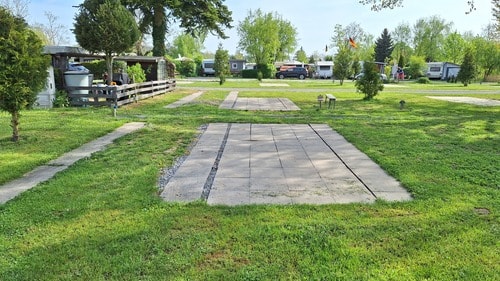 War super. Jeder Stellplatz hat verlegte Platten, sodass es auch bei schlechtem Wetter immer sauber ist. Zusätzlich hat jeder Stellplatz eine Rasenfläche