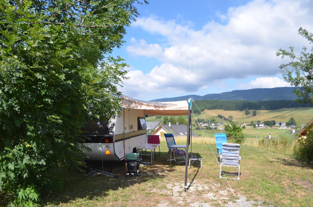 Pitch with an area of 120 m² with an incredible view of the valley and the Vercors mountains. Sanitary about 150 meters. Water point on each pitches. These pitches may be suitable for large installations (caravan, motorhome up to 8 m, large tents, etc.)