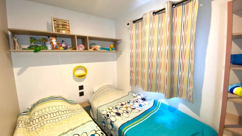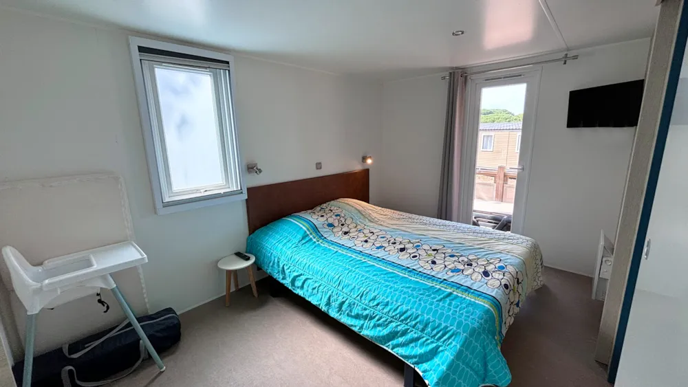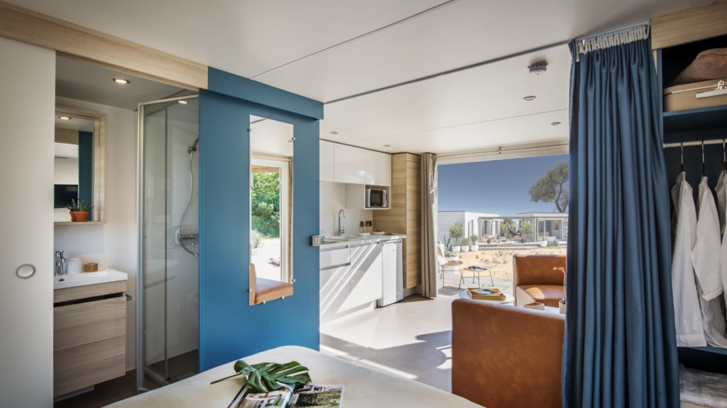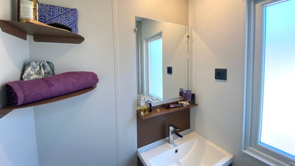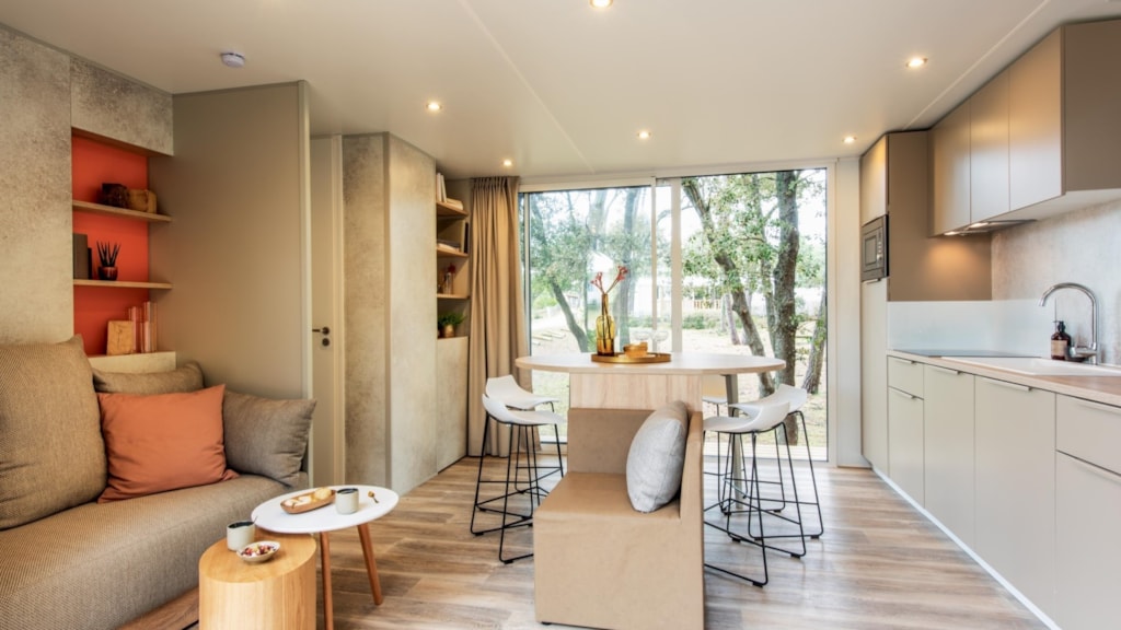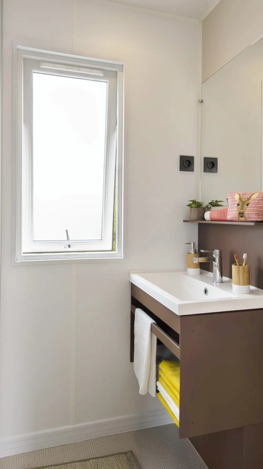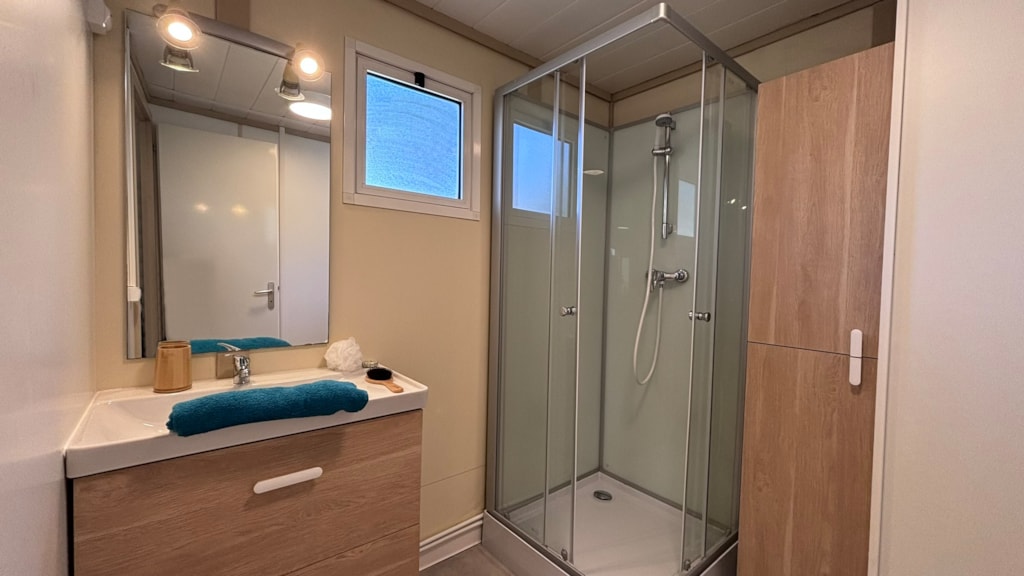 ERSTES MOBIL HOME: Ein einziges Schlafzimmer, Elternsuite mit großem Komfort mit 1 Doppelbett (160cm x 200cm, Bultex-Matratze), vom Wohnzimmer durch einen Vorhang getrennt, eine Sitzbank im Wohnzimmer, ausgestattete Küche, großer Kühlschrank, Mikrowelle, Kapselkaffeemaschine (Dolce Gusto), Geschirrspüler, Essecke, Bettdecken + Kopfkissen, Geschirr, geräumiges Badezimmer mit WC und XXL begehbarer Dusche, Haartrockner und Handtuchtrockner. ZWEITES MOBILHEIM: Ein Schlafzimmer mit 1 Doppelbett (140cm x 190cm), ein Schlafzimmer mit 2 Einzelbetten (70cm x 190cm), Badezimmer, separates WC, Bettdecken und Kopfkissen, ausgestattete Küche, großer Kühlschrank, Mikrowelle, Kapsel-Kaffeemaschine, Essecke, Geschirr.