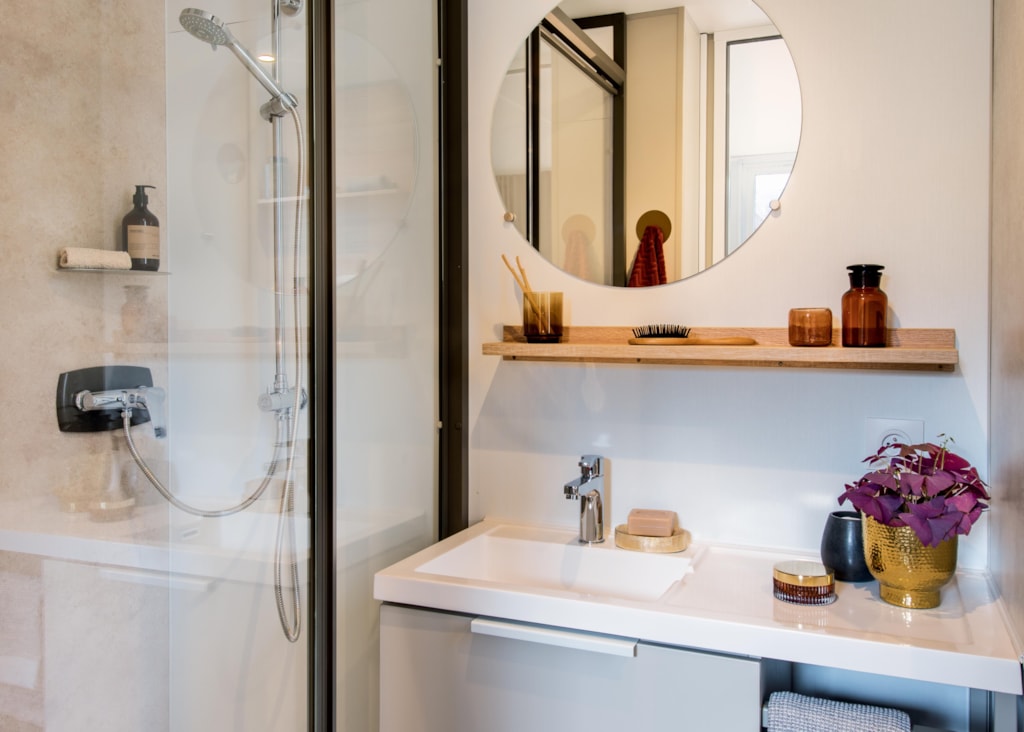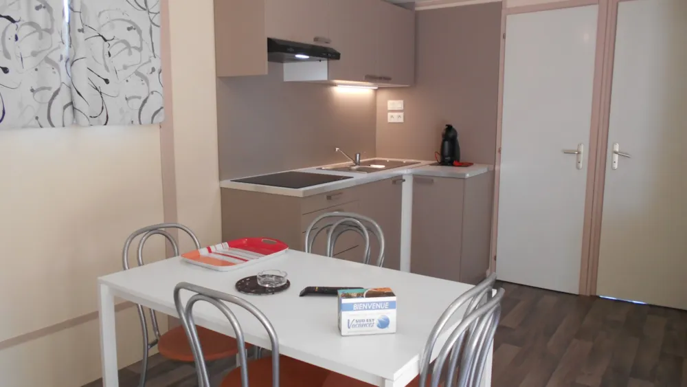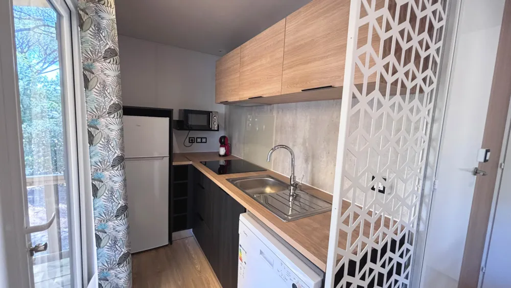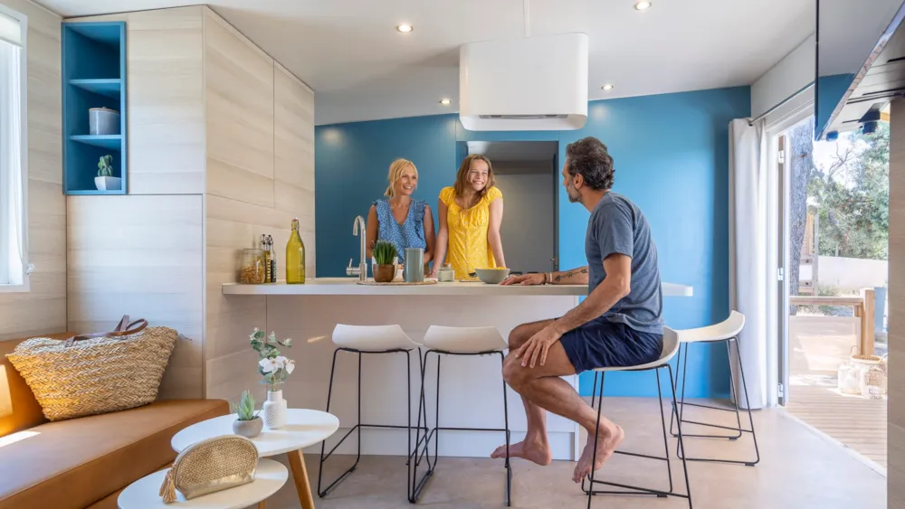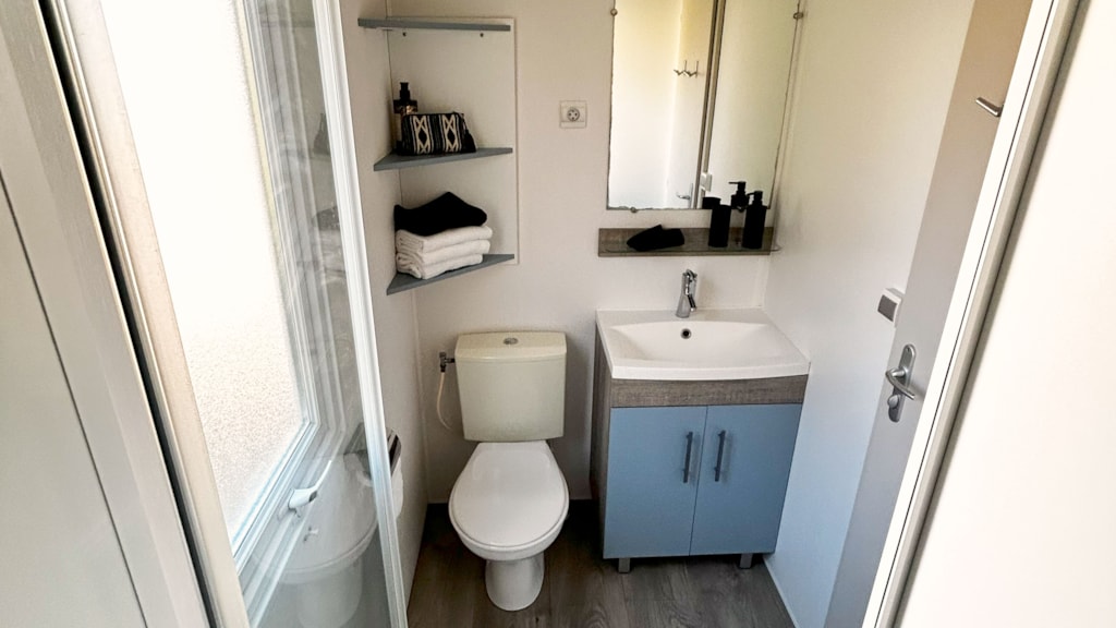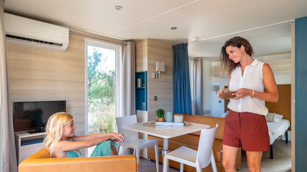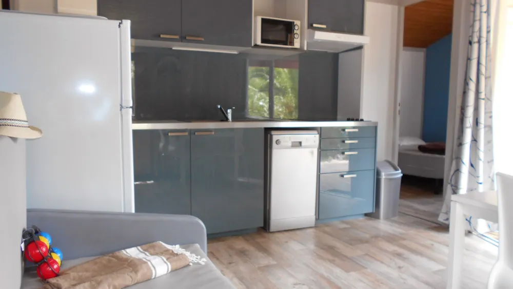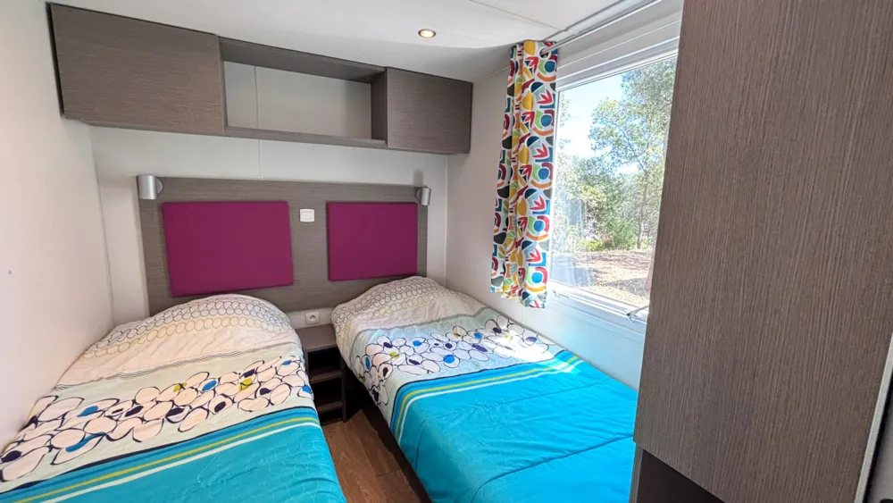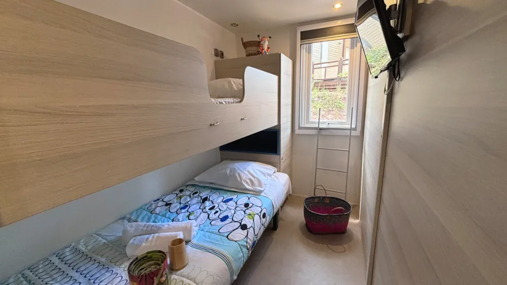 ERSTES MOBIL HOME: Ein einziges Schlafzimmer, Elternsuite mit großem Komfort mit 1 Doppelbett (160cm x 200cm, Bultex-Matratze), vom Wohnzimmer durch einen Vorhang getrennt, eine Sitzbank im Wohnzimmer, ausgestattete Küche, großer Kühlschrank, Mikrowelle, Kapselkaffeemaschine (Dolce Gusto), Geschirrspüler, Essecke, Bettdecken + Kopfkissen, Geschirr, geräumiges Badezimmer mit WC und XXL begehbarer Dusche, Haartrockner und Handtuchtrockner. ZWEITES MOBILHEIM: Ein Schlafzimmer mit 1 Doppelbett (140cm x 190cm), ein Schlafzimmer mit 2 Einzelbetten (70cm x 190cm), Badezimmer, separates WC, Bettdecken und Kopfkissen, ausgestattete Küche, großer Kühlschrank, Mikrowelle, Kapsel-Kaffeemaschine, Essecke, Geschirr.
