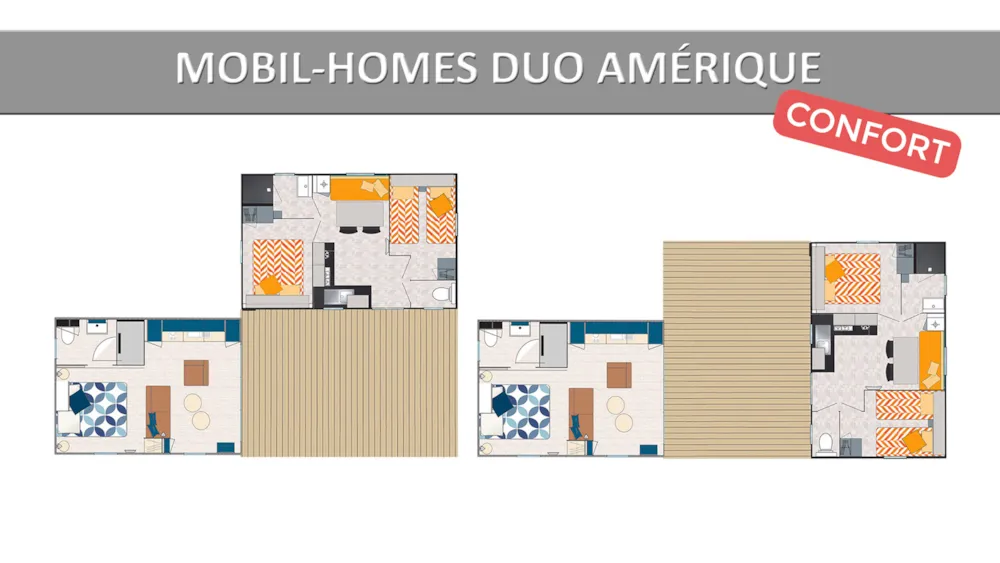 1 TENNESSY Mobilheim + 1 Idaho Mobilheim mit gemeinsamer Terrasse