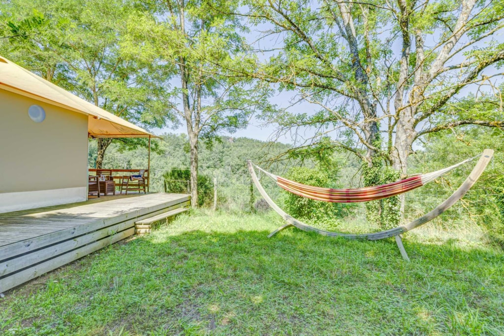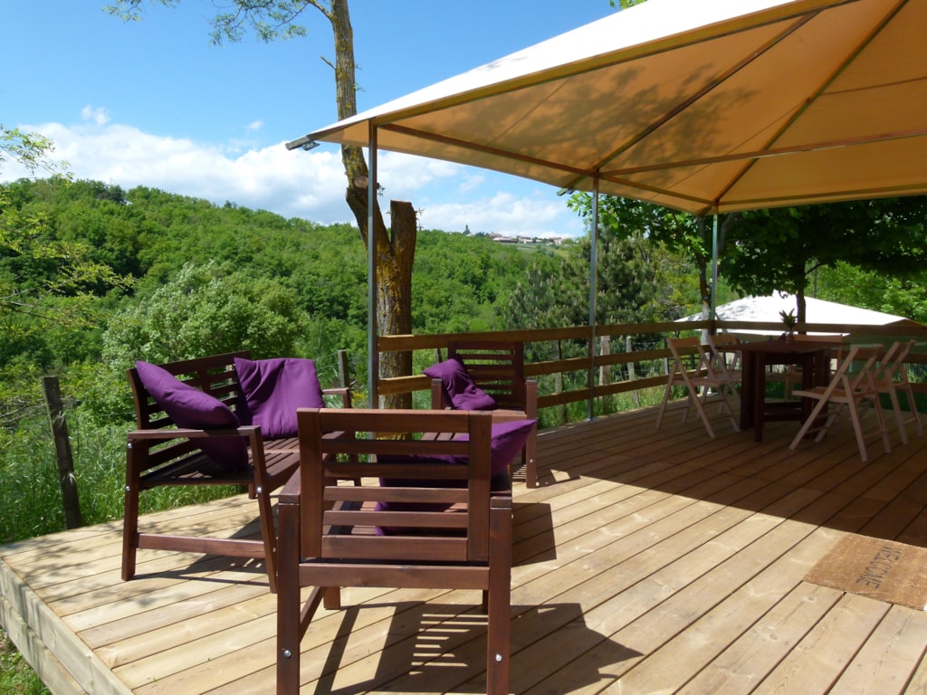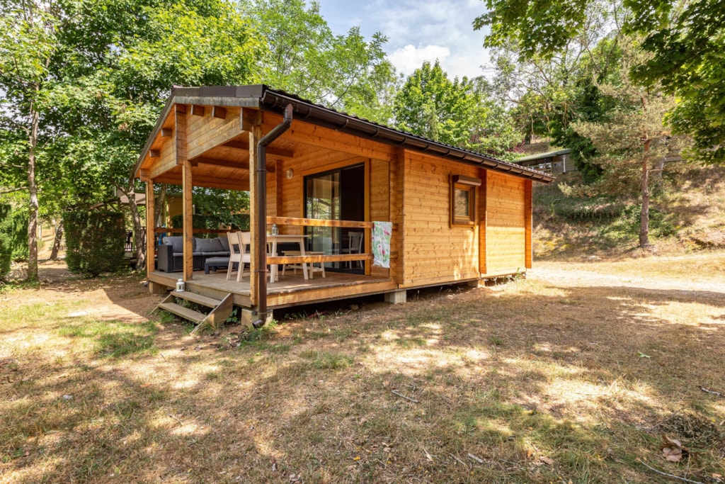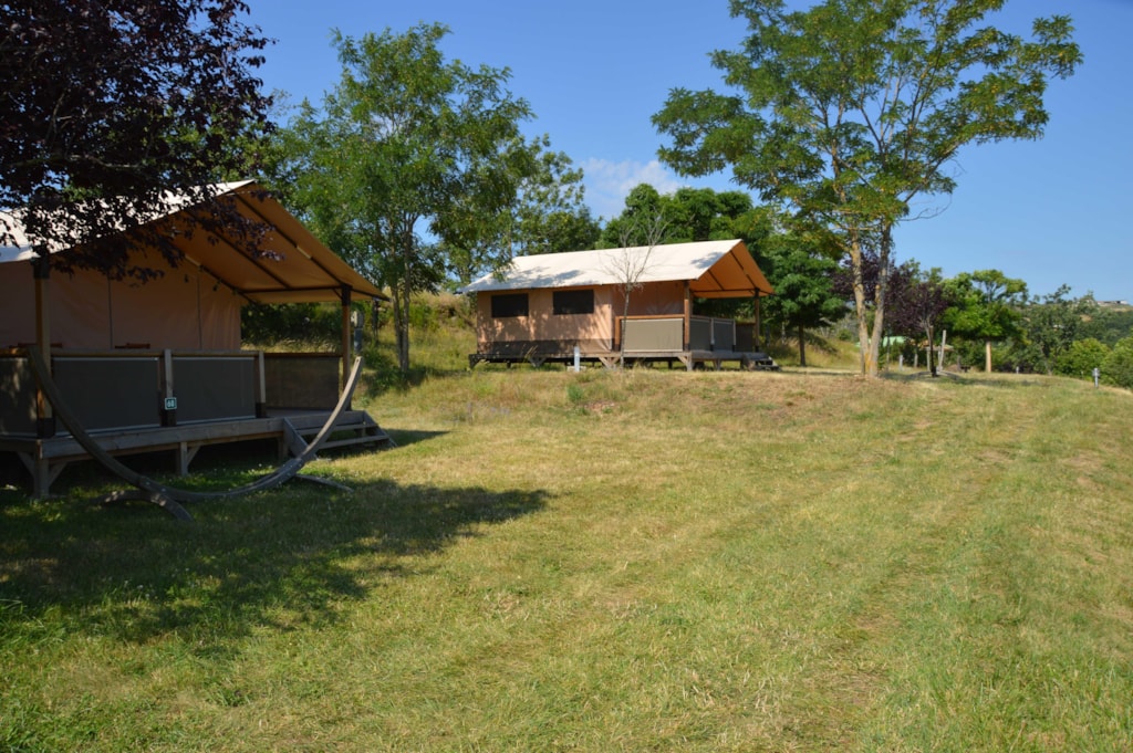 Lodge Insolite Vivarais ohne Sanitäranlagen 4 Plätze auf Holzboden mit einer überdachten Terrasse von 12 m2 + 1 Hängematte am Flussufer. 2 getrennte Schlafzimmer ( 1 Zimmer mit zwei Einzelbetten 80x200 und ein Doppelbett 140x200), voll ausgestattete Küche im Wohnzimmer (Kühlschrank, Mikrowelle, Geschirr, Gas-Kochplatten , Tisch und Stühle), entspannende Lounge auf der Terrasse. Ohne Bad, aber eine Wasserstelle auf dem Gelände. In der Nähe des Sanitärblocks. Diese Lodge ist für Familien geeignet, da sie in der Nähe der Aktivitäten des Campingplatzes und des Pools liegt. Der Fluss bringt im Sommer Frische und die umliegenden Bäume. N° 2 und 9