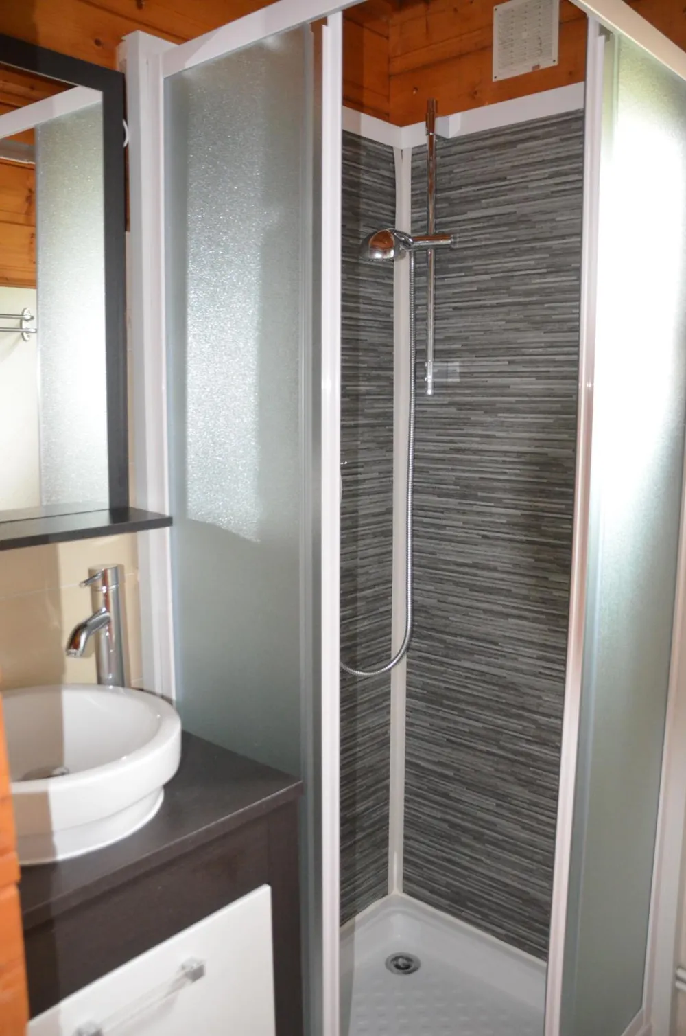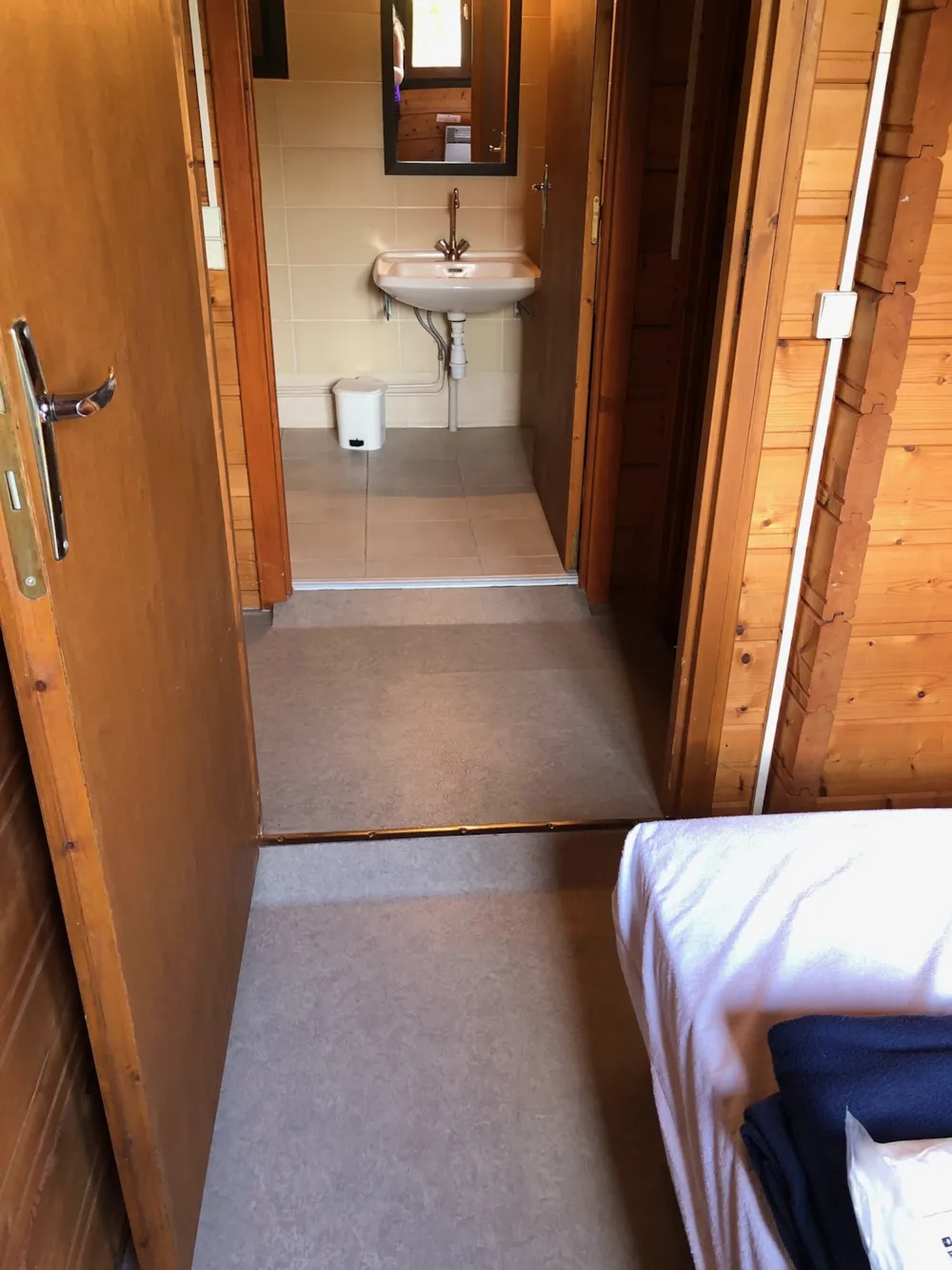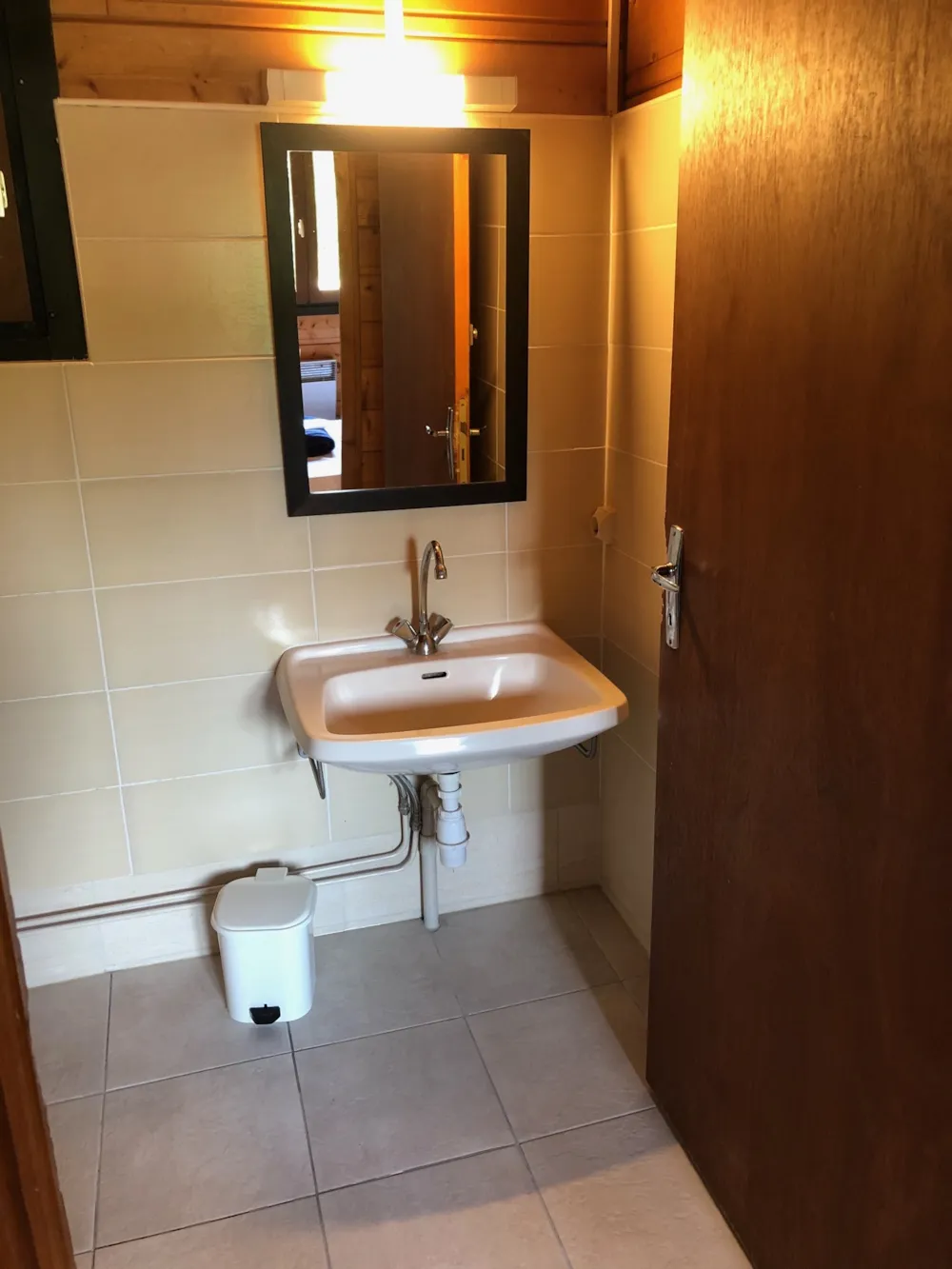Das Chalet ist mit barrierefreien Einrichtungen für Menschen mit eingeschränkter Mobilität ausgestattet, darunter ein niedrigeres Waschbecken, eine Dusche und speziell gestaltete Toiletten.