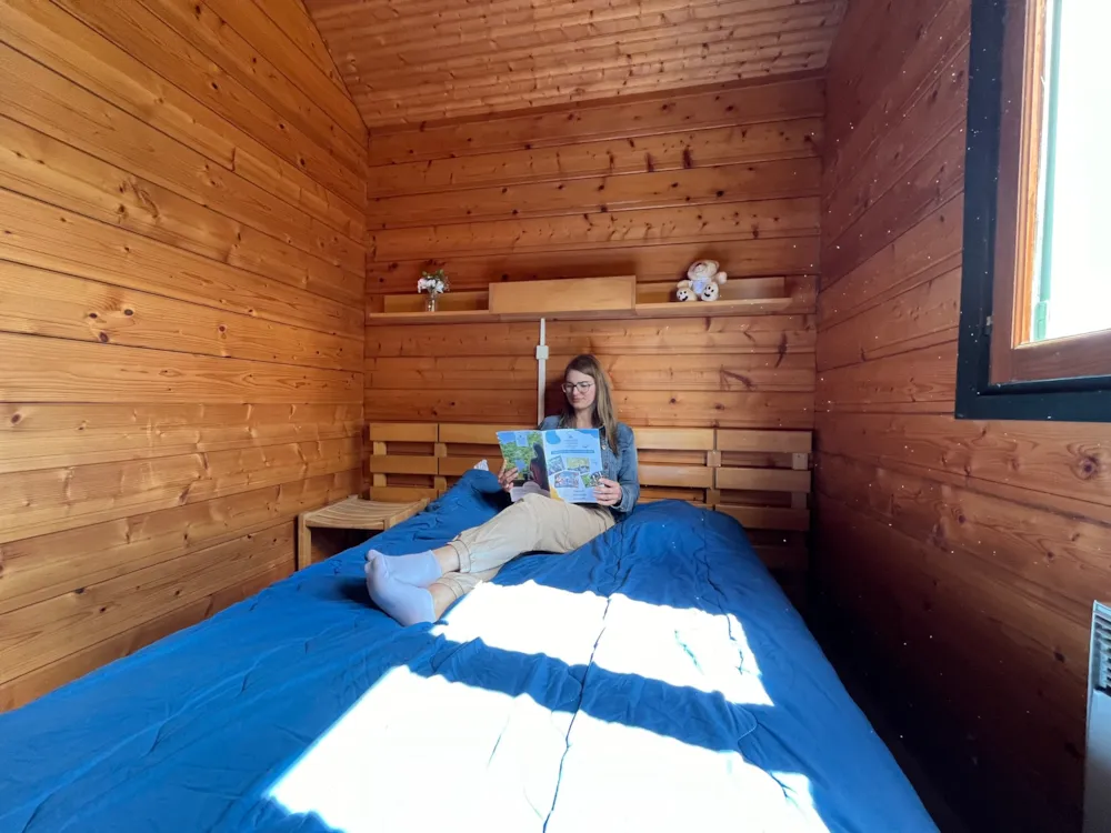 Es verfügt auch über eine Küche, die für Menschen mit eingeschränkter Mobilität angepasst ist, sowie ein Schlafzimmer mit einem Doppelbett. Das zweite Schlafzimmer mit Etagenbetten ist nicht für Menschen mit eingeschränkter Mobilität geeignet. Der Zugang zur Unterkunft erfolgt über eine Rampe,
