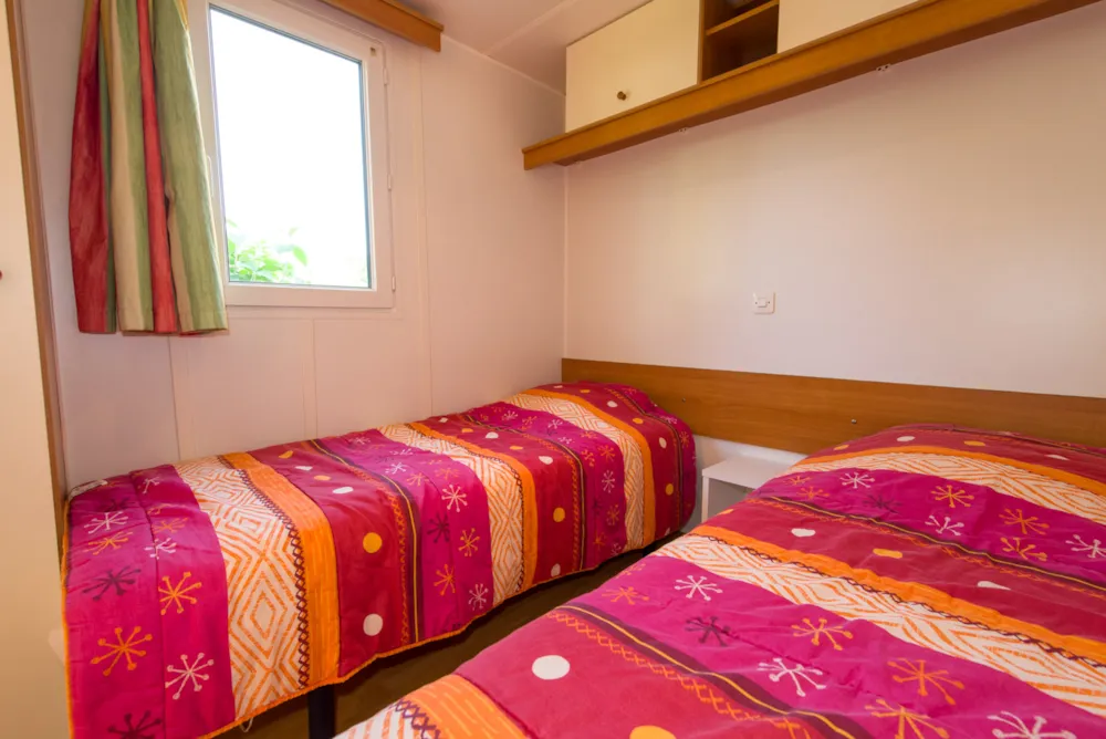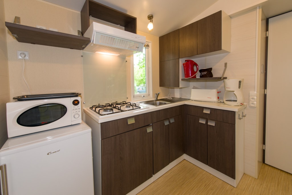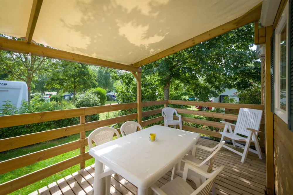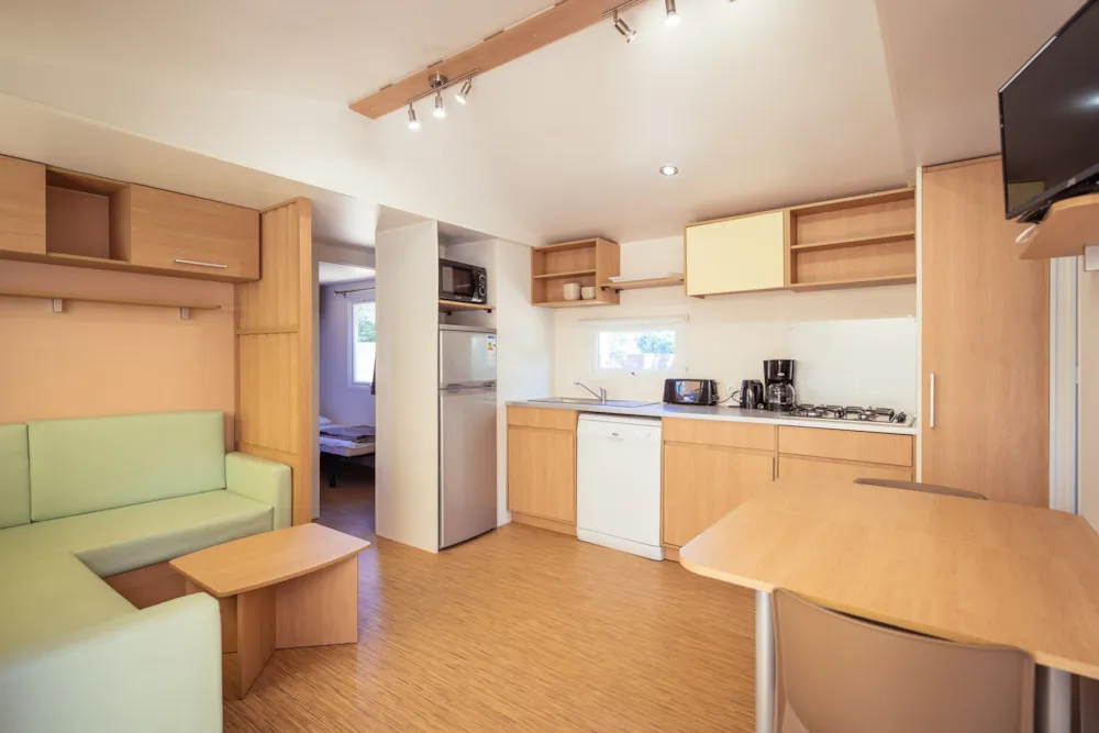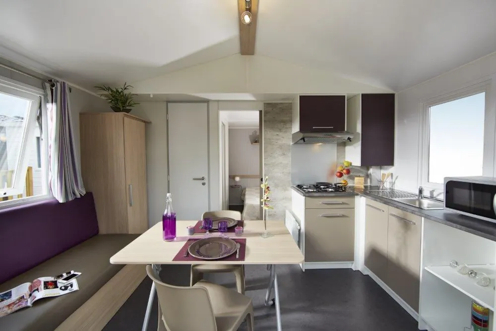 Seine Geräumigkeit und die 3 unabhängigen Zimmer werden Sie begeistern, damit sich die ganze Familie während Ihres Urlaubs auf dem Campingplatz Etang wohlfühlt und sich voll und ganz erholen kann.