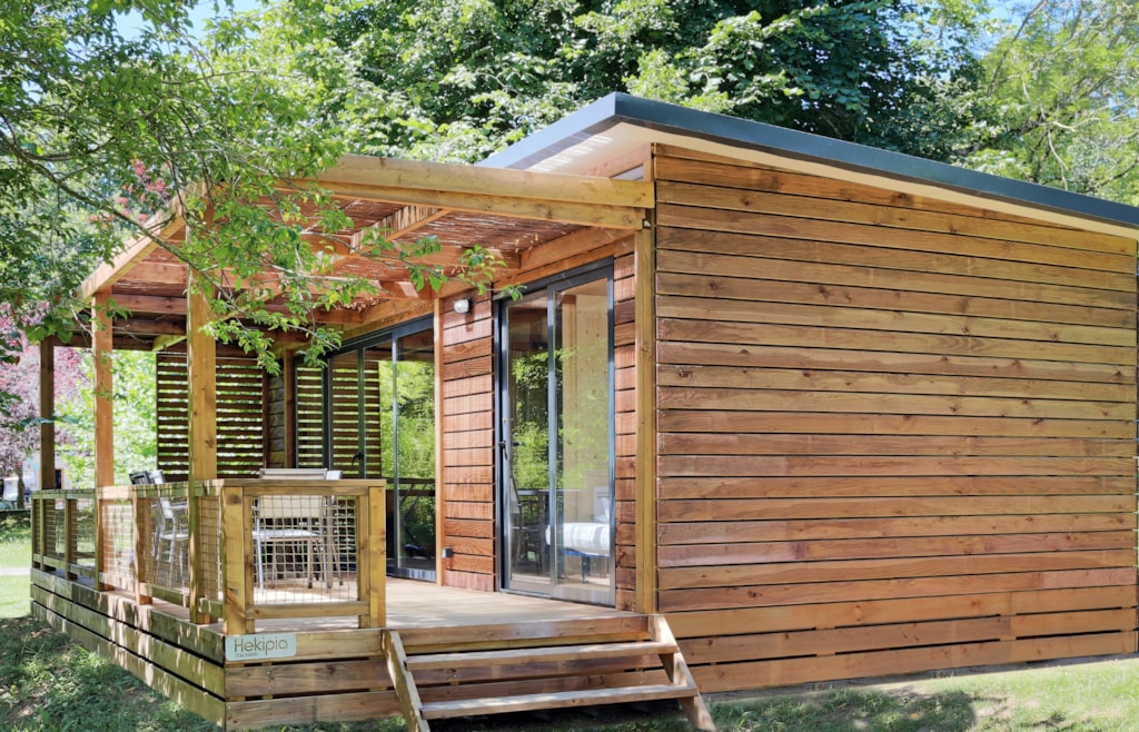 The Maine Chalet charms with its bright spaces and high-end comfort. Its large 4-metre bay window and spacious terrace extend the living area outdoors, allowing you to fully enjoy the breathtaking view of the pond and the birdsong when you wake up. 🌿