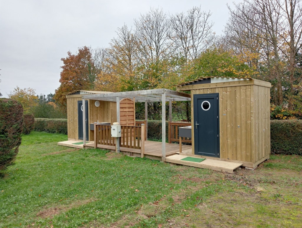 Stellplatz 90m² mit individueller Toilette (Zwilling) inkl. Dusche, Waschbecken, WC, Spüle und Kühlschrank. Elektrizität 10A (Anschluss Europaanschluss). Ein Komfort für Ihren Zelt- oder Wohnwagen. 1 Fahrzeug pro Stellplatz, Zusatzfahrzeug : 3€/nacht auf dem parkplatz.