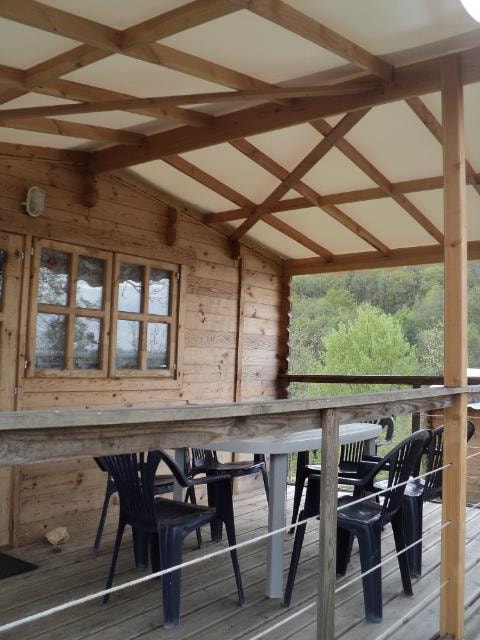 Chalet bois 31m² avec 3 CHAMBRES NOUVEAUTE 2020 Rocamadour 6 pl avec sanitaires AVEC TERRASSE COUVERTE
