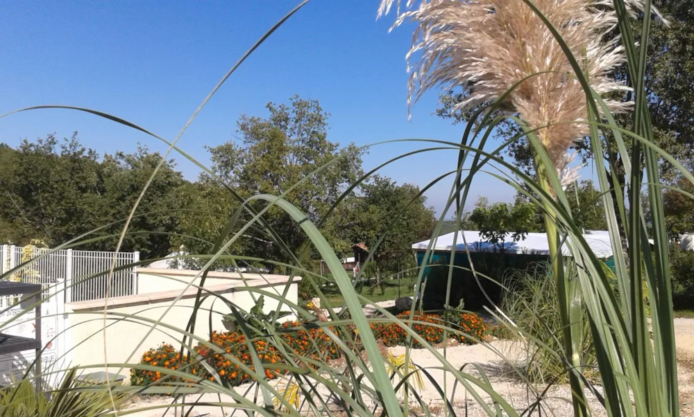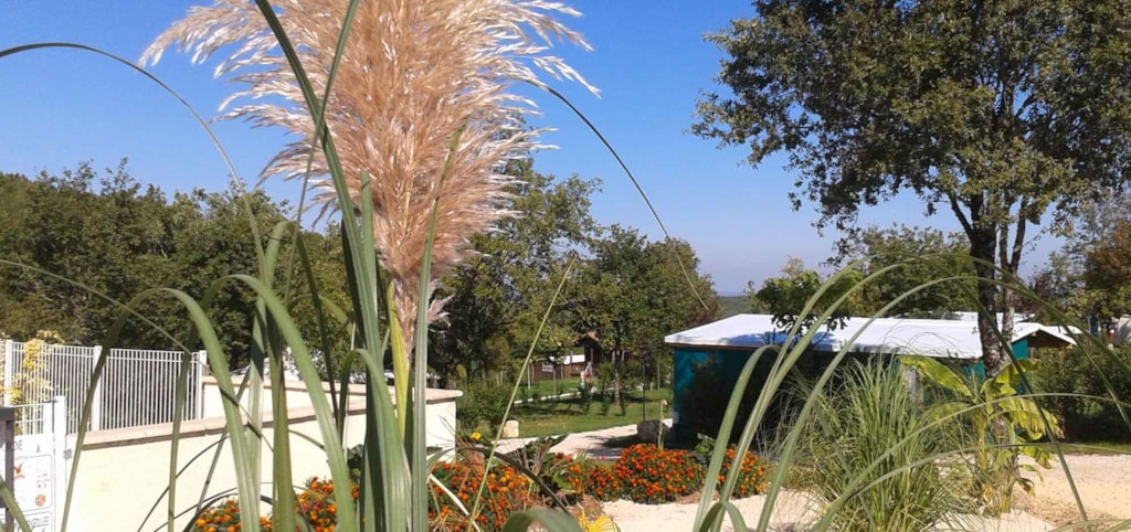 Tent with equipment, 2 bedrooms, 1 bed for 2 personnes in the first bedroom, 3 single beds in the second one, small kitchen corner, refrigerator, no bathroom neither toilets, no water inside the rental but water bornes along the rental, covered terrace, garden table and chairs, near the toilet block