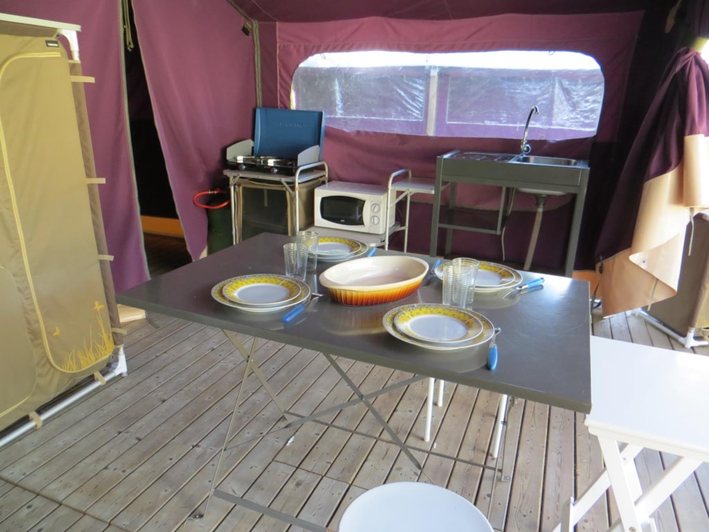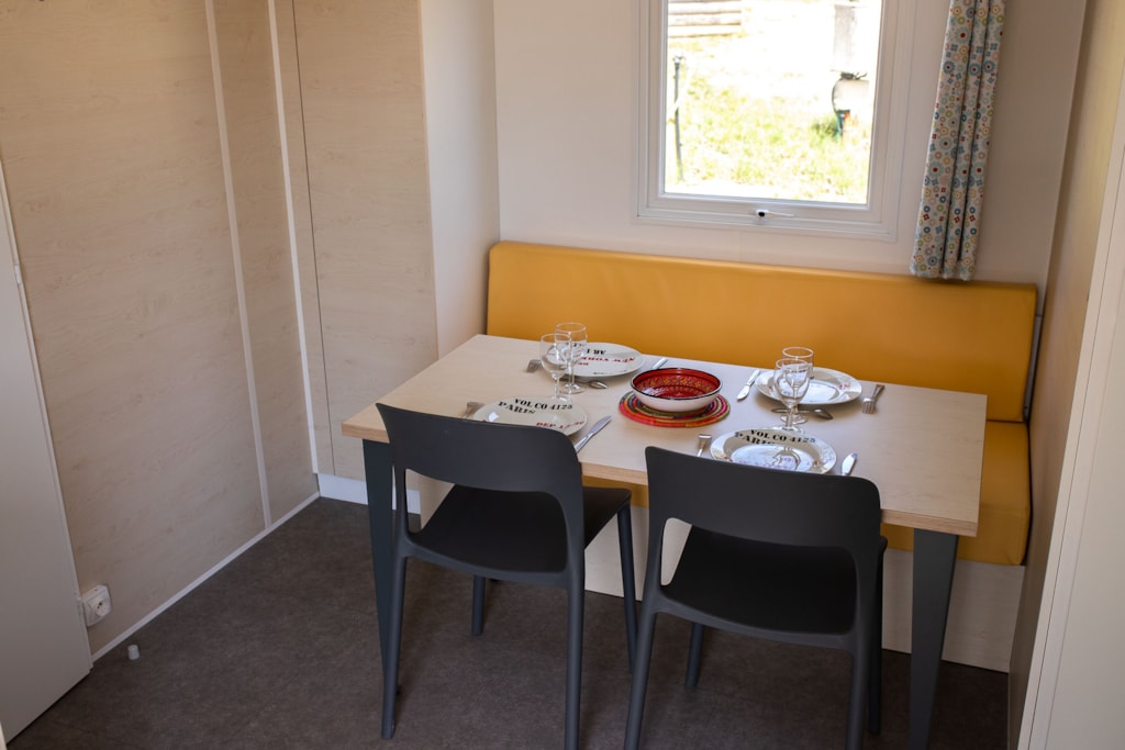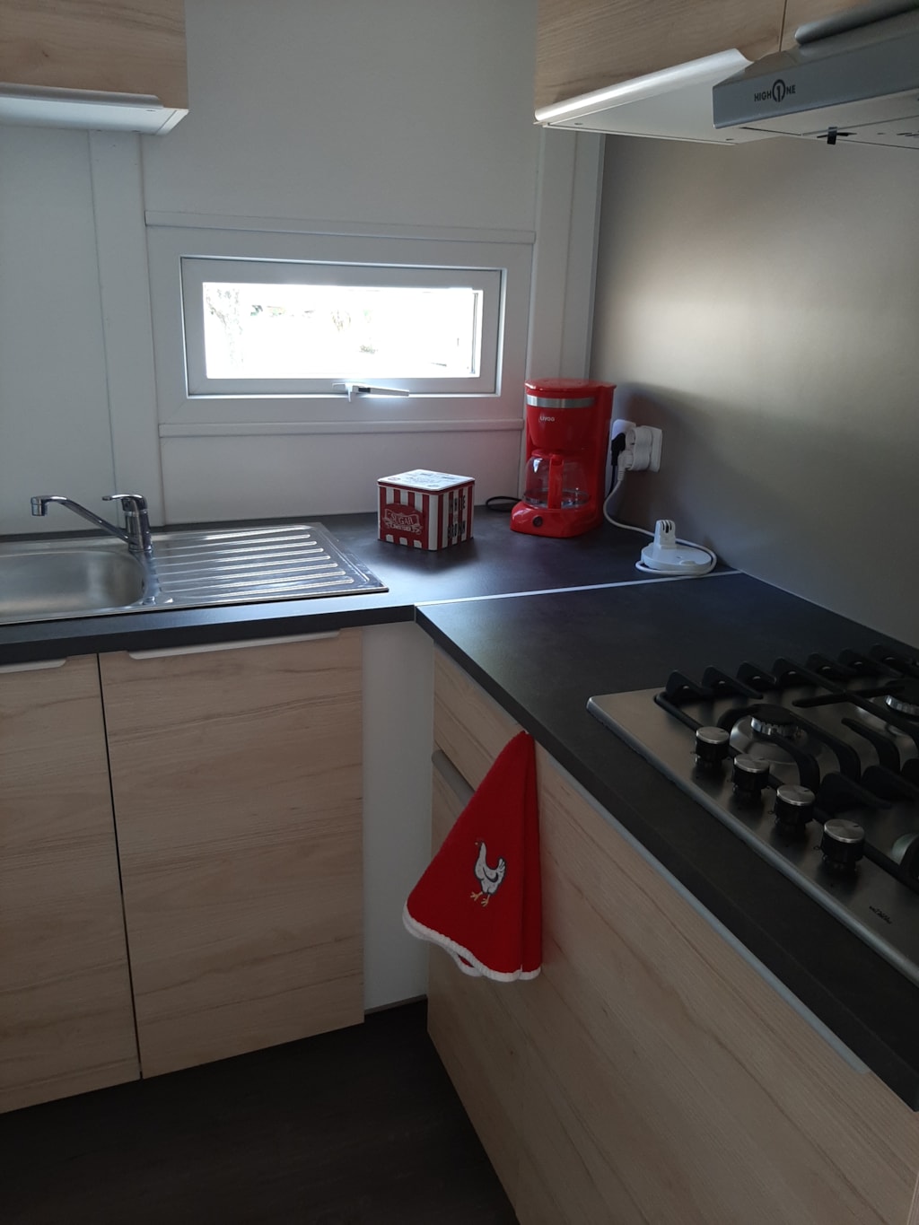 Küche und Essraum sind geräumig; Das Geschirr und Kochuntensilien in ausreichender Zahl und guter Qualität vorhanden und sauber wie das gesamte Mobilhome.