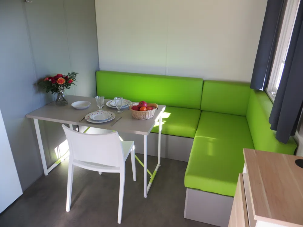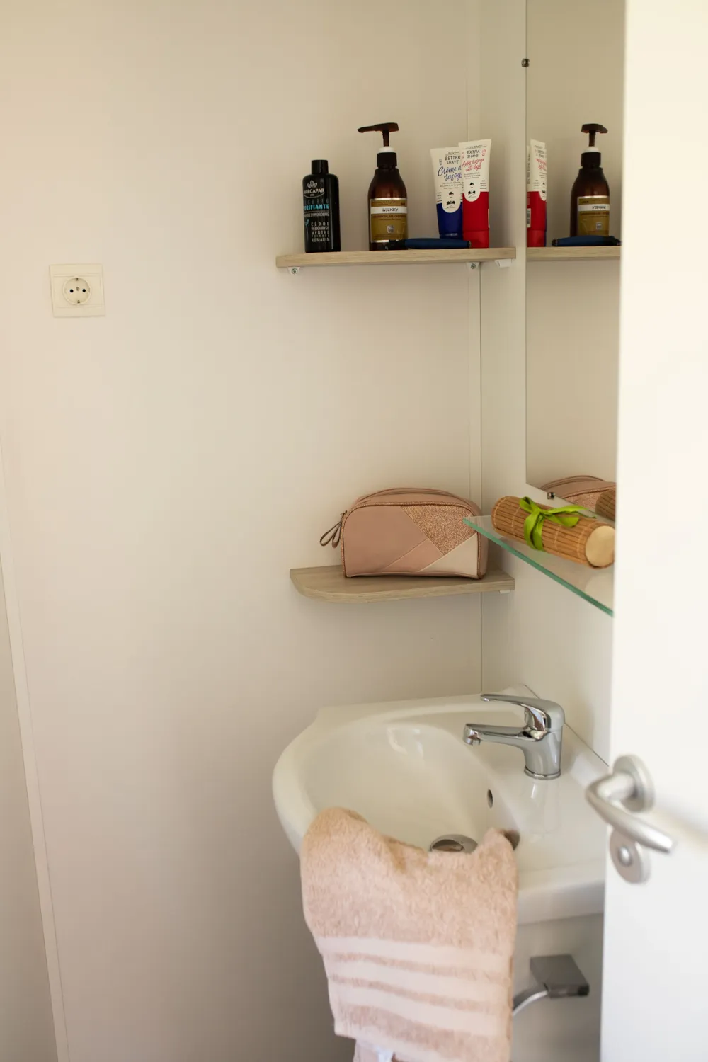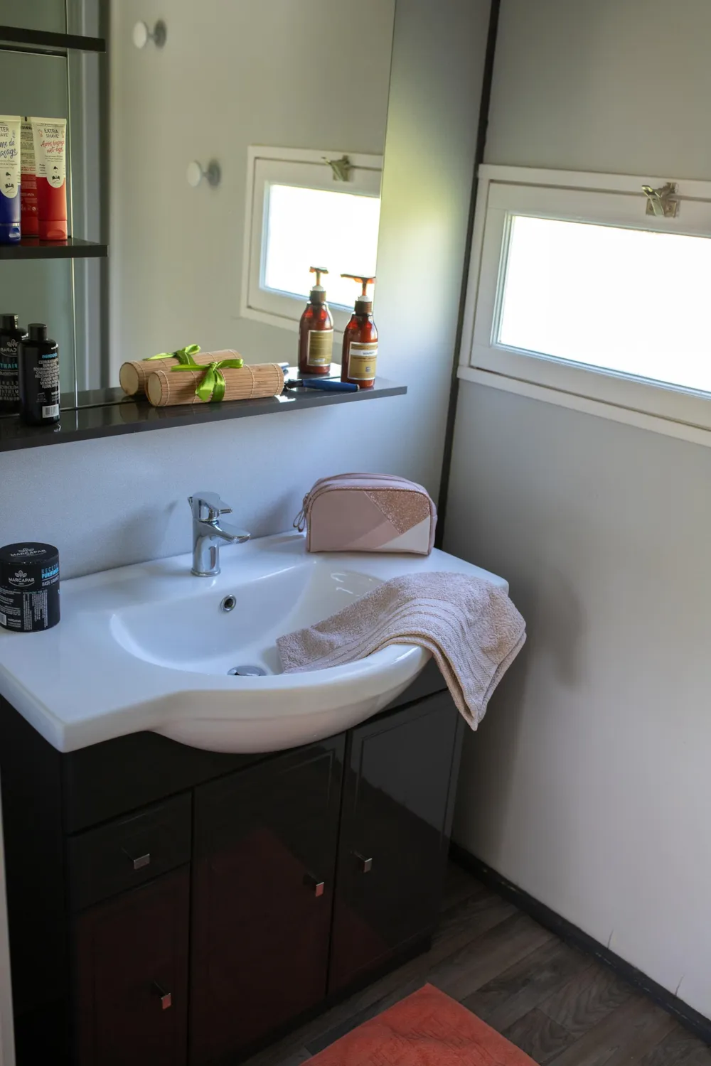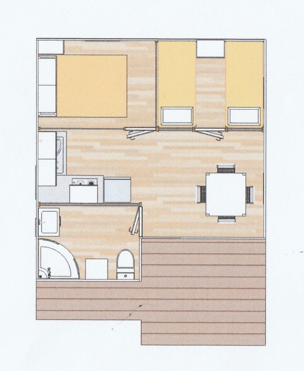 Mobilheim OPHEA 784 31m² (2 Schlafzimmer) überdachte Terrasse