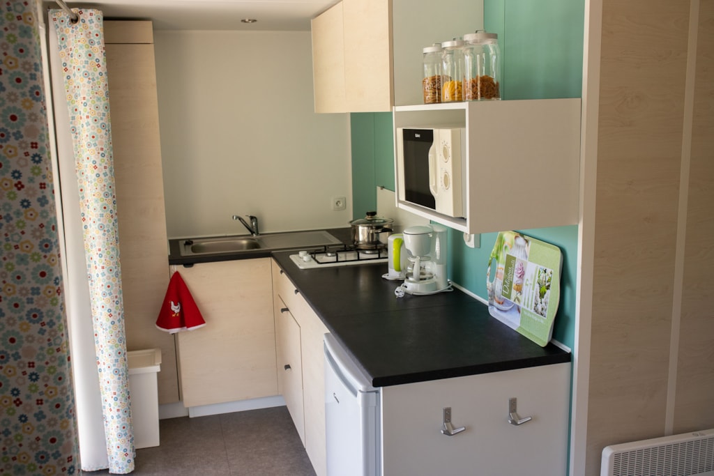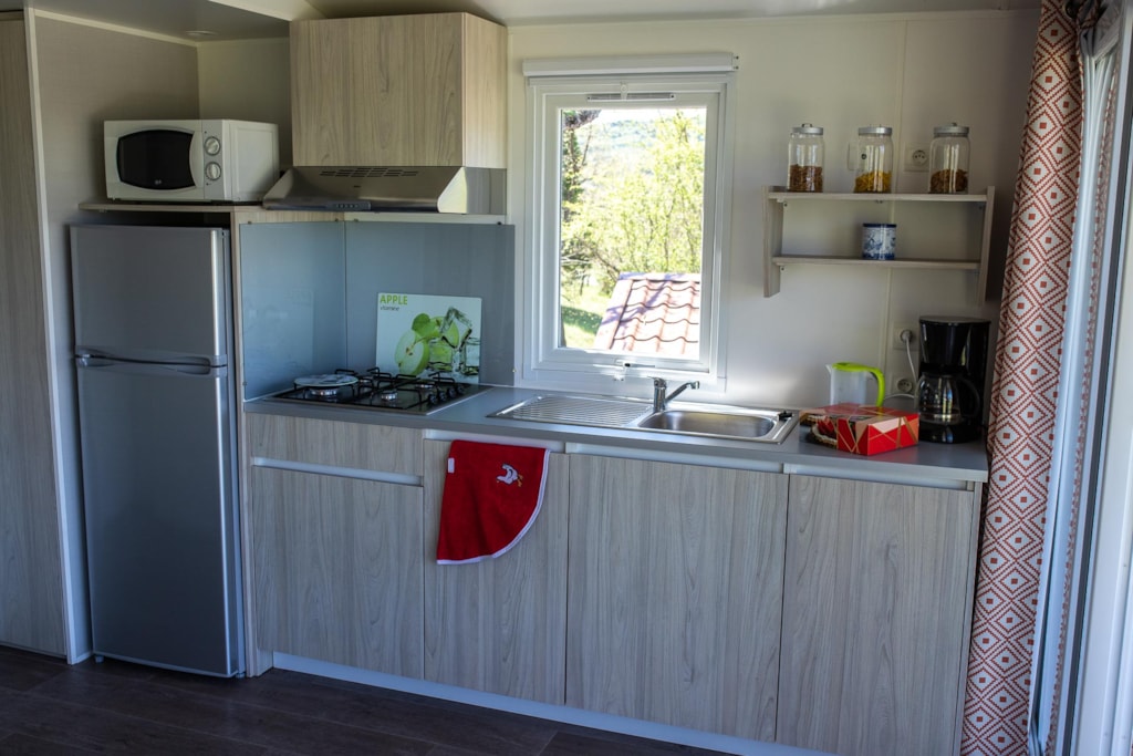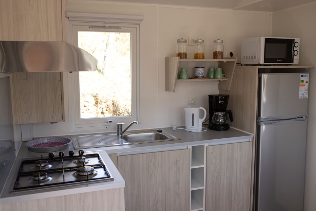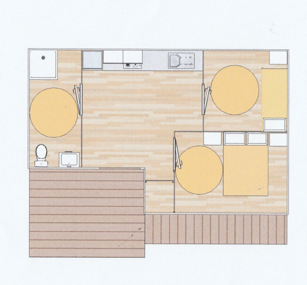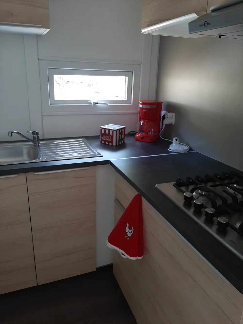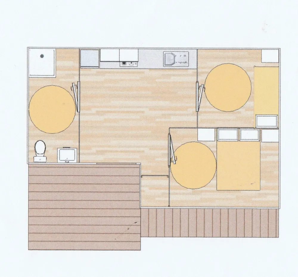 Mobilheim OPHEA 784 31m² (2 Schlafzimmer) überdachte Terrasse