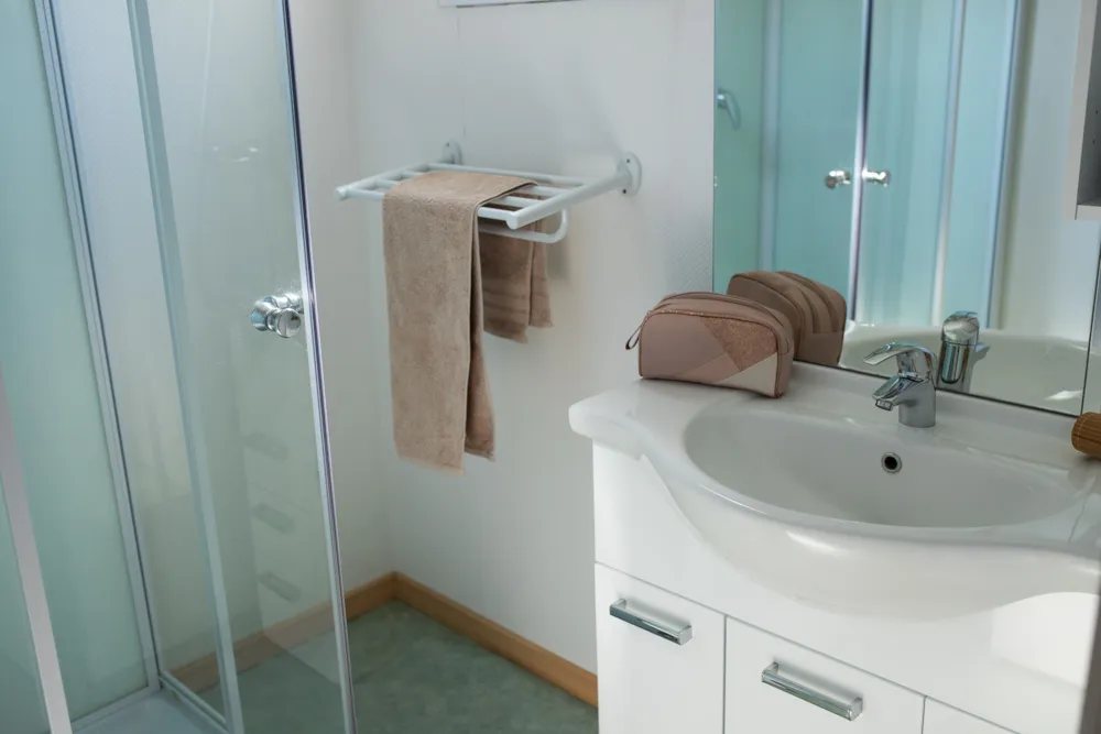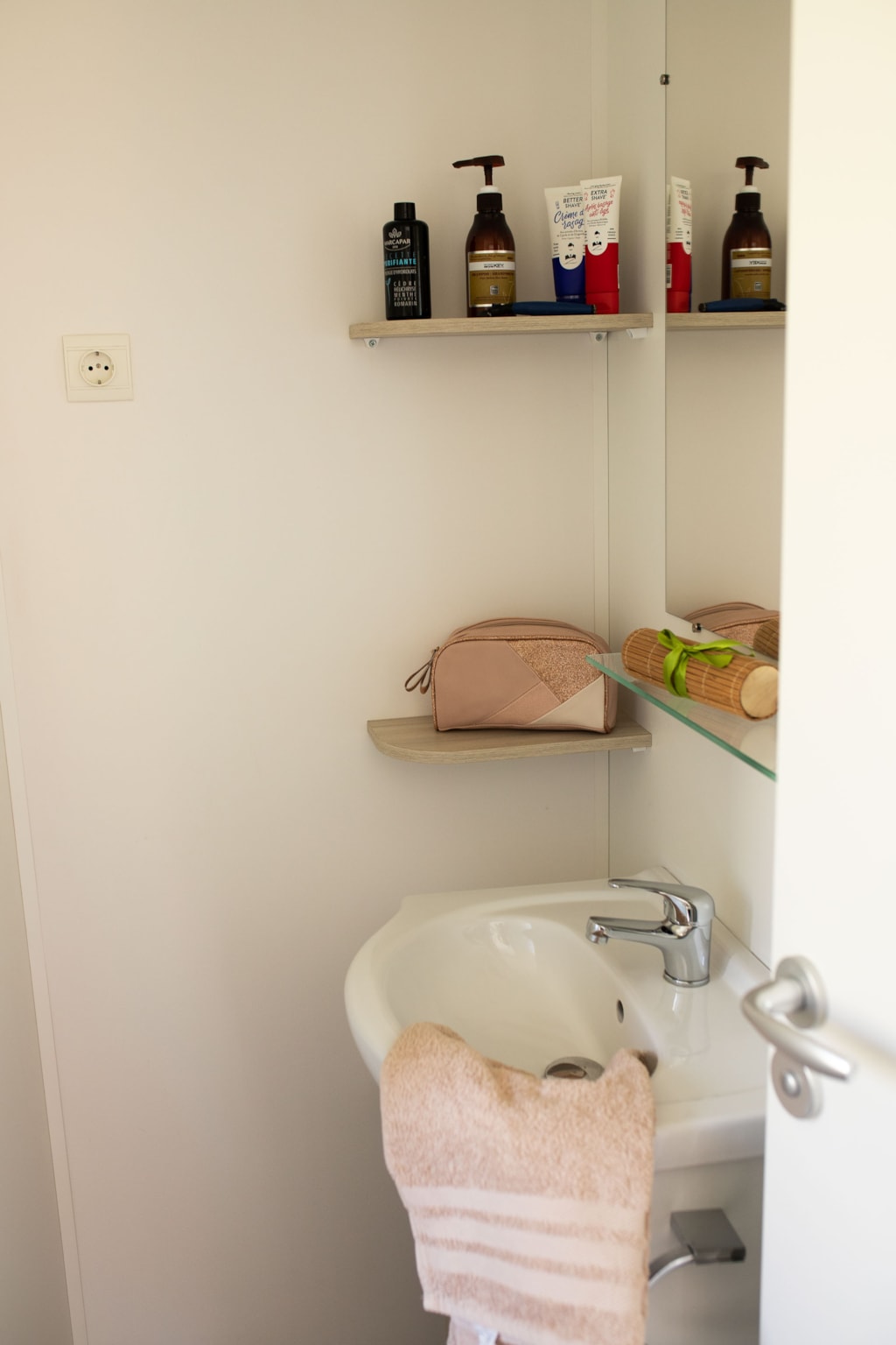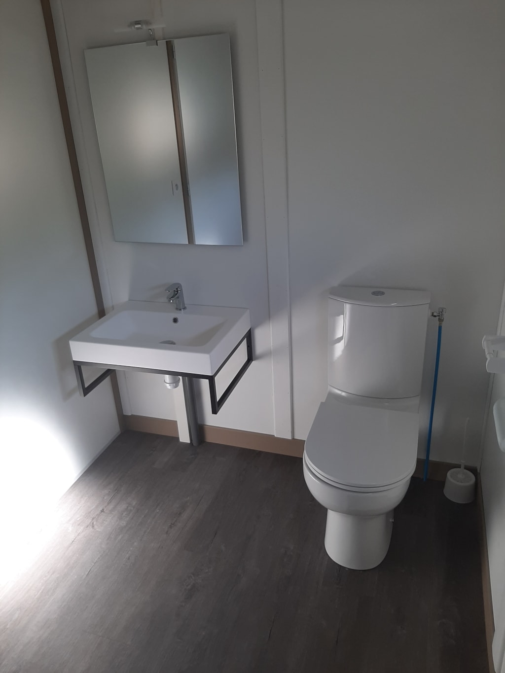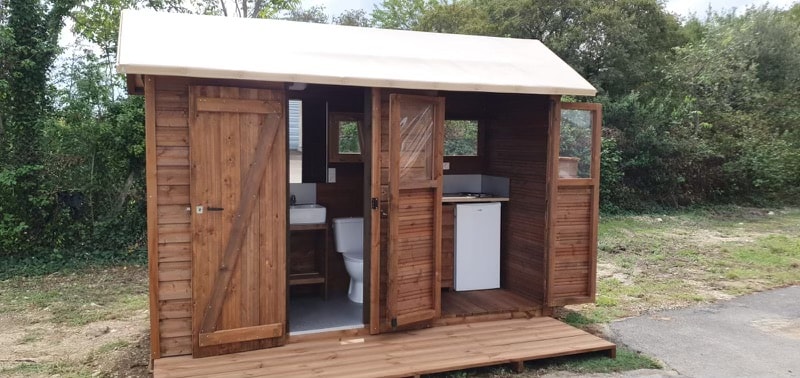 Ideal für Camper, die sich mehr Komfort wünschen. Diese private Sanitäranlage mit ihrem einfachen, ästhetischen und ausgesprochen natürlichen Design ist der perfekte Trumpf für das Leben im Freien und bewahrt gleichzeitig die Privatsphäre der Familie.