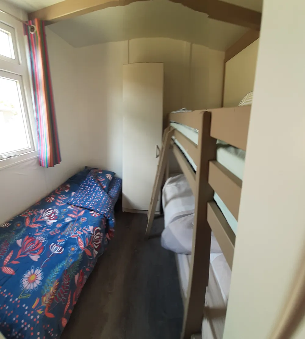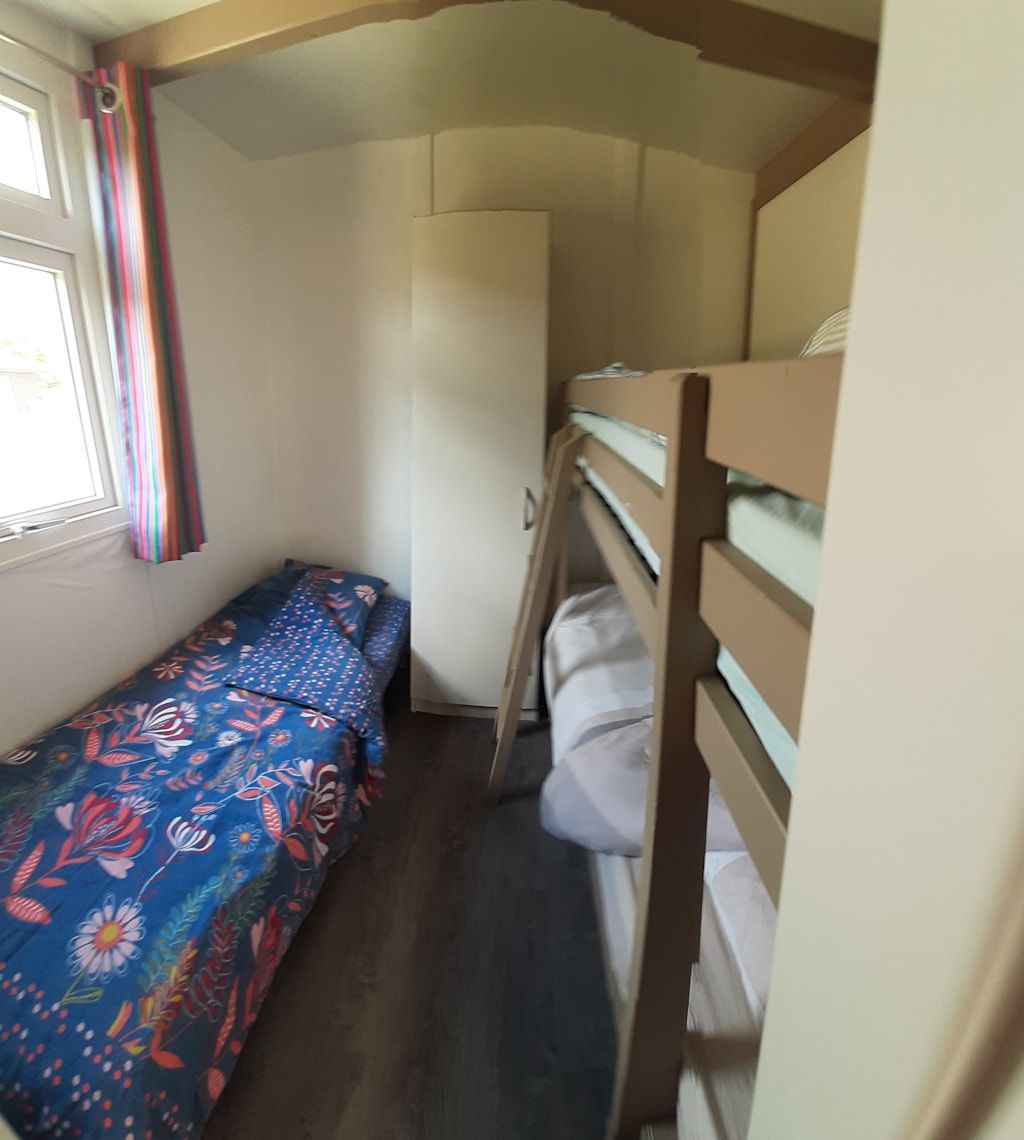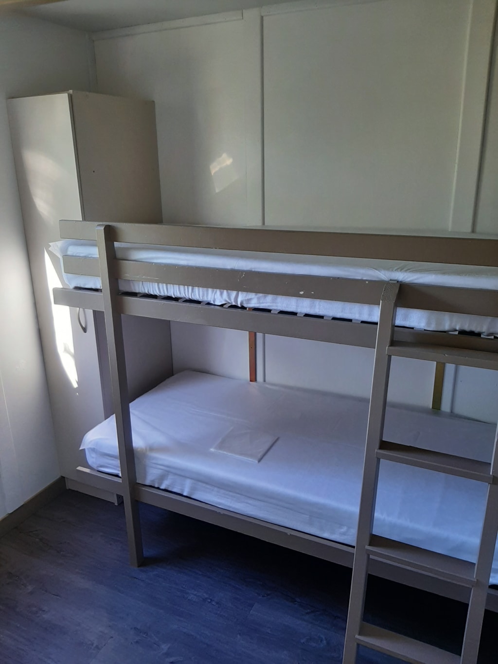 16 m2 preisgünstige Unterkunft für ein Paar oder eine 4-köpfige Familie. Dies ist die neue Generation des Wohnwagens. Vollständig ausgestattet mit Mikrowelle, Kühlschrank und Kochplatte. Minimalistische und moderne Dekoration. Kein Wasser und keine sanitären Einrichtungen. Aufpreis pro Aufenthalt: Bettlakenverleih: 15 Euro/Betttuch-Set: 10 Euro/Pers.