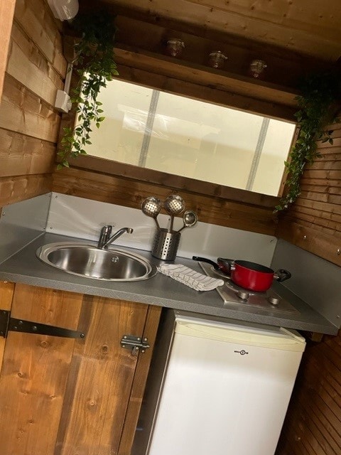 Ungewöhnliche und sehr funktionelle Unterkunft. Minimalistisches und modernes Dekor für diesen futuristischen "Wohnwagen". Der COCO-SWEET ist mit seinem 140 cm breiten Bett bequem und mit einer Kochplatte, einem Kühlschrank, einer Mikrowelle und Geschirr für zwei Personen ausgestattet. Ein tolles Erlebnis für Campingfreunde mit kleinem Budget! Aufpreis pro Aufenthalt: Bettlakenverleih: 15 Euro/Betttuch-Set: 10 Euro/Person