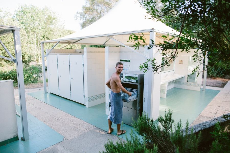 Nutzen Sie das kostenlose HD-Glasfaser-WLAN auf dem gesamten Campingplatz sowie einen kostenlosen Geschirrspüler in den sanitären Einrichtungen.