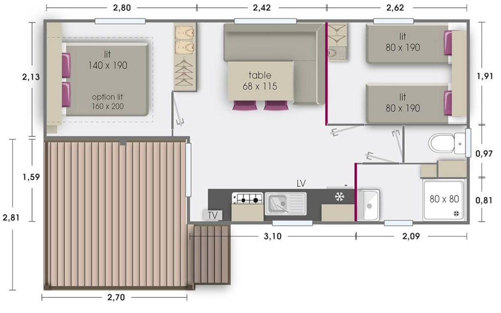- Grundfläche Terrasse (in m²) : 8
