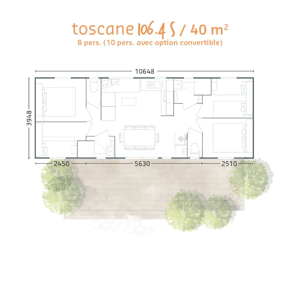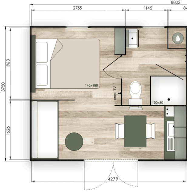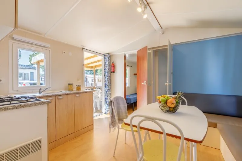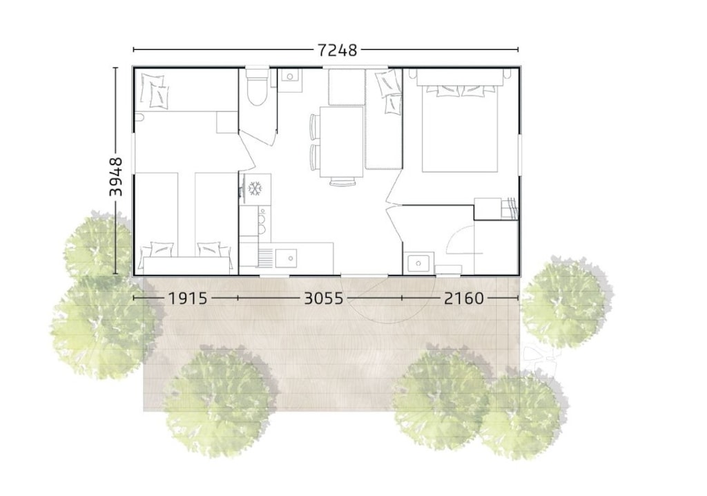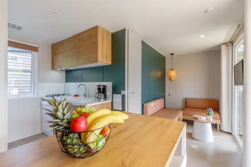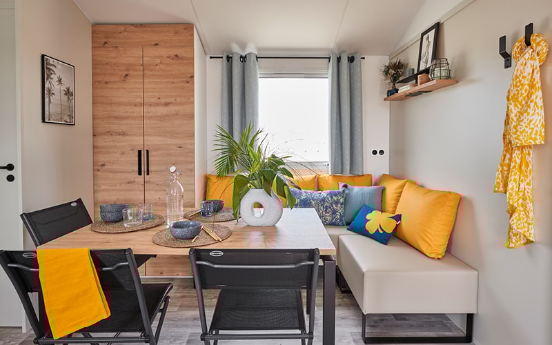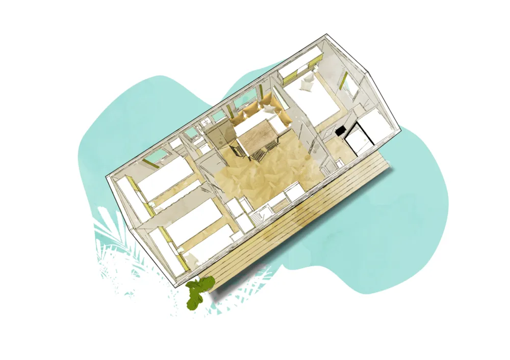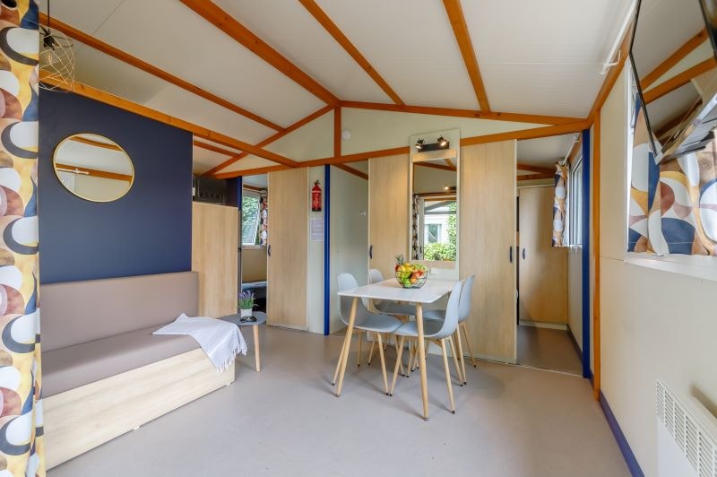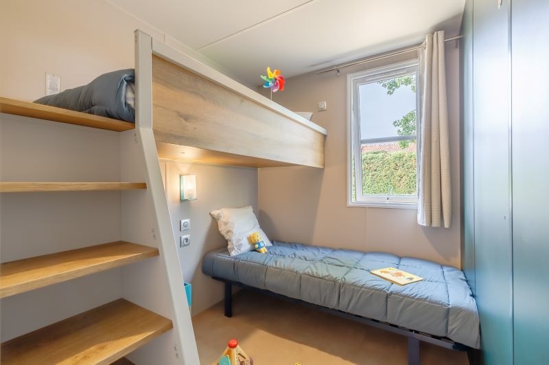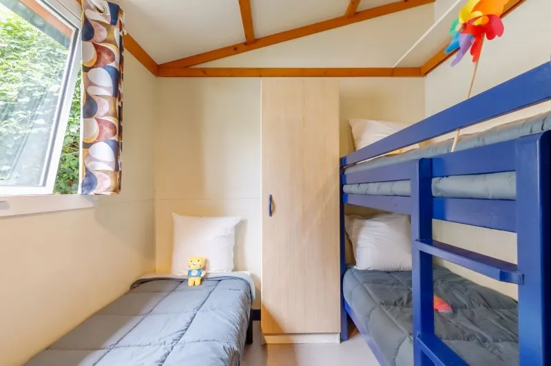 Unser Mobilheim mit 3 Schlafzimmern bietet Platz für bis zu 6 Personen und ist der ideale Urlaubsort für Familien. Mit einem gemütlichen Elternschlafzimmer und zwei Kinderzimmern findet jeder seinen Platz.