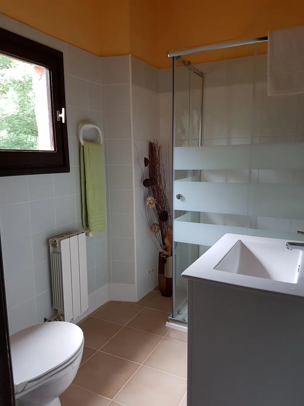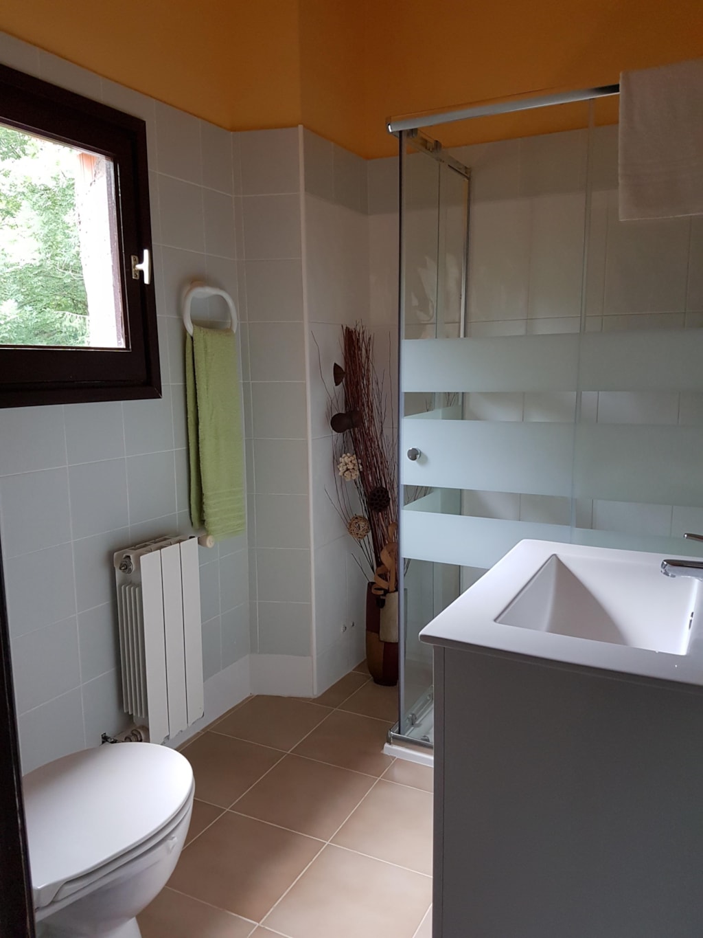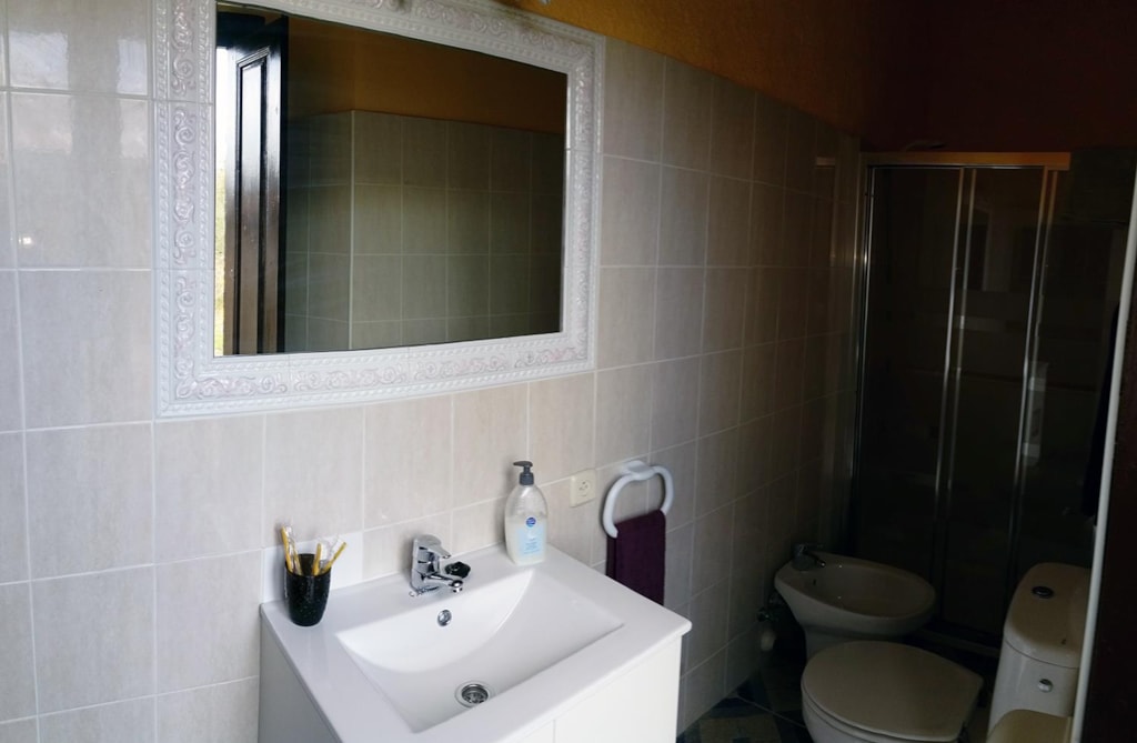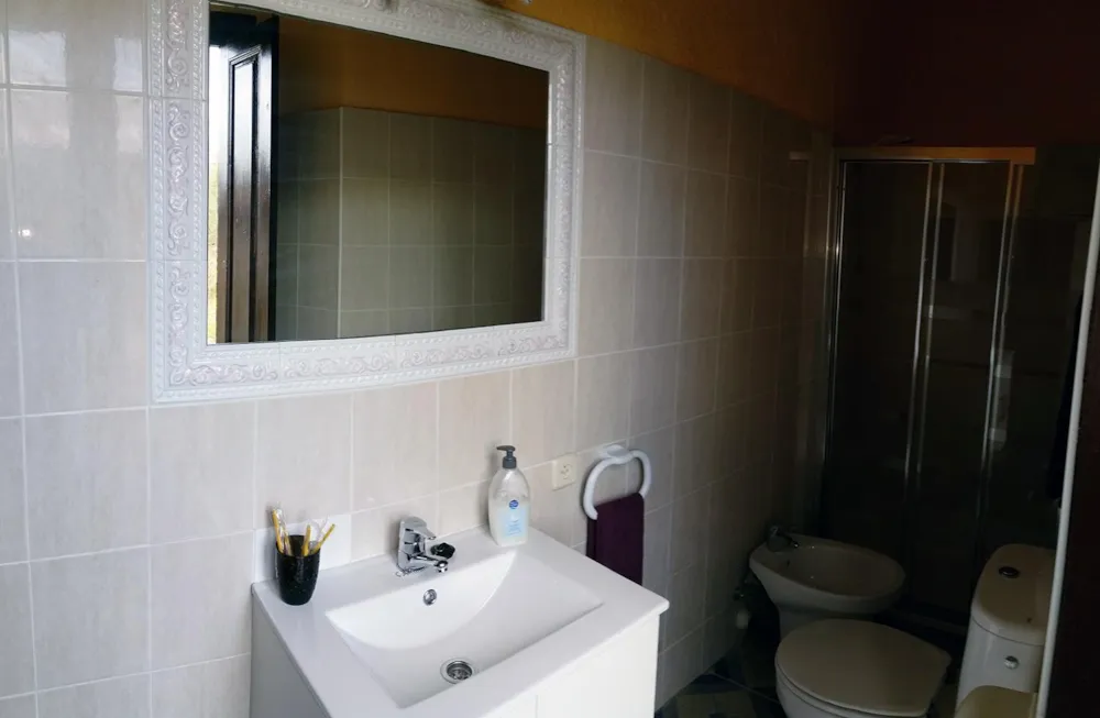 Zimmer mit 1 doppeltem. Badezimmer im Zimmer. Wohnzimmer und Gemeindeterrasse.
