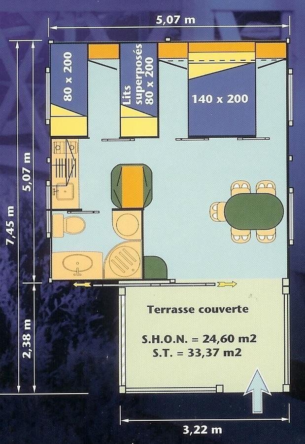 Auf einer Fläche von 29m ² mit 2 Schlafzimmer getrennten um einen zentralen Wohnzimmer anstelle eines Cocooning und Lounge-Bereich, die einen dritten Schlafzimmer bilden können, können unsere Mobile Homes Platz für 4-6 Personen in Komfort. Sie werden sich wie zu Hause mit Fuer Herd mit Dunstabzugshaube, Kühlschrank mit Gefrierschrank, Mikrowelle, Tisch und Stühlen für Mahlzeiten innerhalb oder außerhalb Bad, separates WC, überdachte Terrasse, Garten fühlen. .. Alles ist da!