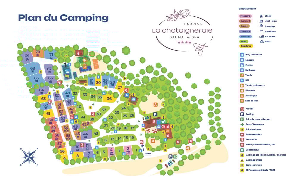 Jeder Platz verfügt über eine 10 Ampere elektrischen Anschluss und können jede Art von Installation unterbringen (Wohnwagen, Zelt oder Wohnmobil)