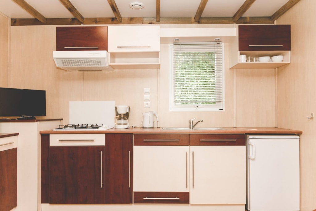 Integrierte perfekt in die Umwelt, unsere Kabinen von 27 m² mit Holzrahmen und liebevoll dekoriert, verfügen über ein Wohnzimmer mit Küchenzeile (4 Flammen-Gasherd, Mikrowelle, Kaffeemaschine, Geschirr und Küchenutensilien) und Tabelle Esszimmer, ein Badezimmer mit Dusche, Waschbecken und separates WC und eine Terrasse mit Gartenmöbeln, ein Schlafzimmer mit Doppelbett, ein Schlafzimmer mit Einzelbett und einem Sofabett 2 Plätze. Während Ihres Aufenthaltes genießen Sie uneingeschränkten Zugriff auf die Freizeit (Strand, Schwimmen)