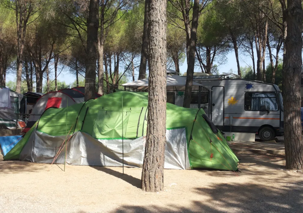 Der Campingplatz befindet sich unter einem Schatten spendenden Pinienwald direkt an der Strandpromenade und bietet 80 großzügige Stellplätze. Zu den weiteren Annehmlichkeiten zählen zwei Sanitärblöcke, mit kostenlosen, warmen Duschen , sowie rollstuhlgerechter Einrichtung, Münzwaschmaschine, Camper Service und kostenlosem W-Lan. Strandservice (2 Liegen + 1 Sonnenschirm) vom 22.06.-07.09 auf Wunsch gegen Gebühr (vorbehaltlich Verfügbarkeit).