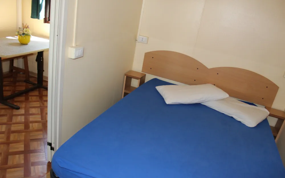 Schlafzimmer mit Doppelbett, Schlafzimmer mit 1/bzw. 2 Einzelbetten, Wohnbereich mit Kochnische, TV, Klimaanlage, Bad mit Dusche, überdachte Holzveranda und möbilierte Terrasse. Bettwäsche auf Anfrage gegen Gebühr, Handtücher für Badezimmer stehen nicht zur Verfügung. Der Strandservice ( 1 Sonnenschirm +2 Sonnenliegen) ist vom 22.06. - 07.09 für die Mobilheime inklusive. Ebenso wie die Animation (ab 01.07. - 31.08.)
