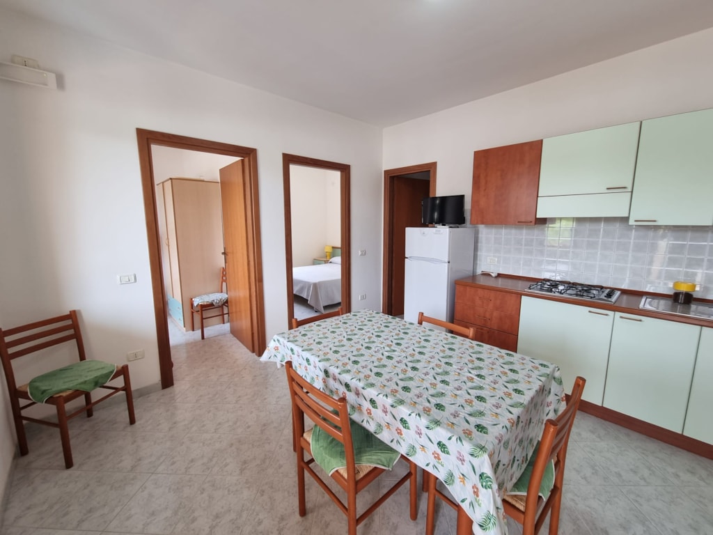 Die Appartments befinden sich nur 100 Meter vom Meer entfernt mit seinem schönen Sandstrand, welcher zu Fuß durch den schattigen Pinienwald des Campingplatzes zu erreichen ist. Die gepflegten und voll ausgestatteten 2-Raum Appartments liegen alle ebenerdig und bieten Platz für maximal 3 Personen. Austattung: Schlafzimmer, Wohn-/Schlafzimmer mit Küche und 1 Einzelbett, Badezimmer mit WC/Dusche, TV, Klimaanlage,möbilierte Terrasse und eigener Parkplatz. Strandservice (1 Sonnenschirm +2 Sonnenliegen) vom 22.06.-07.09 inklusive. Animation vom 01.07. - 31.08. inklusive.