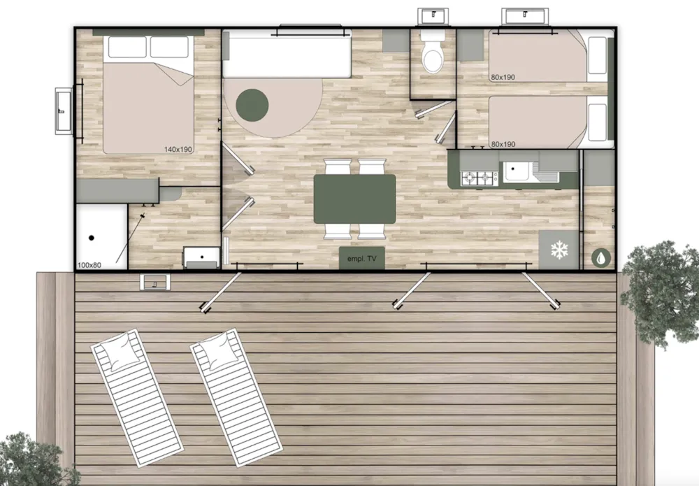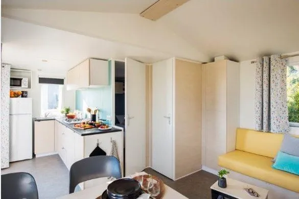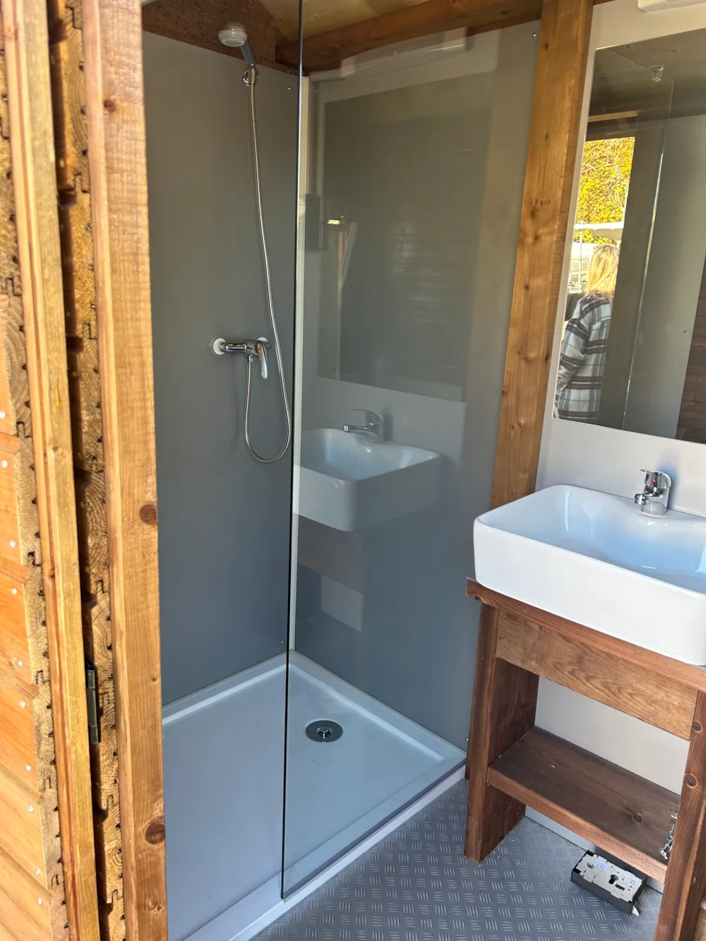 Avec des WC privatifs, une douche, un évier ou encore un coin cuisine avec frigo et plaques de gaz, la FREECAMP vous offre tout ce dont vous avez besoin pour une expérience de camping qui garantit votre intimité.