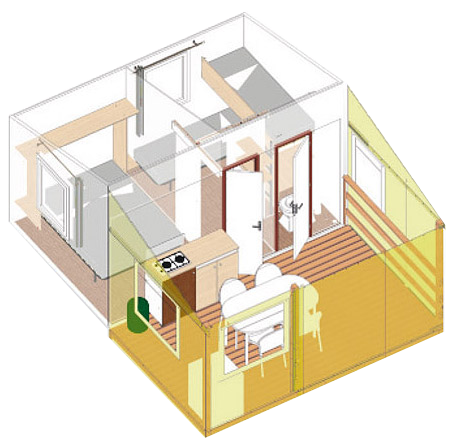 locatif mit zwei separaten Schlafzimmern und harte, moderne ausgestattete Küchenzeile Leinwand Kühlschrank, guten Kompromiss zwischen dem Wohnmobil und Zelt