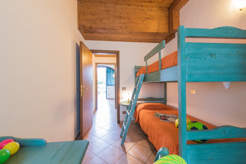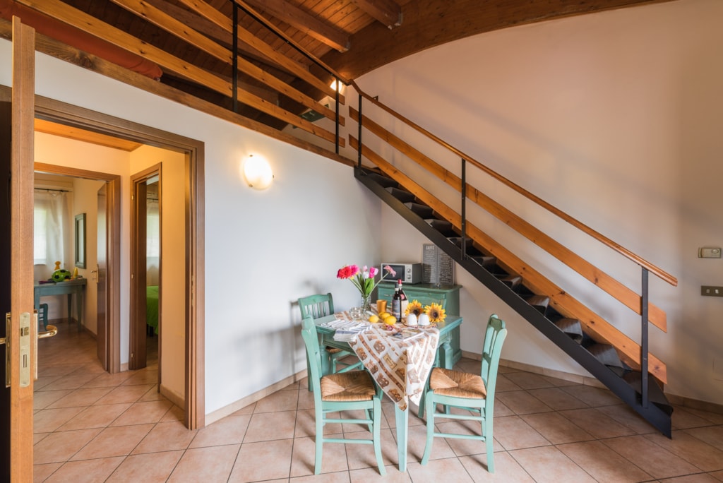 Wohnung bestehend aus 1 Schlafzimmer mit Doppelbett, 1 Schlafzimmer mit Etagenbetten, Bad mit Dusche, voll ausgestattete Küche, Dachboden und Terrasse mit Tisch und Stühlen