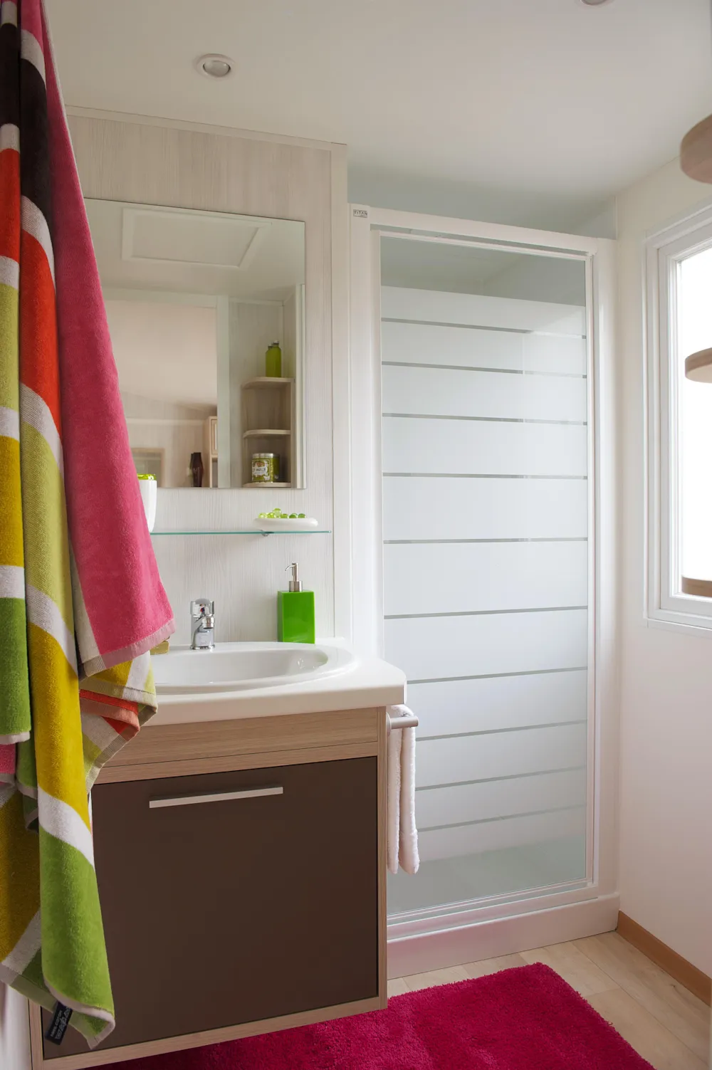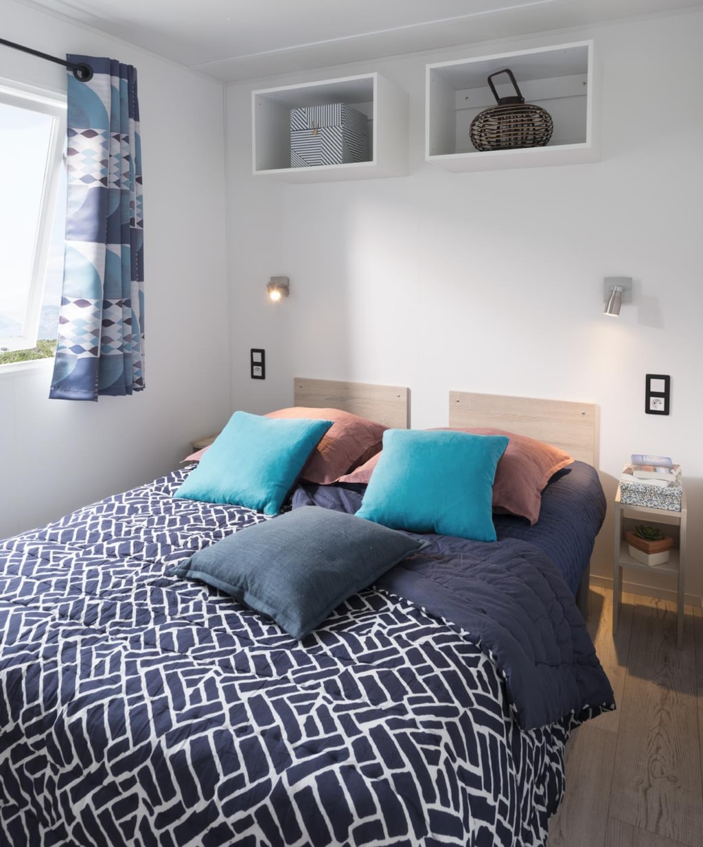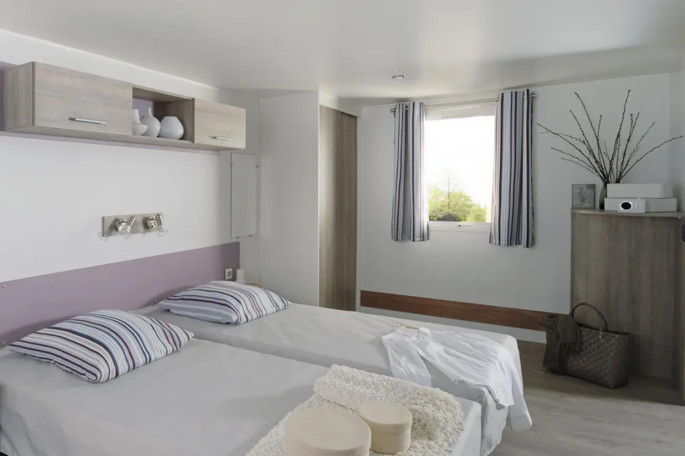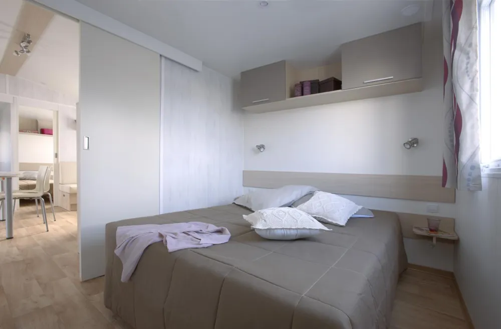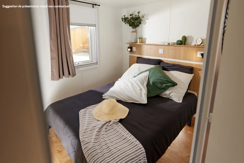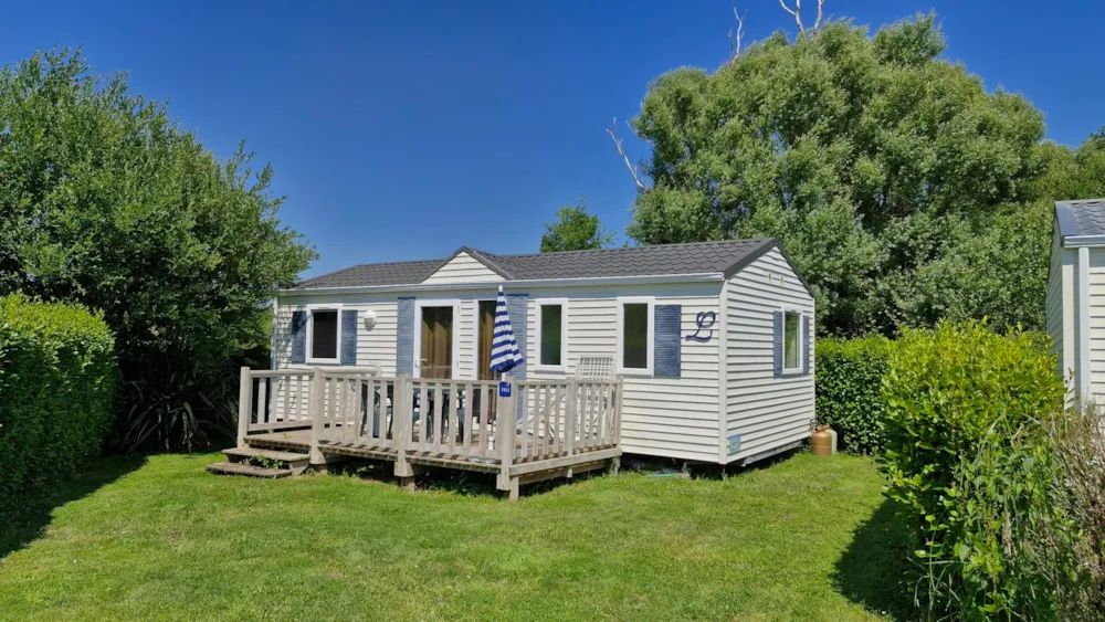 Für Ihren Aufenthalt im Camping Cap Finistère ist unser Mobilheim Komfort 25m² die ideale Unterkunft. Ausgestattet mit einem PMR-Zugang (für Personen mit eingeschränkter Mobilität) bietet dieses Mobilheim Platz für bis zu 4 Personen in seinen 2 Schlafzimmern. Es ist perfekt für einen Familienaufenthalt in der Bretagne und bietet allen Komfort, den Sie für einen angenehmen Aufenthalt inmitten der Natur benötigen.