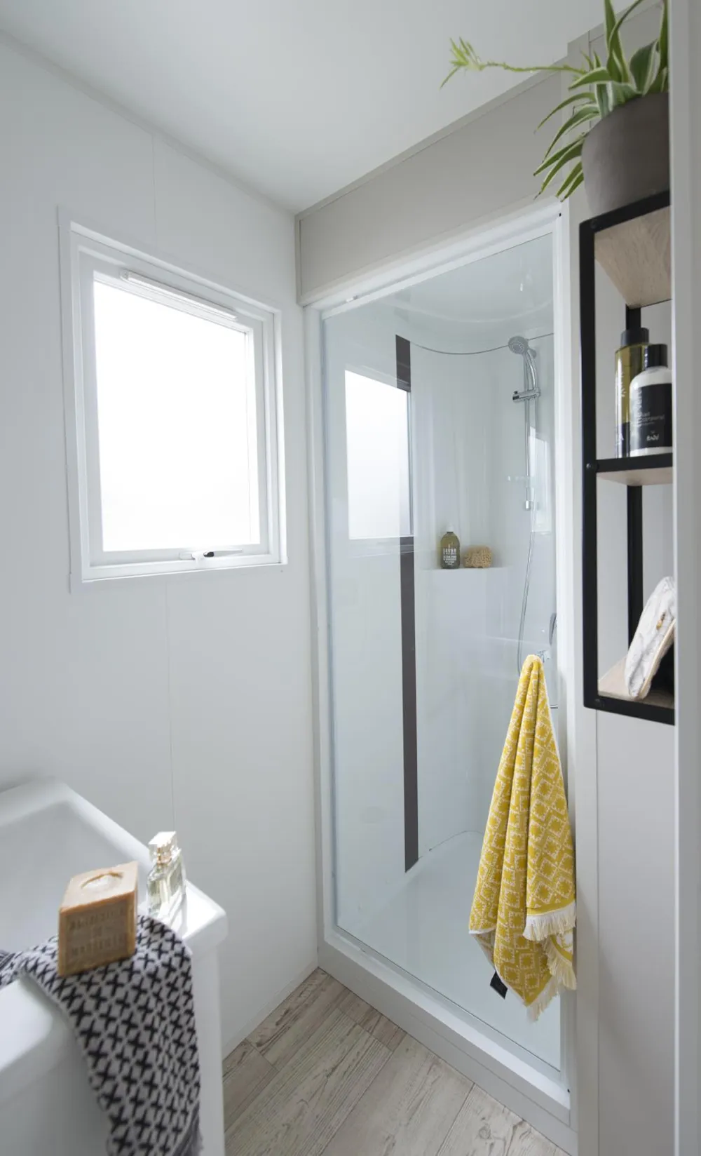 Das Cosyflower Premium garantiert Ihnen einen komfortablen Aufenthalt in Südbretagne, wobei Bettwäsche und Handtücher enthalten sind, sodass Sie sich um nichts kümmern müssen. Dieses Mobilheim ist die perfekte Wahl, um Ihren Familien- oder Freundesurlaub inmitten der Natur zu genießen und gleichzeitig von Premium-Komfort und hochwertigen Annehmlichkeiten zu profitieren.