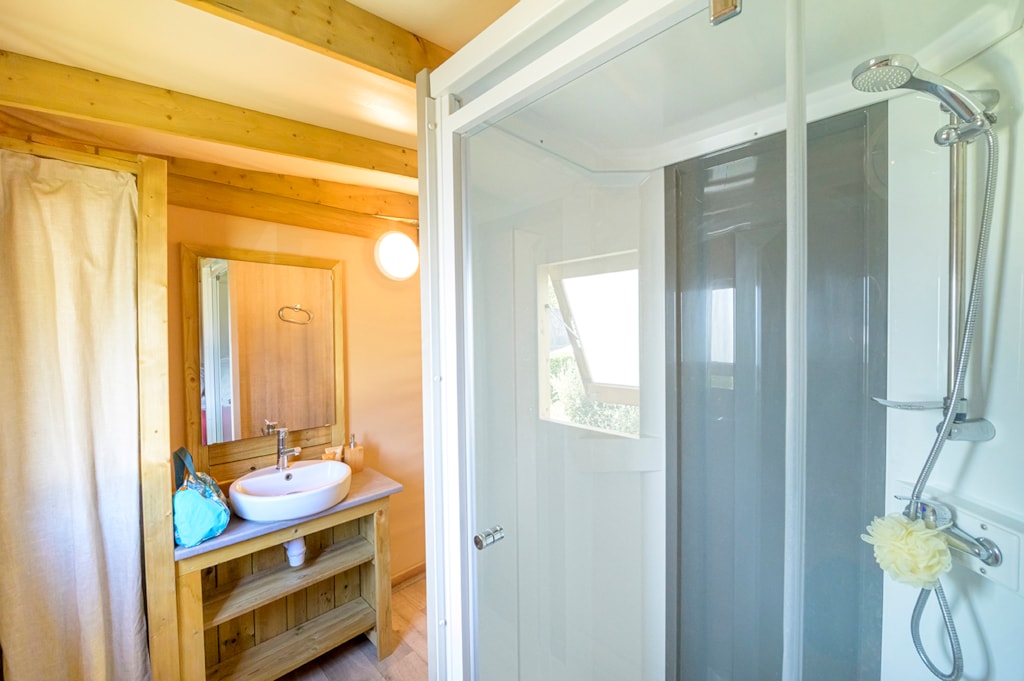Erleben Sie einen einzigartigen Glamping-Aufenthalt inmitten der Natur mit unserem Freeflower-Zelt. Diese 28m² große Unterkunft bietet allen Komfort, den Sie für einen Urlaub mit Familie oder Freunden benötigen, während Sie inmitten der Natur bleiben. Perfekt gelegen, können Sie die natürliche Umgebung des Cap Finistère in einer ruhigen und grünen Landschaft voll genießen.